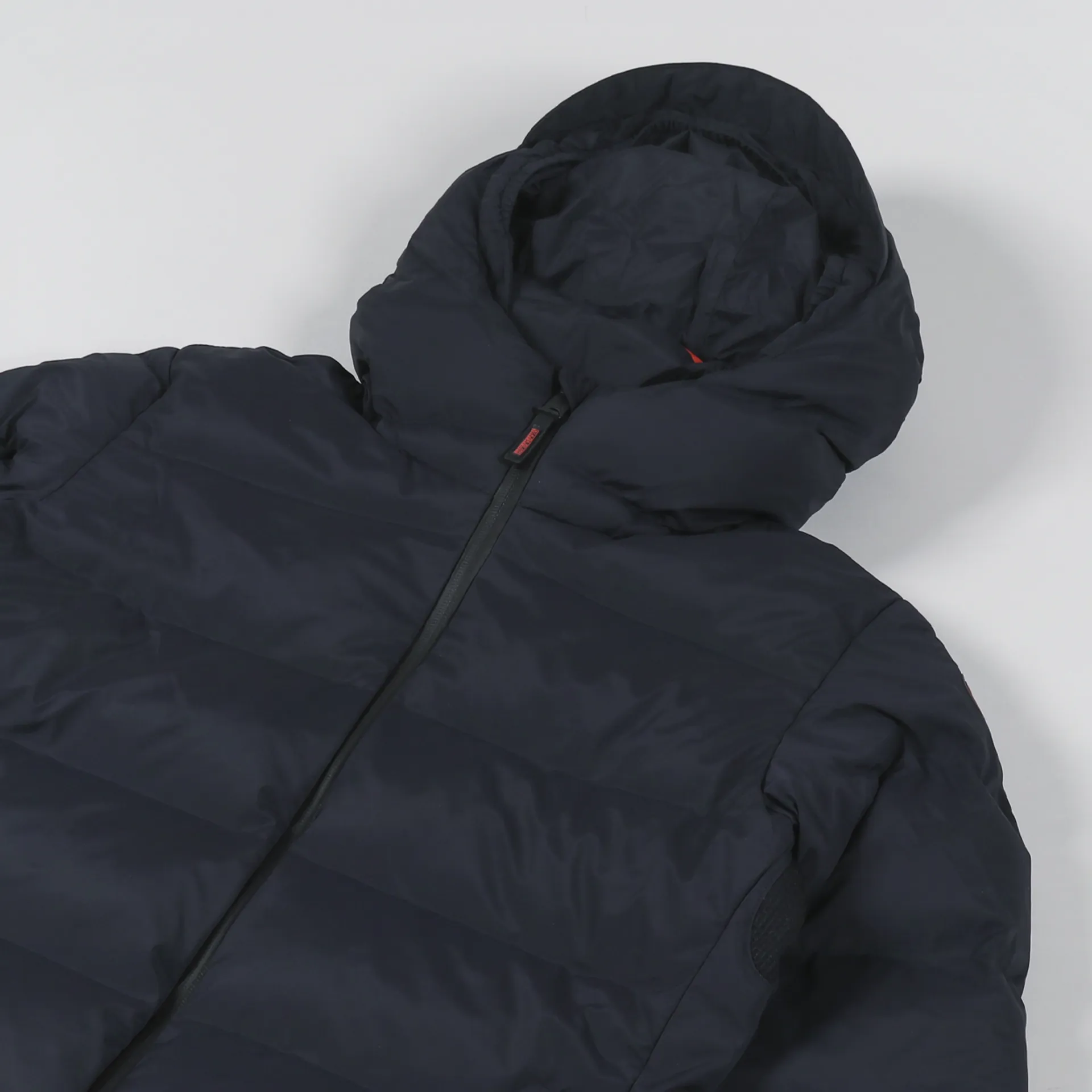 The jacket has a full-zip front along with zippered handwarmer pockets and an elasticated trim to the hem and cuffs, and branding is simple with a logo print to the hood and a rubber logo patch to the shoulder.
