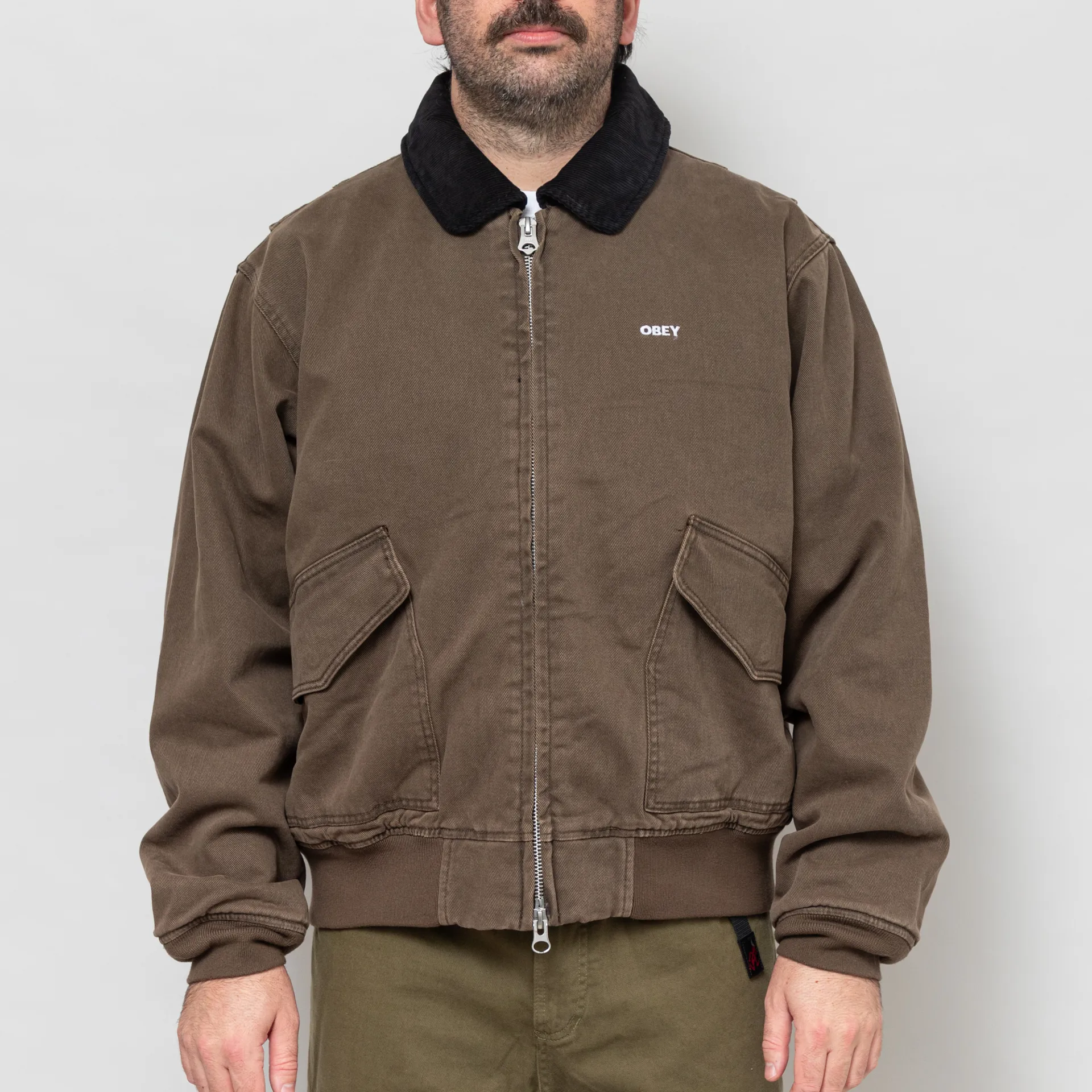 A canvas jacket from Obey, cut in a regular fit for everyday comfort and constructed from 9.5oz 100% cotton that has been garment-washed for a worn in look.