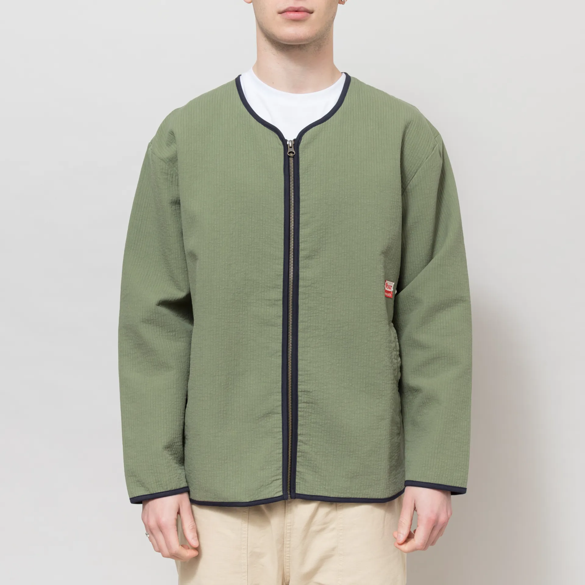 A zipped jacket from Olow, cut in a slightly relaxed fit for everyday comfort and constructed from soft 100% cotton. It features a full zip-through front, leading to a collarless neckline, with contrast binding throughout. The design is complete with two hand pockets and a woven Olow logo patch.