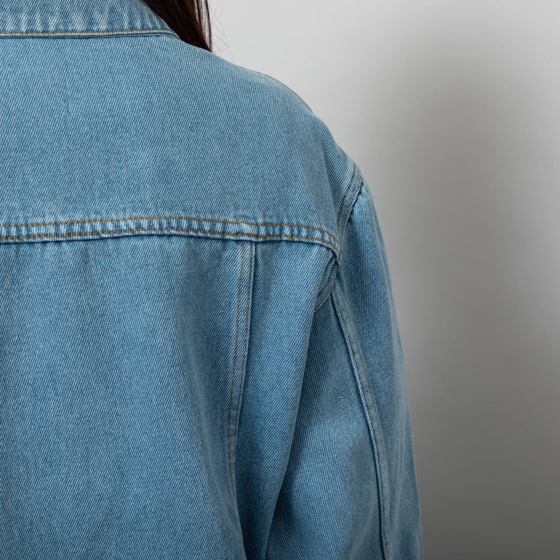 The Juno Jacket from Our Sister is cut in a relaxed, boxy fit for a laidback silhouette and is constructed from a super soft blend of tencel and cotton. It features a five-button up front, leading to a classic collar, with a straight hem and buttoned cuffs. The design is complete with a single patch pocket to the left chest and a faded pocket detail to the right.