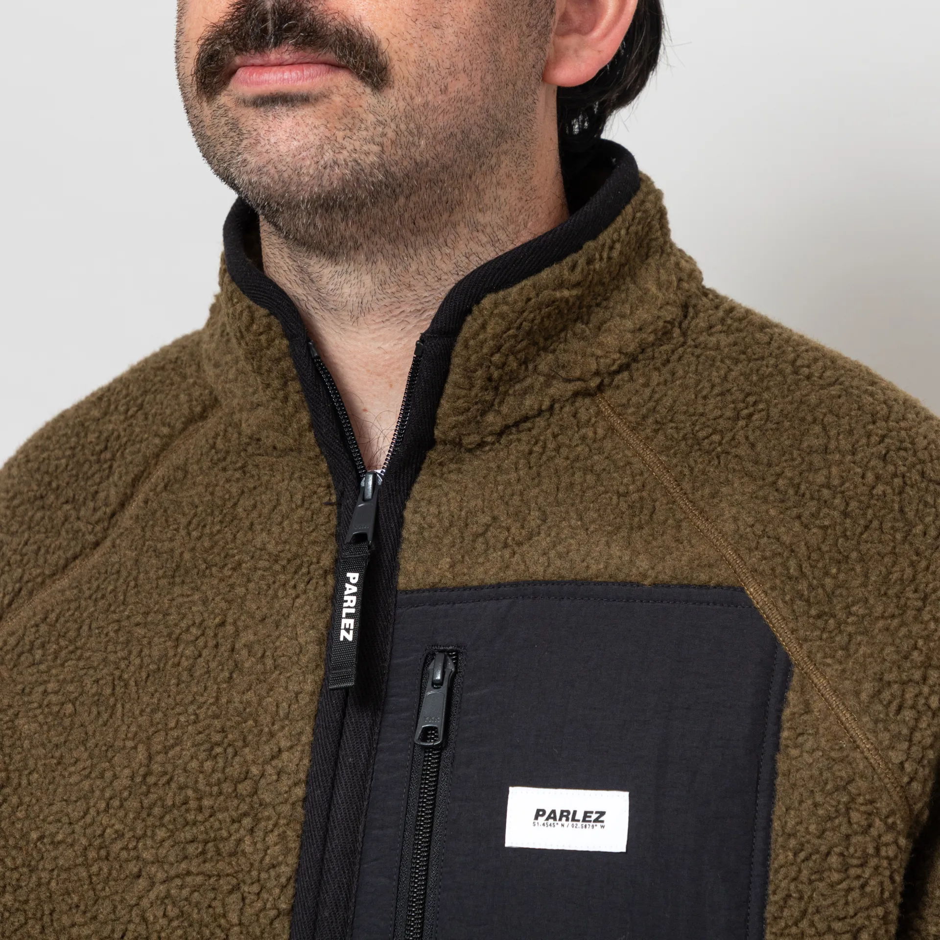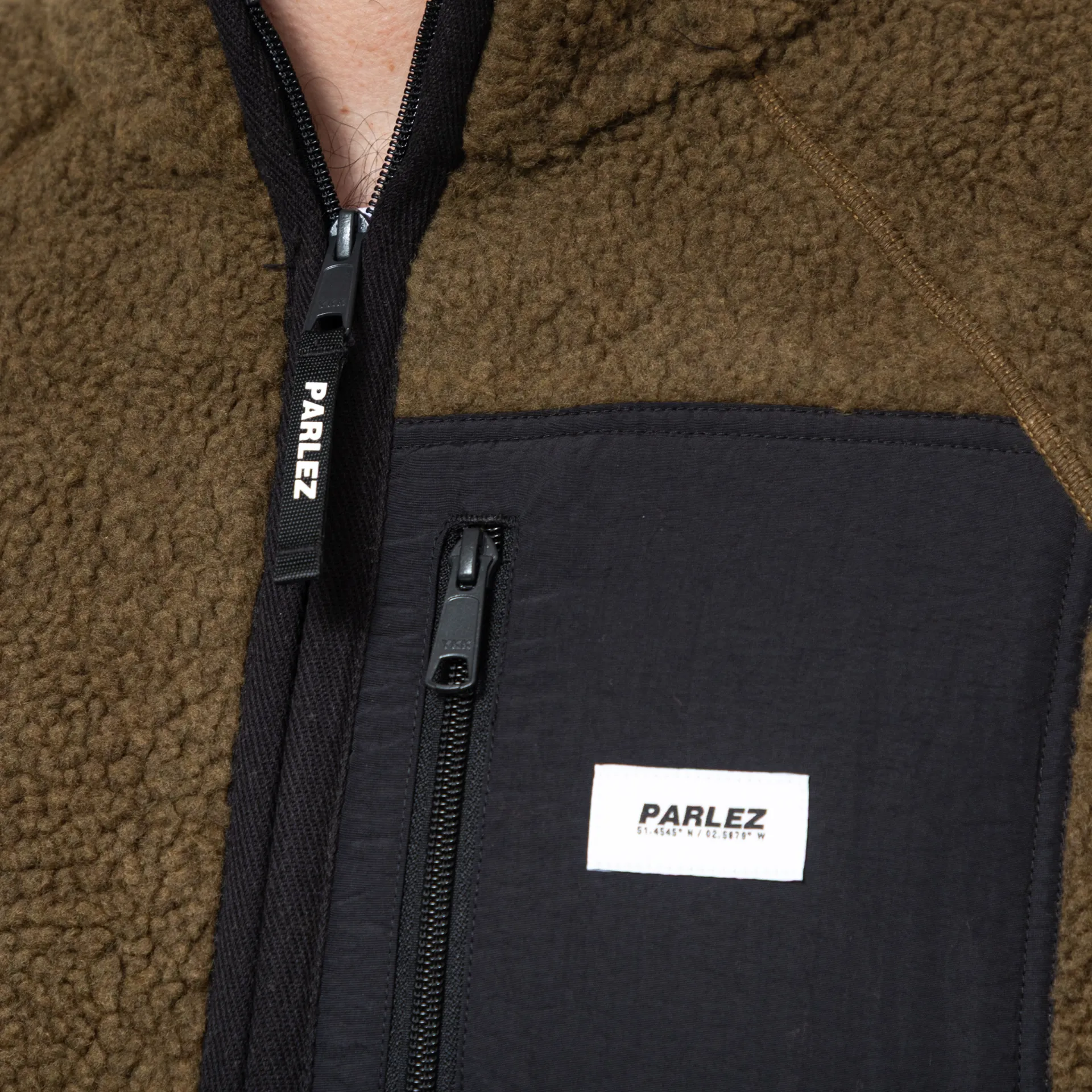 A fleece jacket from Parlez, constructed from soft and warm recycled polyester with contrasting nylon panelling.