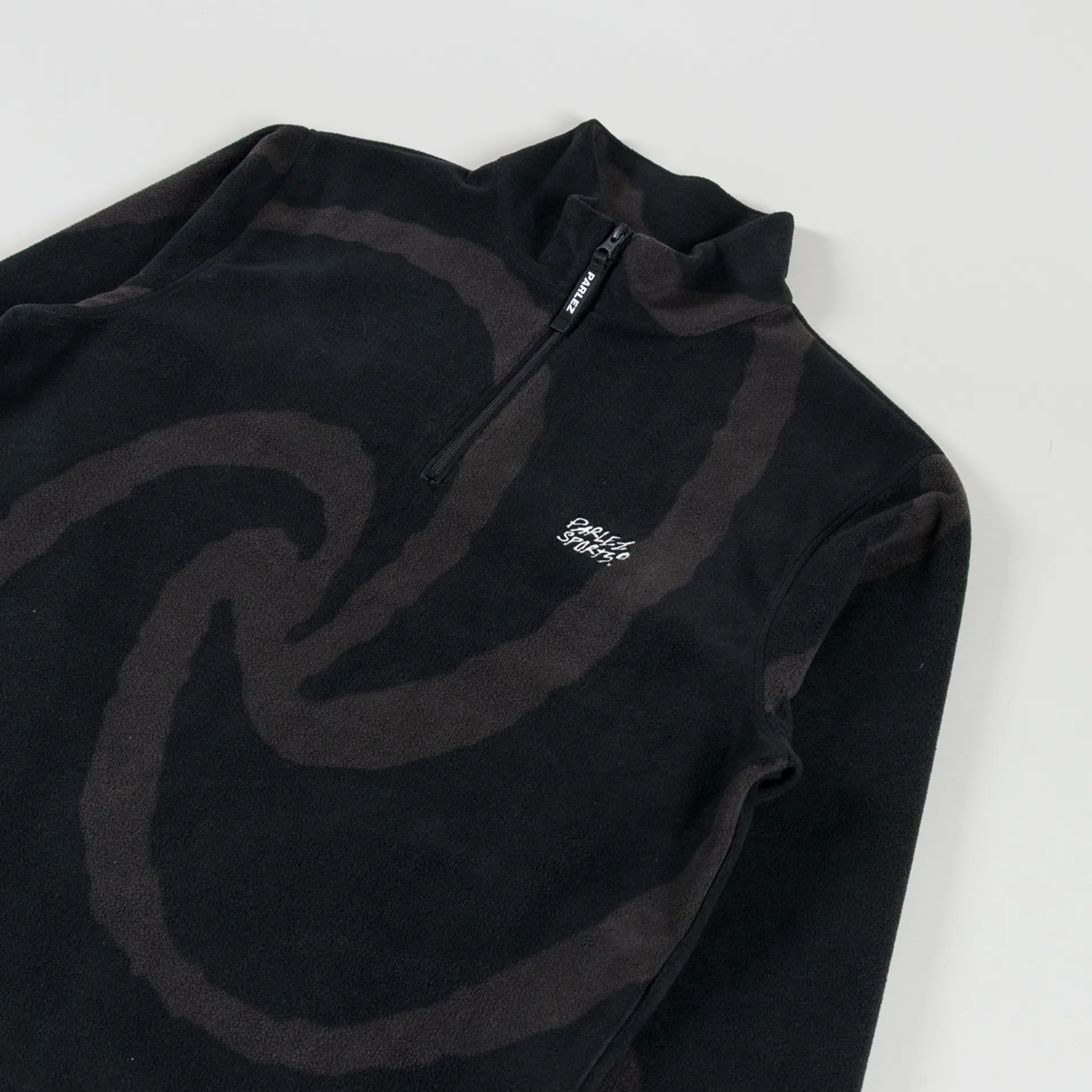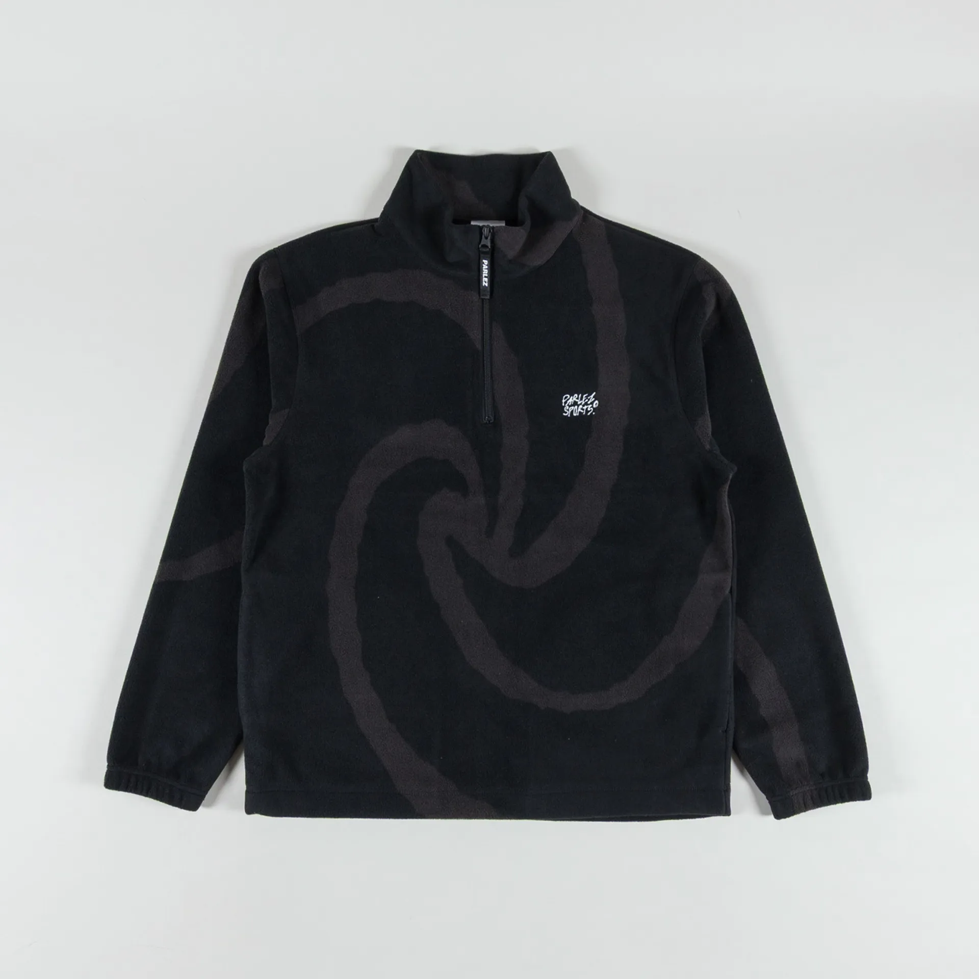 A fleece from Parlez, cut in a relaxed fit for a casual silhouette and constructed from 100% recycled polyester with an all-over spiral design. It features a quarter-zip placket, leading to a classic stand collar, with elasticated cuffs and drawcords at the hem to adjust. The design is complete with an embroidered Parlez Sports logo at the chest.