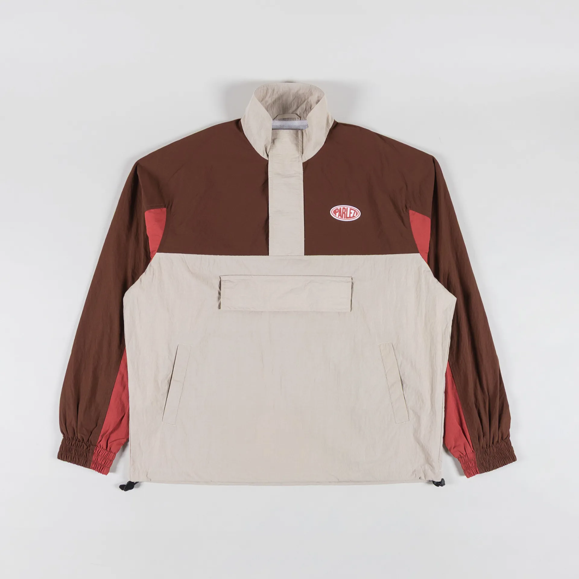 A track jacket from Parlez, cut in a boxy fit for everyday wear and constructed from recycled nylon with a mesh lining for comfort. It features a quarter-zip placket, leading to a classic stand collar, with elasticated cuffs and drawstrings at the hem to adjust. Finished with a kangaroo pouch, side pockets, colour-block panelling throughout and a cool rubber Parlez logo.