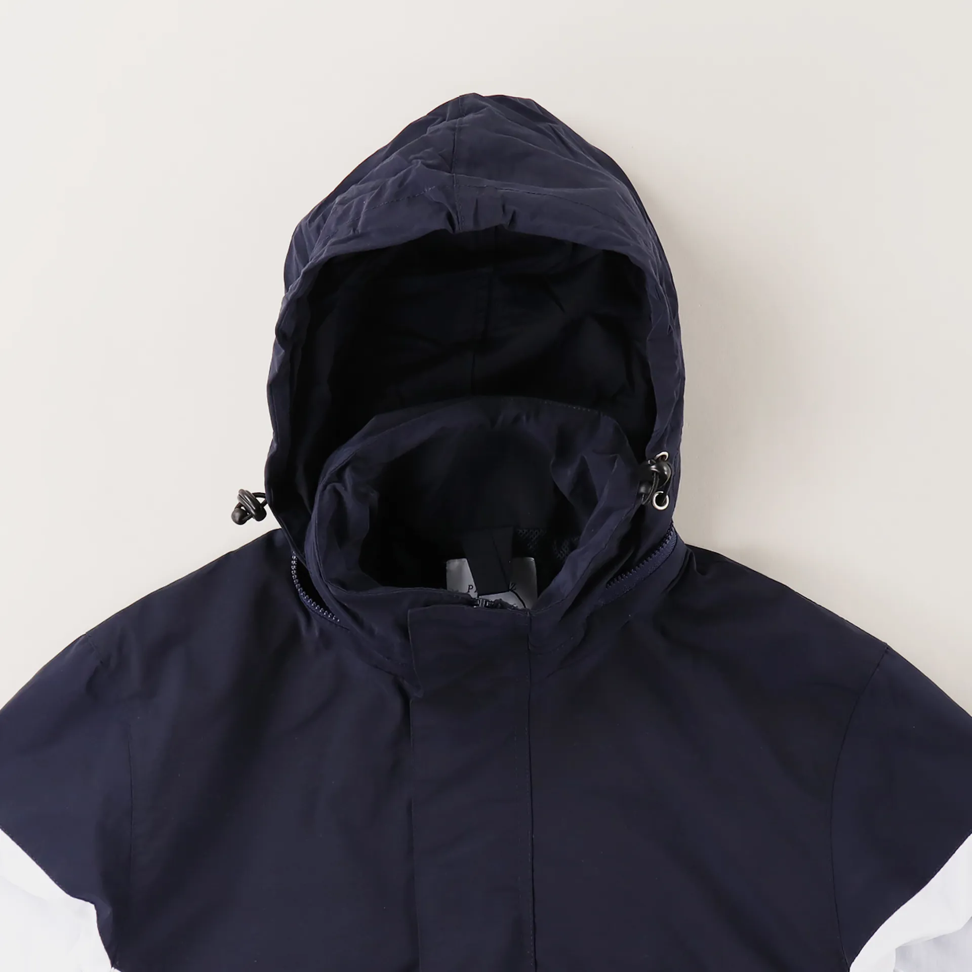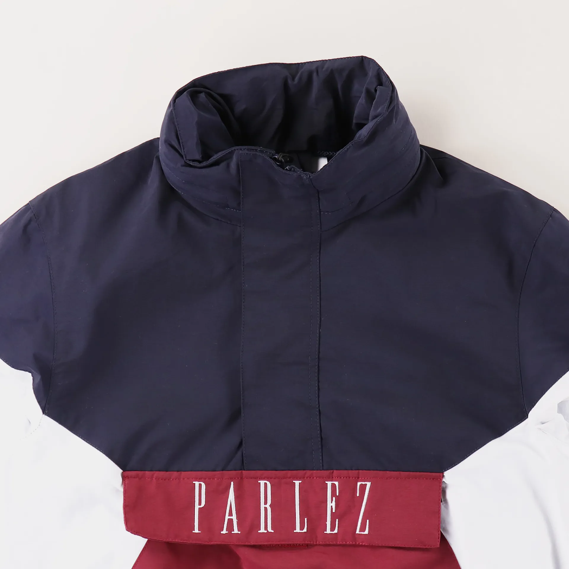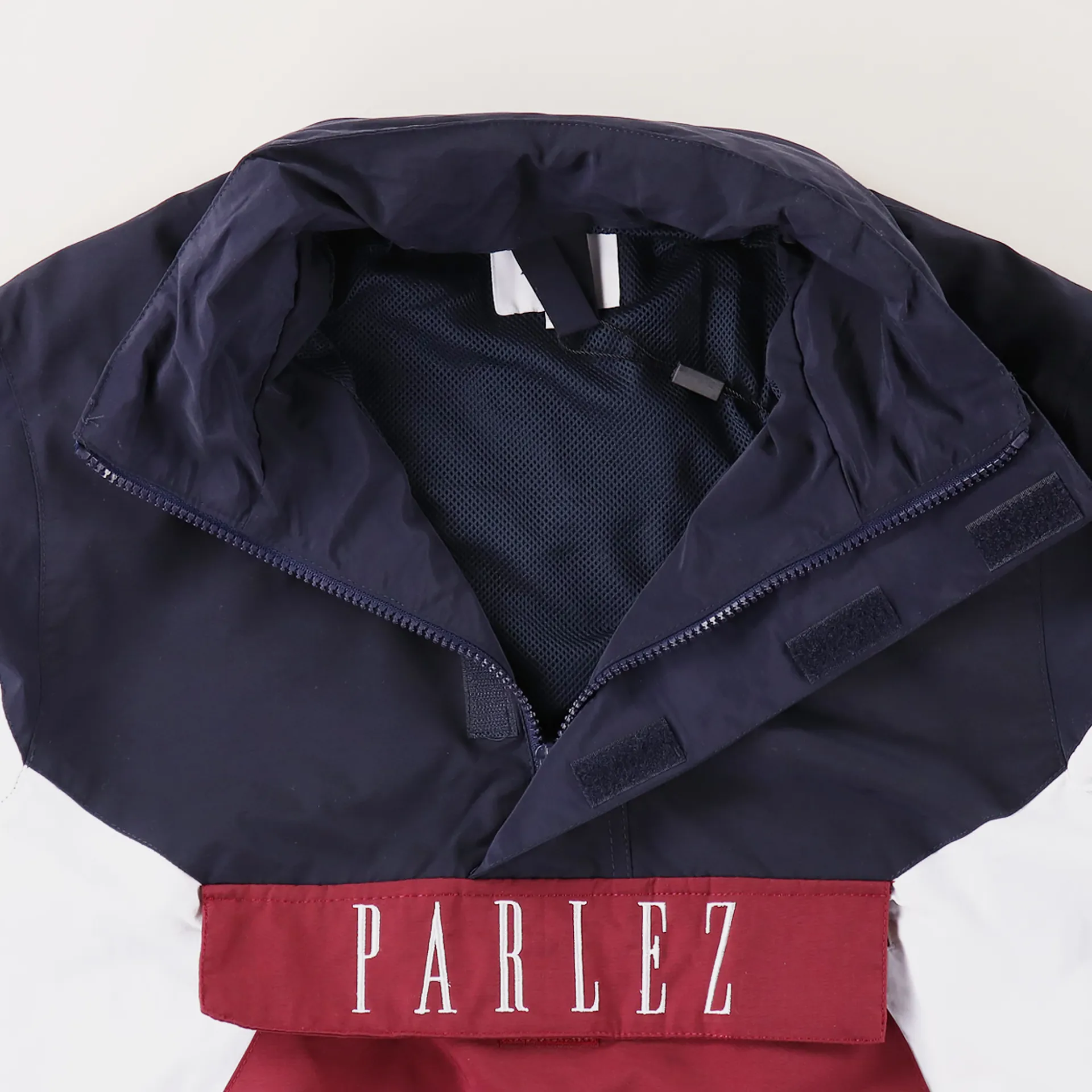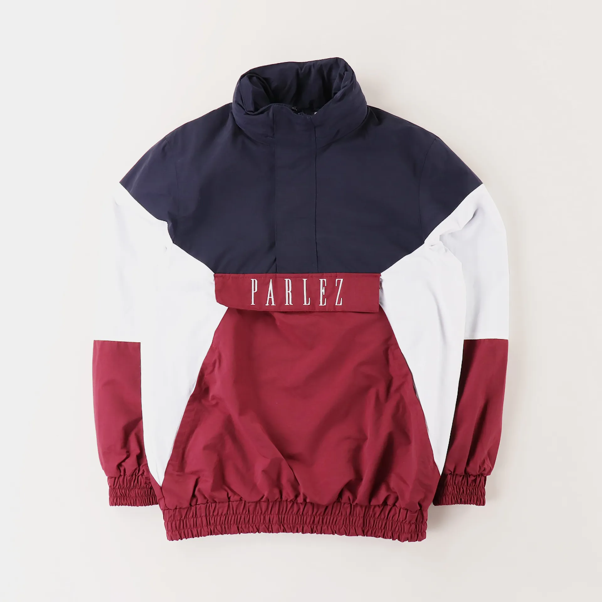 A simple sportswear jacket from Parlez made from a blend of cotton and polyester with an elasticated trim, pullover design and an embroidered logo to the front.