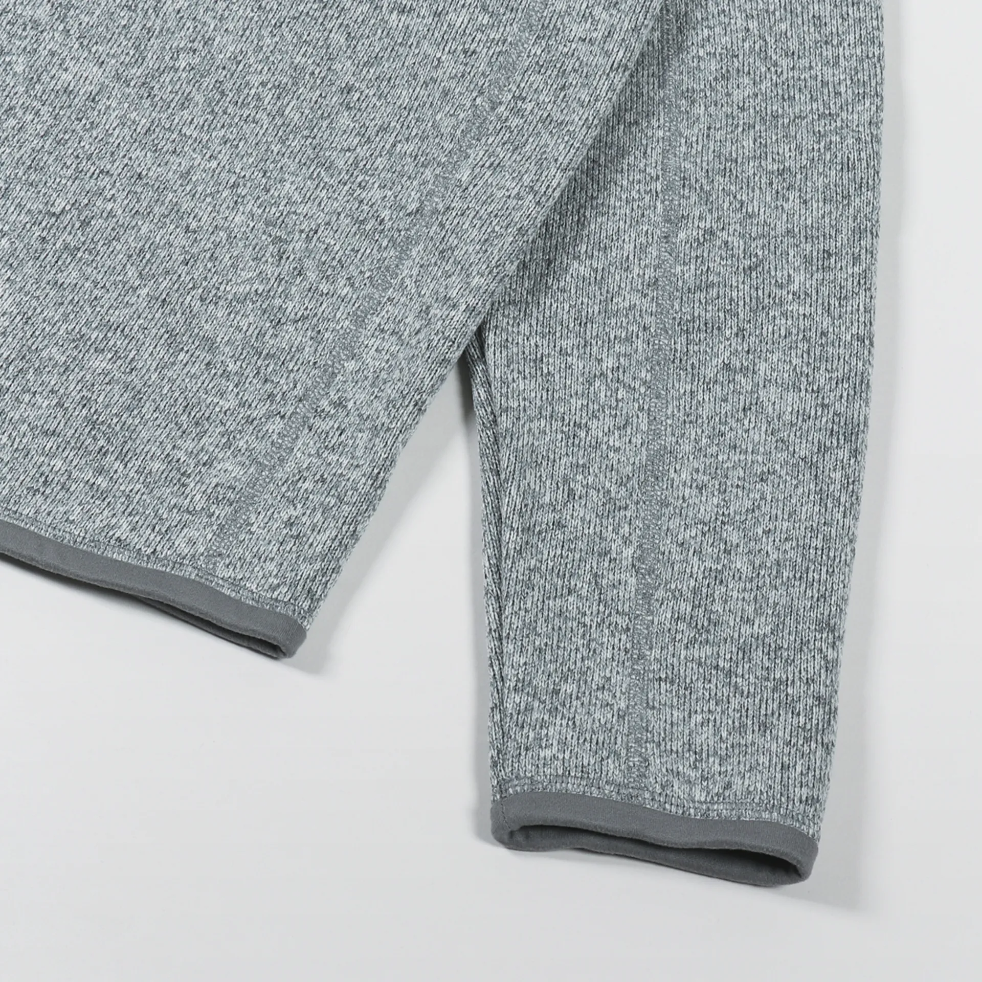 A lightweight fleece from Patagonia made from 100% recycled polyester with a knitted yarn outer and a soft brushed lining. It has a pullover design and zippered neck, an elasticated hem and cuffs, raglan sleeves, zippered chest pocket and logo.
