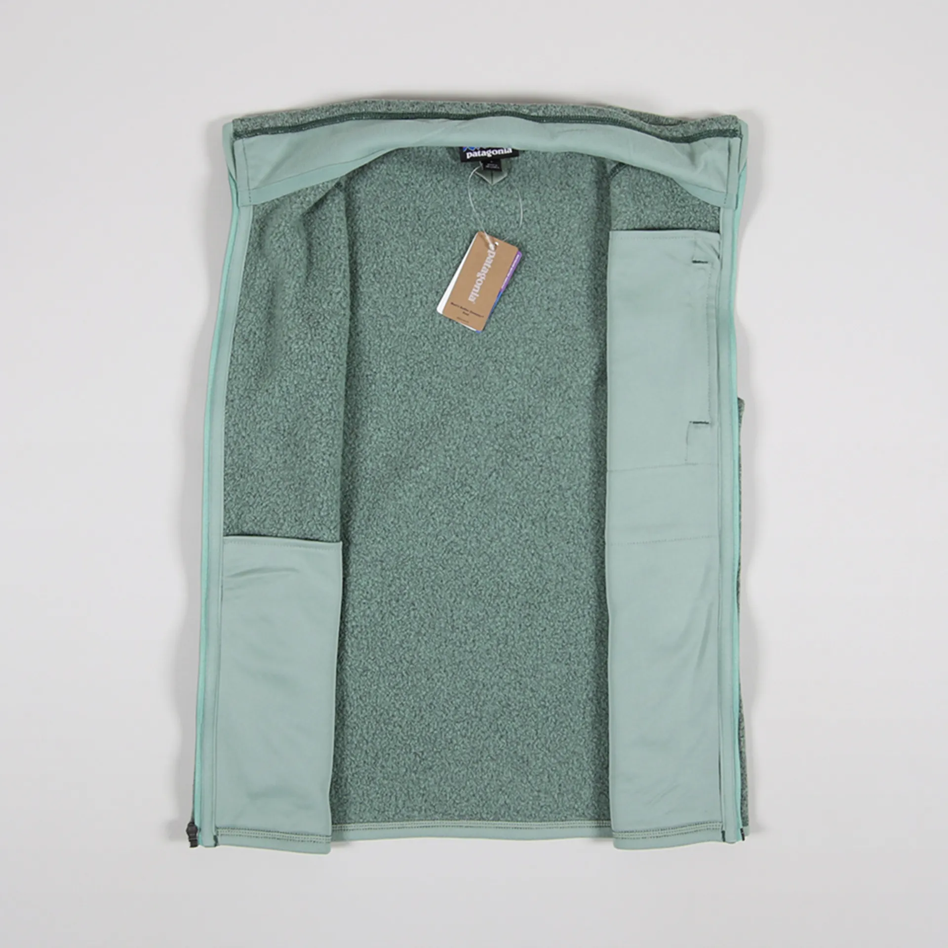 A lightweight,low-bulk gilet from Patagonia made from 100% recycled polyester with a sweater-knit outer and a soft and comfortable brushed fleece lining, along with a microfleece lining to the collar, arm holes and hem.