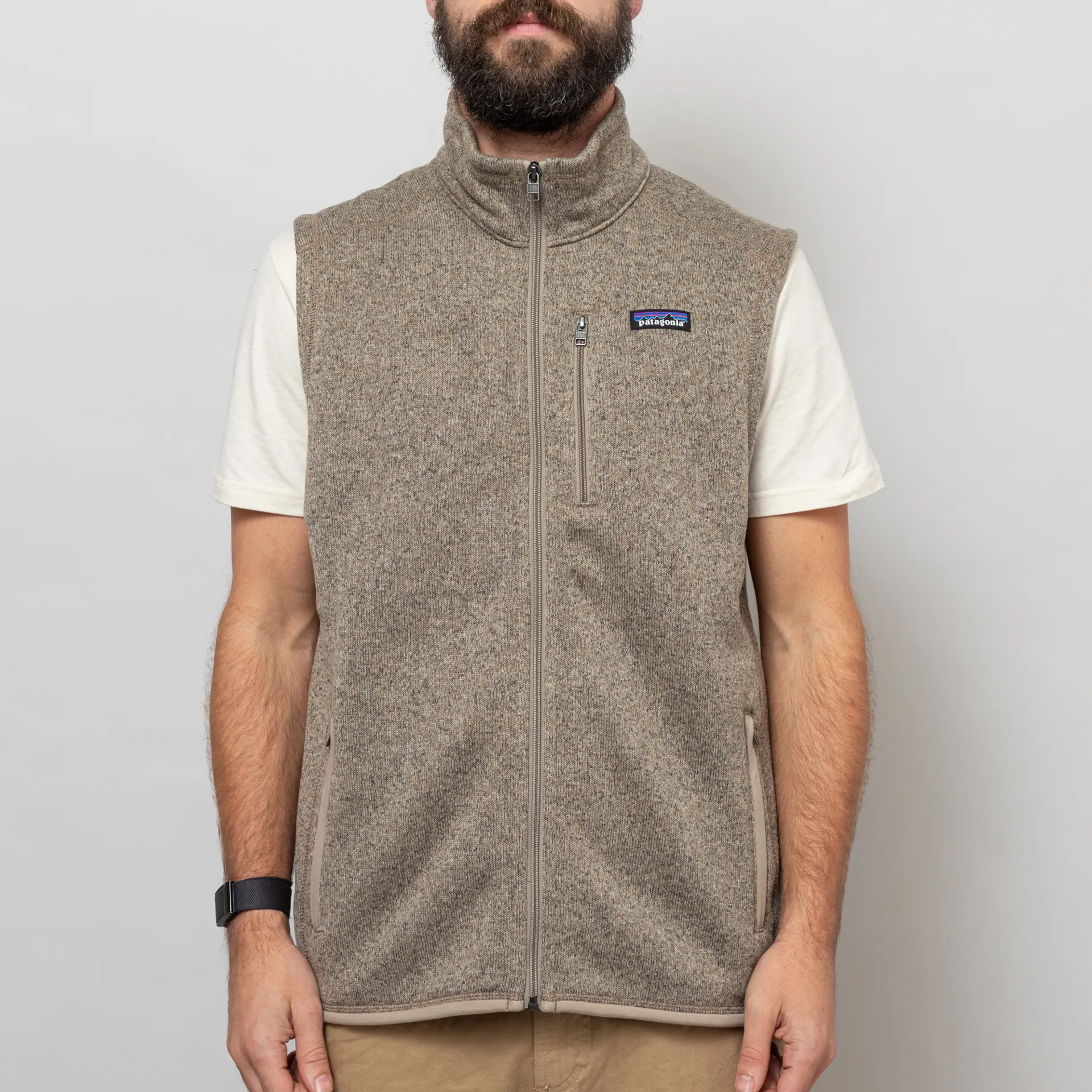 A lightweight,low-bulk gilet from Patagonia made from 100% recycled polyester with a sweater-knit outer and a soft and comfortable brushed fleece lining, along with a microfleece lining to the collar, arm holes and hem.