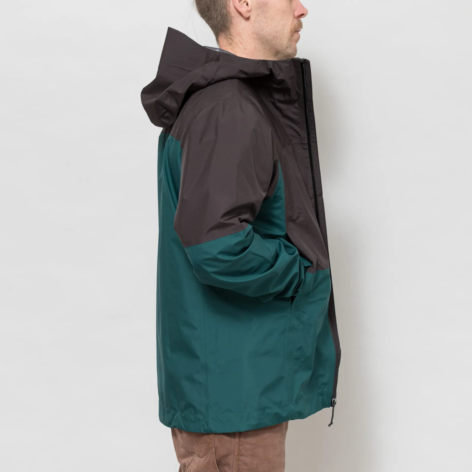 It features a low-profile hood with a laminated visor and an adjustable drawcord, perfect for keeping the draught out, and there's even room for a variety of headwear, very convenient. The watertight zippers are anti-corrosive, featured throughout the jacket on the chest and two handwarmer pockets. Featuring minimal cuffs with streamlined hook-and-loop tabs that seal out the weather and an adjustable drawcord cinch at the hem, routed up through the front pockets - reducing bulk.