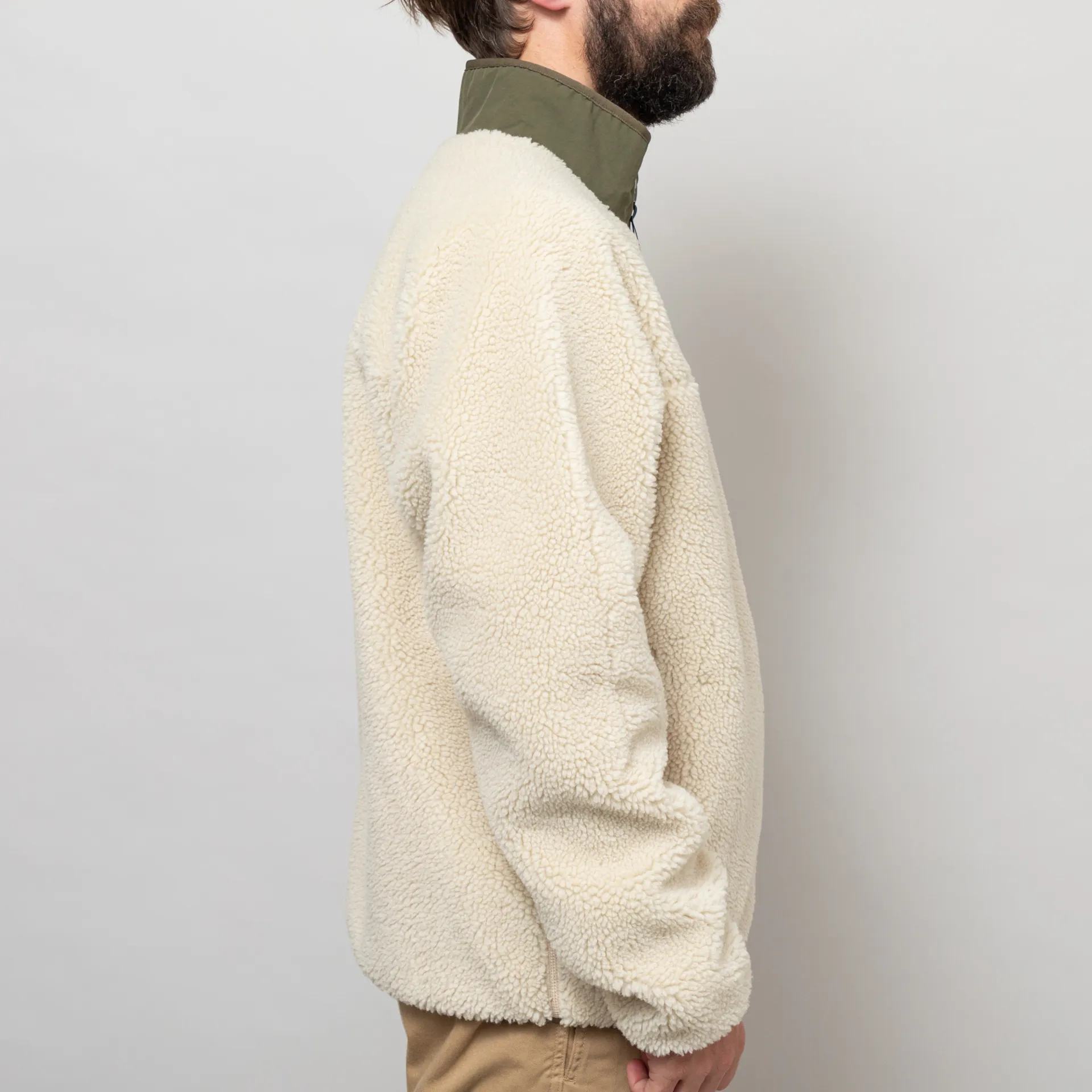 A new and improved version of the iconic Retro-X Fleece by Patagonia. It's now constructed with 100% Repreve recycled polyester certified by OceanCycle and sourced from coastal communities at risk of plastic pollution. It has a 100% recycled polyester taffeta with a durable water repellent finish without intentionally added PFAS. The jacket is now cut with a more relaxed silhouette for easier layering, with added fuzziness on the inside of the stand collar and tweak in the pocket shape that harkens back to the 2000's.