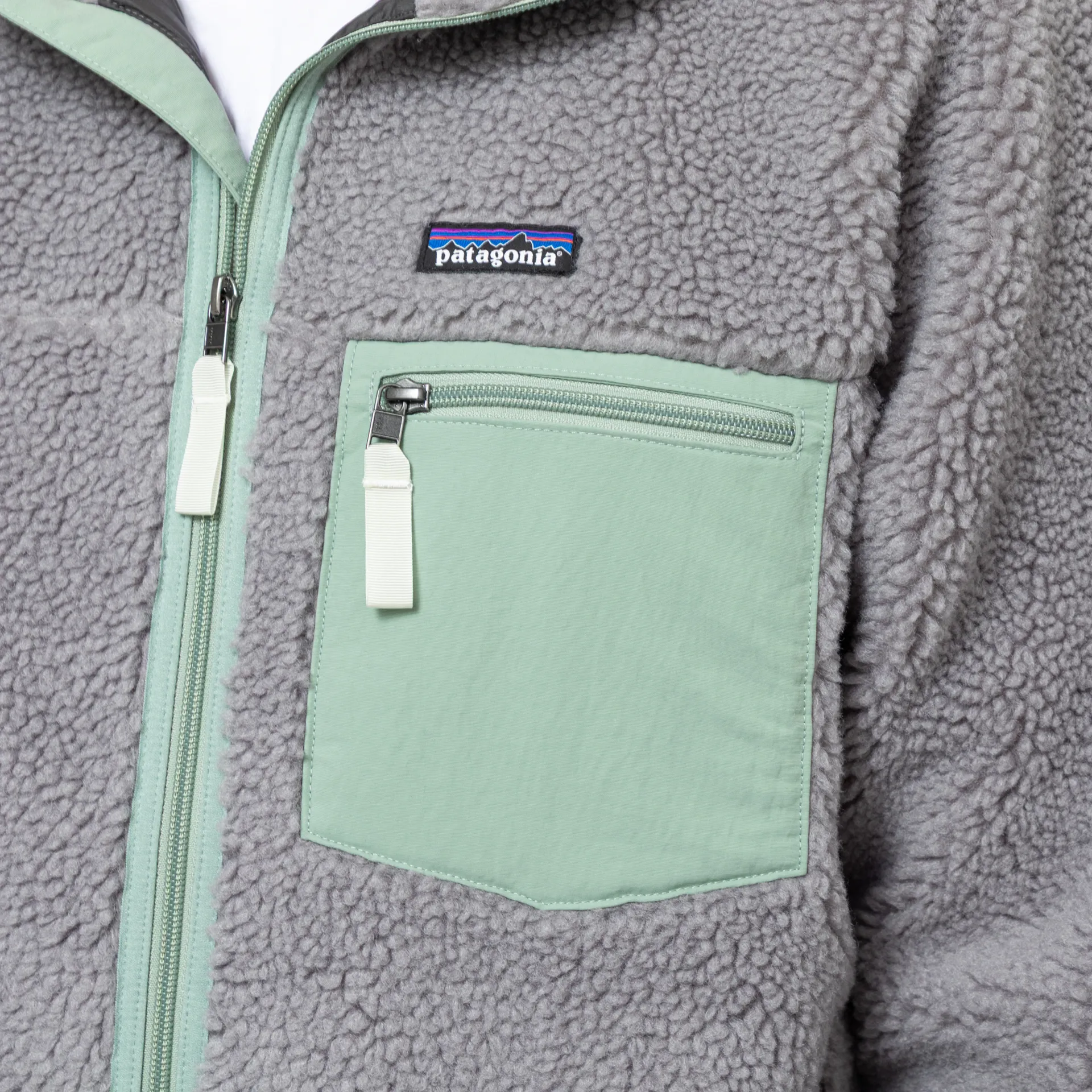 A new and improved version of the iconic Retro-X Fleece by Patagonia. It's now constructed with 100% Repreve recycled polyester certified by OceanCycle and sourced from coastal communities at risk of plastic pollution. It has a 100% recycled polyester taffeta with a durable water repellent finish without intentionally added PFAS. The jacket is now cut with a more relaxed silhouette for easier layering, with added fuzziness on the inside of the stand collar and tweak in the pocket shape that harkens back to the 2000's.