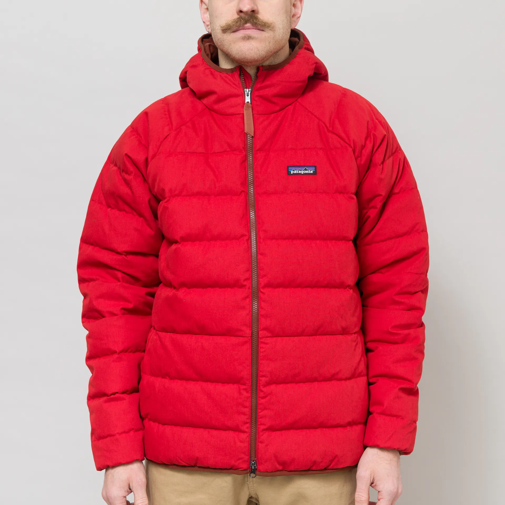 The Cotton Down Jacket from Patagonia has been cut in a regular fit for everyday comfort and crafted from 100% Cotton in Conversion with 600-fill-power 100% recycled down insulation. Featuring a full-zip through front, leading up to a low-profile hood, with raglan sleeves, and elasticated binding to the hood, hem and cuffs. The design is complete with two zippered pockets to the front, an internal chest pocket and the classic Patagonia logo to the chest.