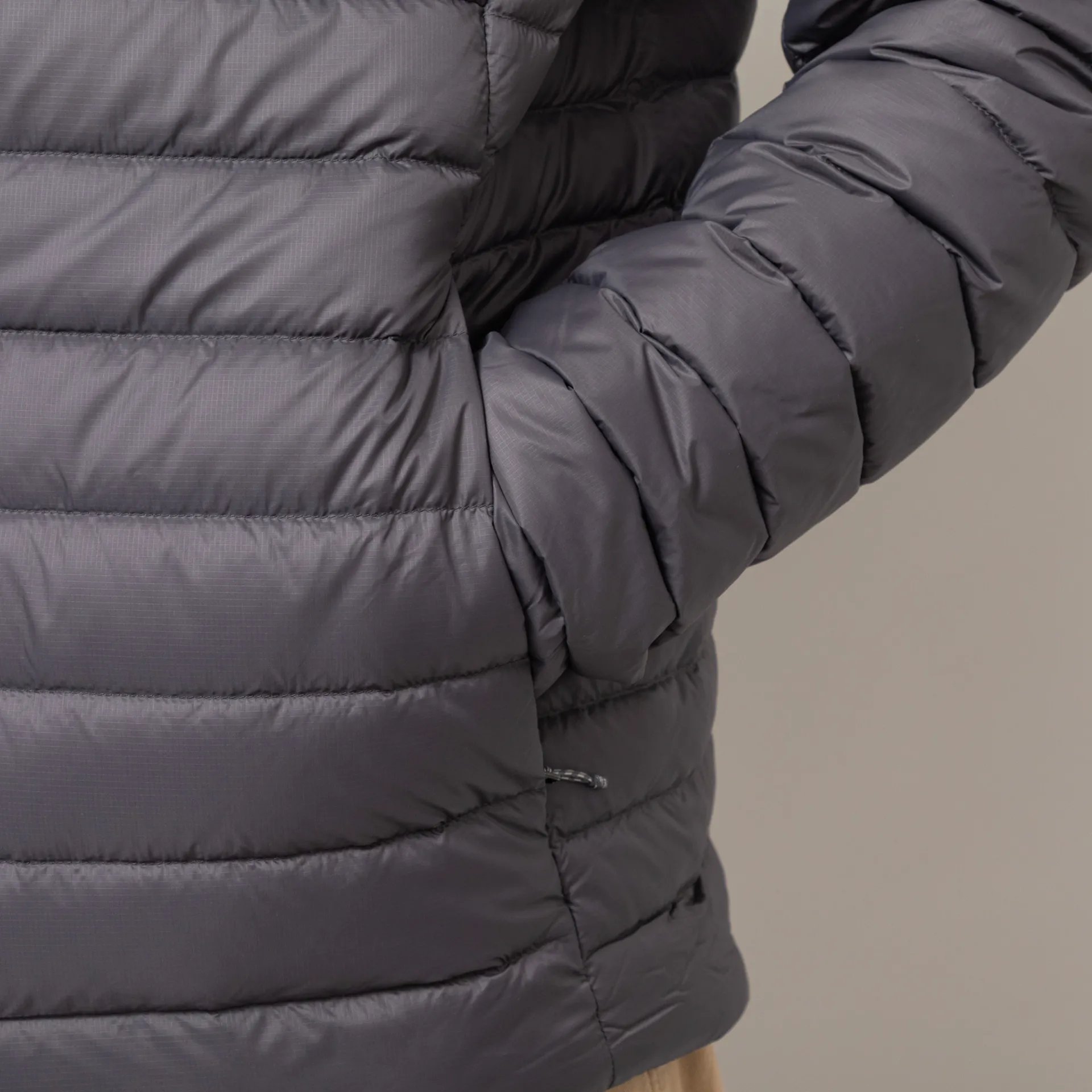 This ripstop has been treated with a DWR treatment for added weather-resistance and the jacket is insulated with 800-fill-power of RDS goose down, which can be ethically traced.
