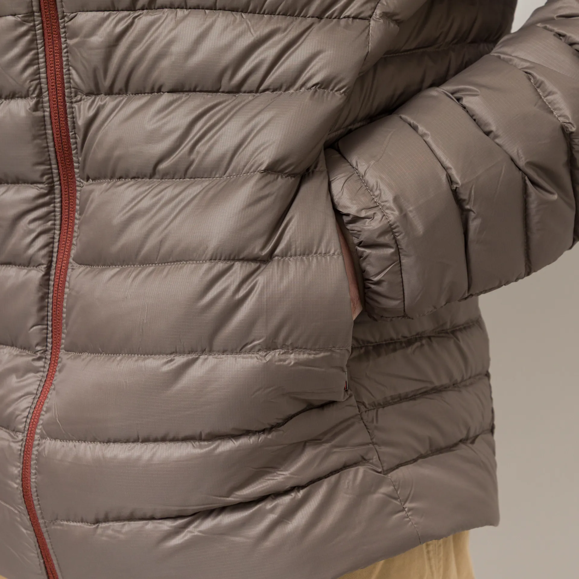 This ripstop has been treated with a DWR treatment for added weather-resistance and the jacket is insulated with 800-fill-power of RDS goose down, which can be ethically traced.