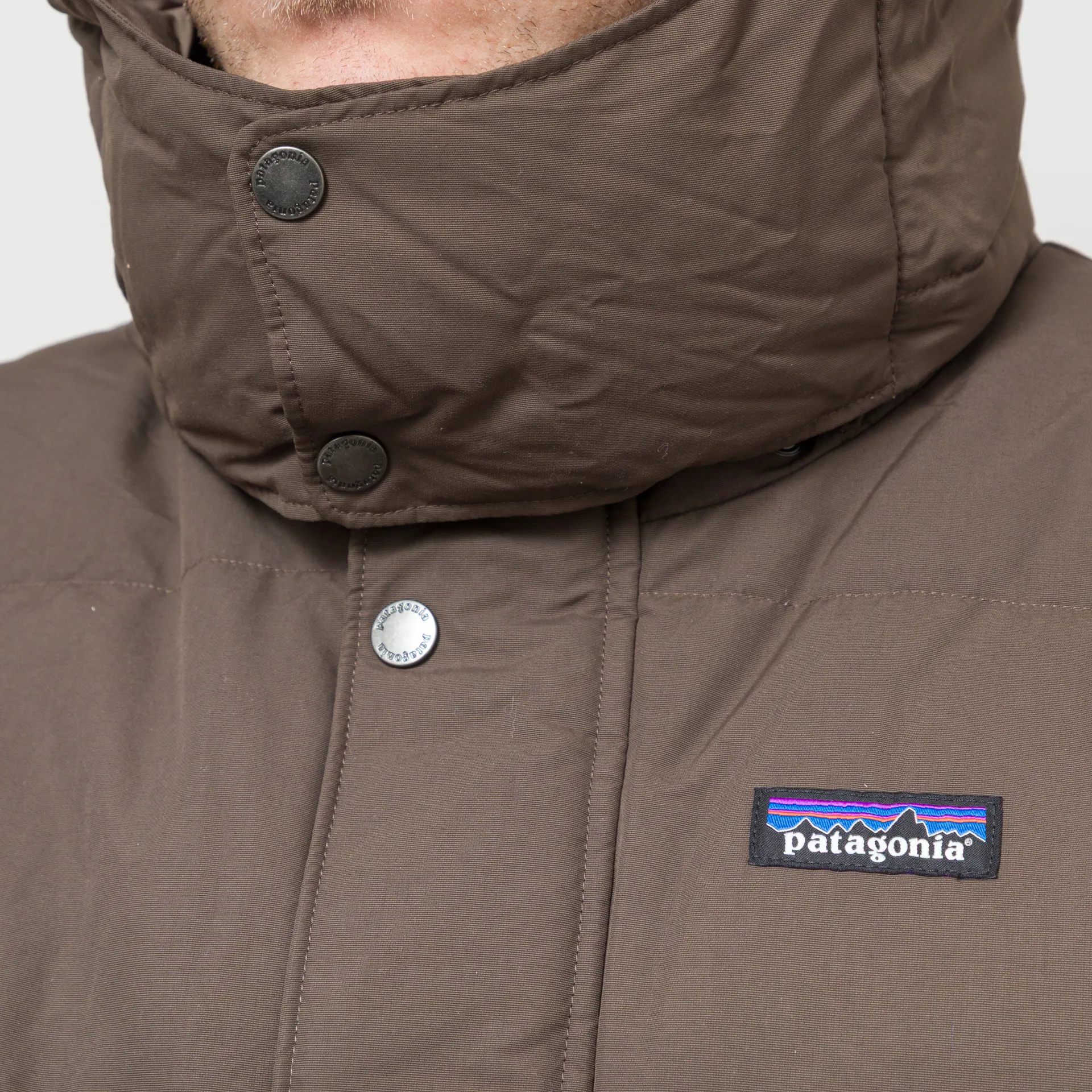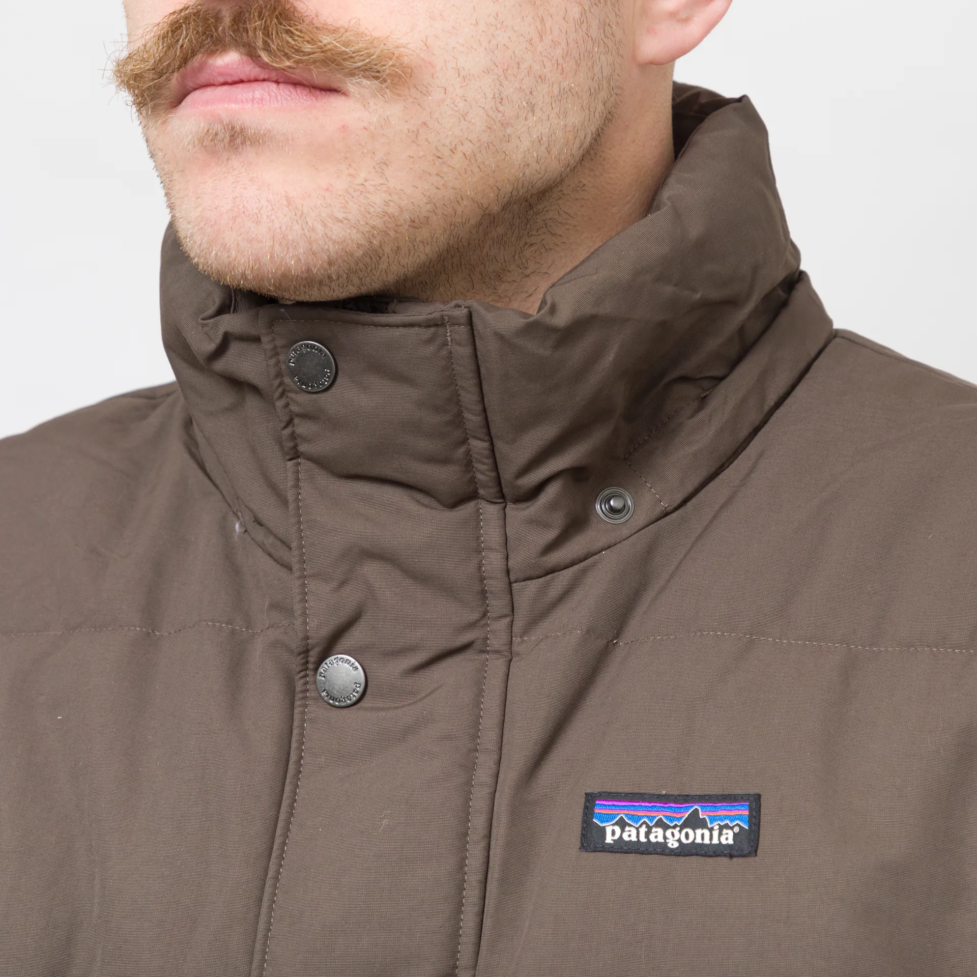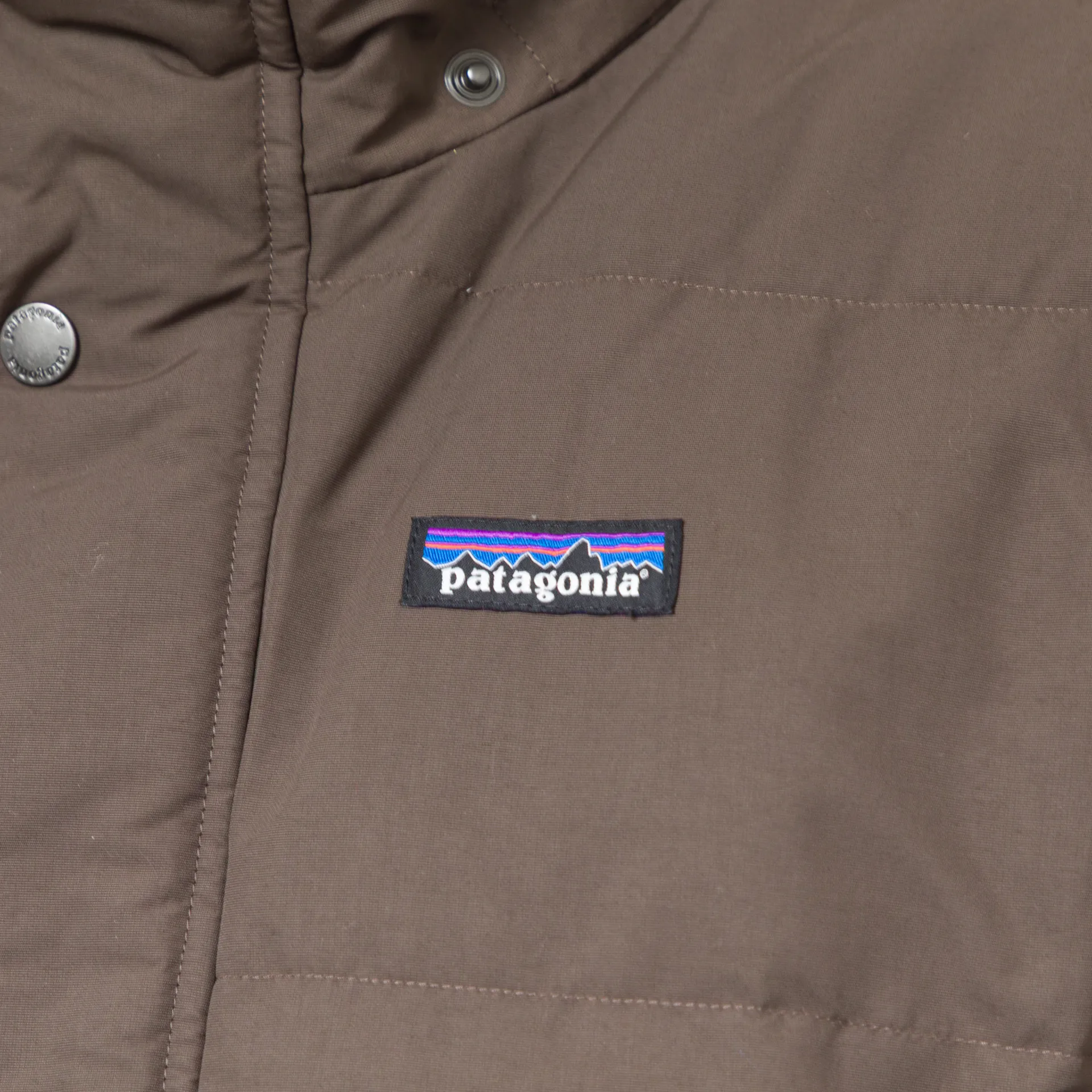 An insulated winter jacket from Patagonia made from NetPlus postconsumer recycled nylon with a PFC-free DWR finish, 600-fill-power recycled down and an adjustable fit. It features a woven logo patch to the chest.