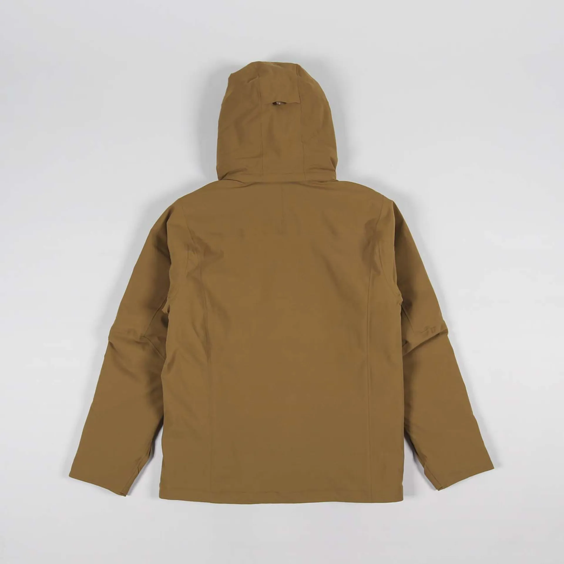 A winter jacket from Patagonia, made from a H2No Performance Standard 2-layer shell of 95% nylon (65% recycled) and 5% elastane plain weave with a waterproof/breathable barrier and a DWR finish.