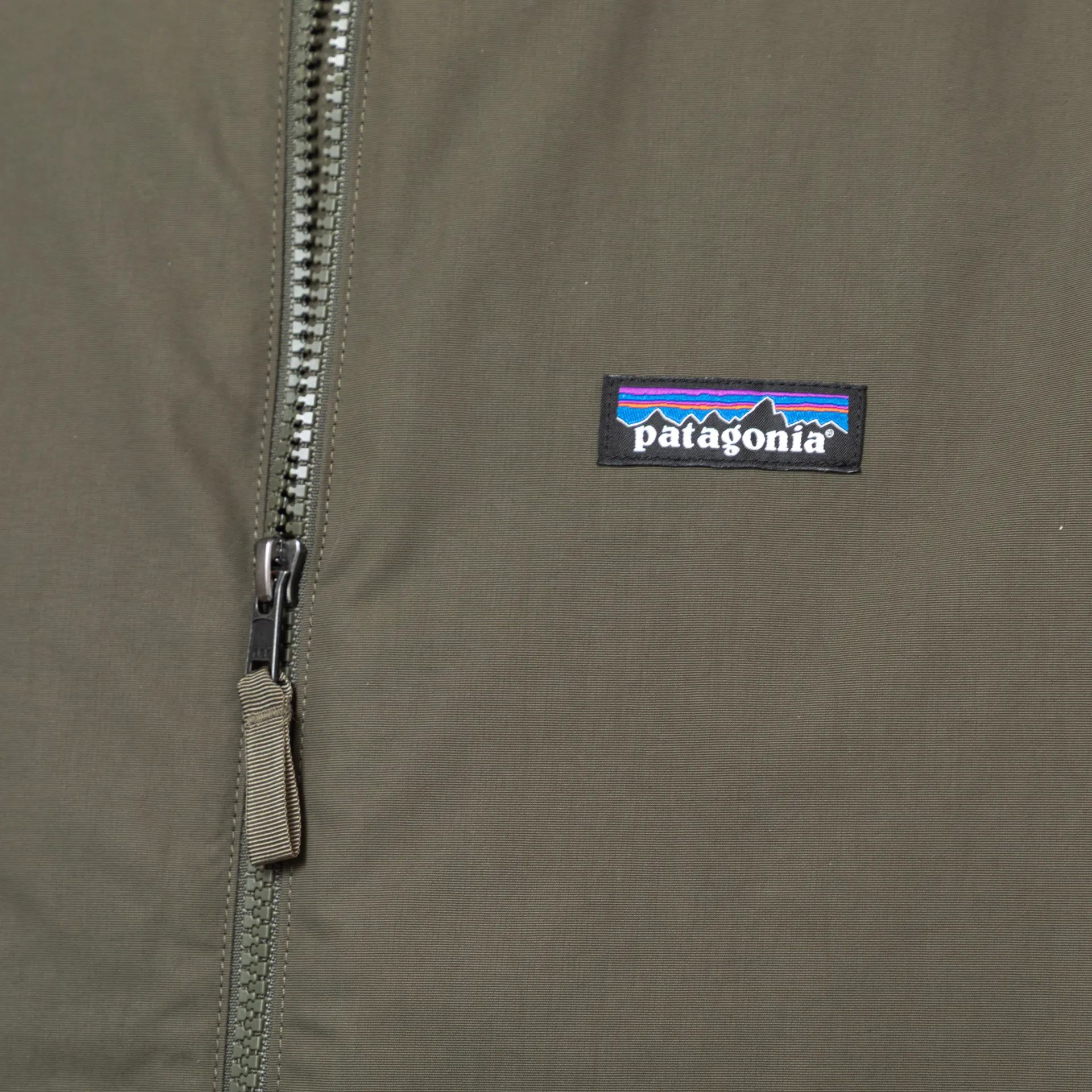A weather resistant jacket from Patagonia, constructed from NetPlus 100% recycled nylon faille and insulated with 60g Thermogreen 100% recycled polyester.