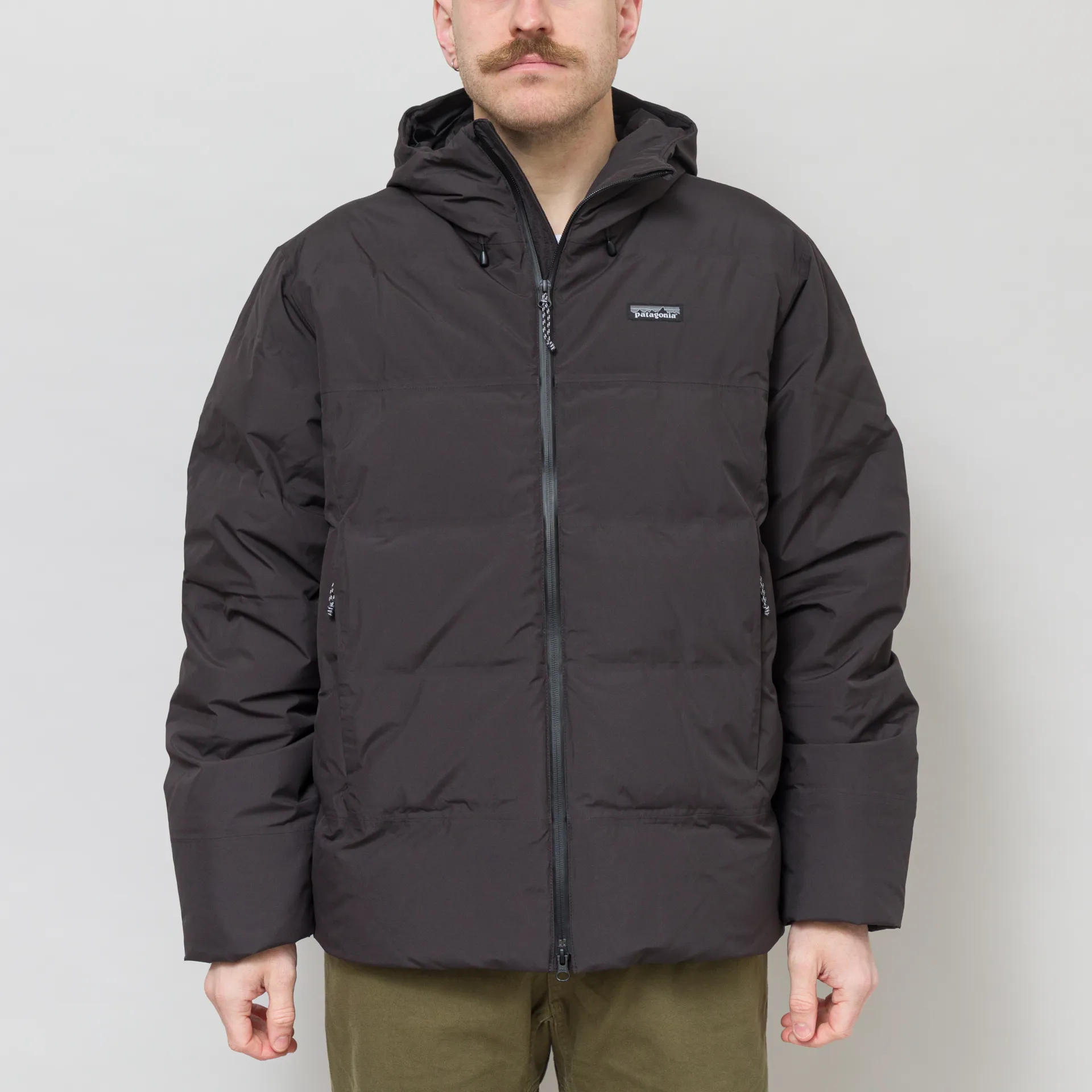 The Jackson Glacier Jacket from Patagonia is cut in a regular fit for everyday comfort. It is crafted from H2No Performace Standard 2-layer recycled polyester, which is waterproof, windproof, and breathable. It's insulated with 700-fill-power 100% recycled down and has baffle channels taped to the shell to prevent the down from shifting - eliminating cold spots in the jacket.It has a two-way zip front leading up to an adjustable storm hood, with two drawcords to the front and a third to the back. To the front is two handwarmer pockets, lined with brushed tricot for comfort, and there's a third pocket internally. Finished off with the classic Patagonia logo to the chest.
