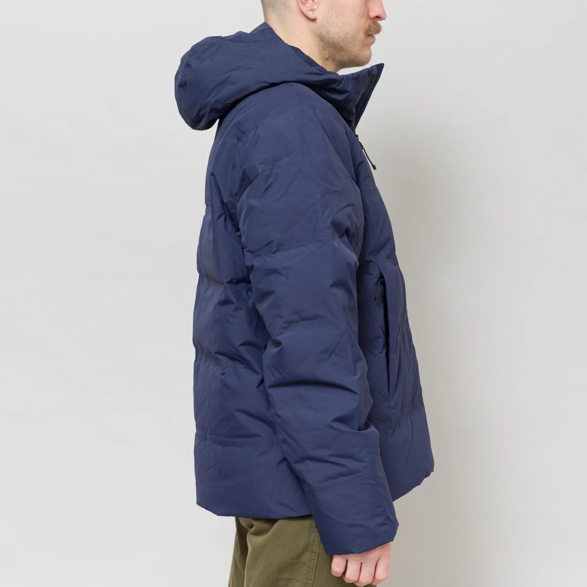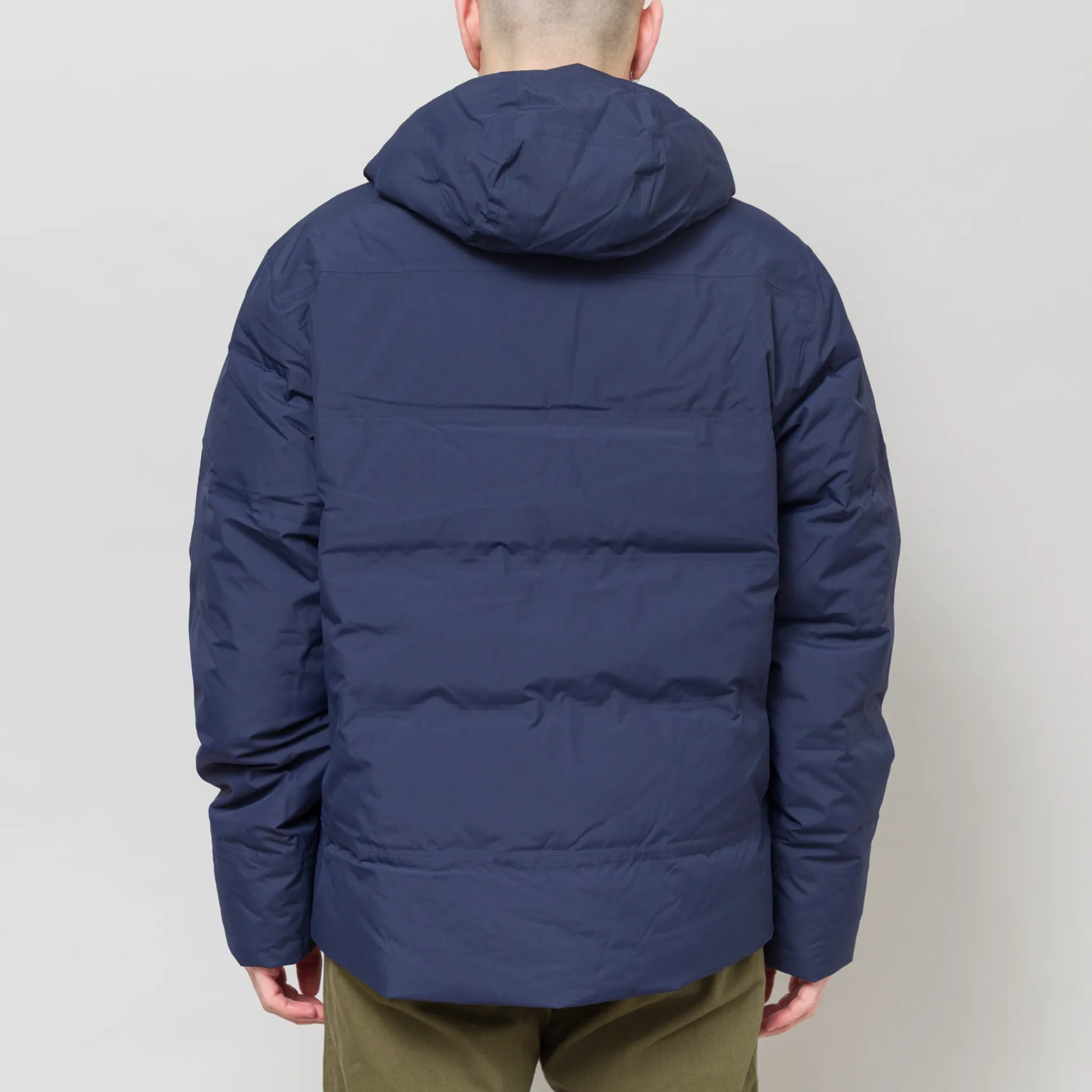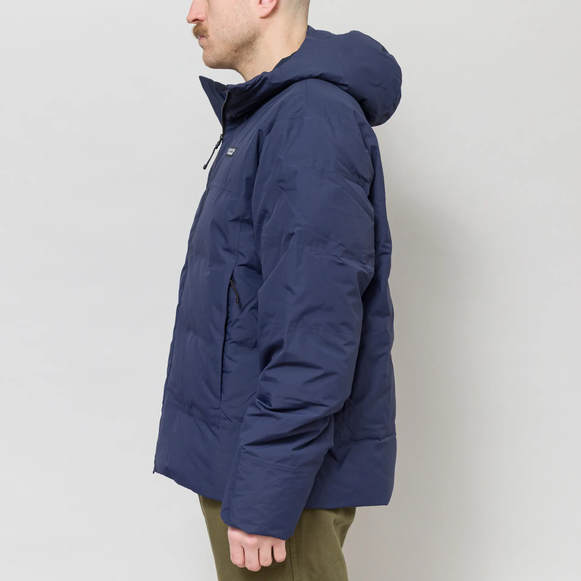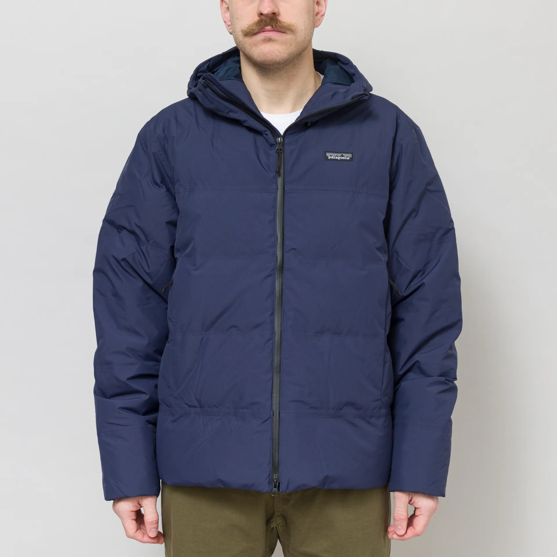 The Jackson Glacier Jacket from Patagonia is cut in a regular fit for everyday comfort. It is crafted from H2No Performace Standard 2-layer recycled polyester, which is waterproof, windproof, and breathable. It's insulated with 700-fill-power 100% recycled down and has baffle channels taped to the shell to prevent the down from shifting - eliminating cold spots in the jacket.It has a two-way zip front leading up to an adjustable storm hood, with two drawcords to the front and a third to the back. To the front is two handwarmer pockets, lined with brushed tricot for comfort, and there's a third pocket internally. Finished off with the classic Patagonia logo to the chest.