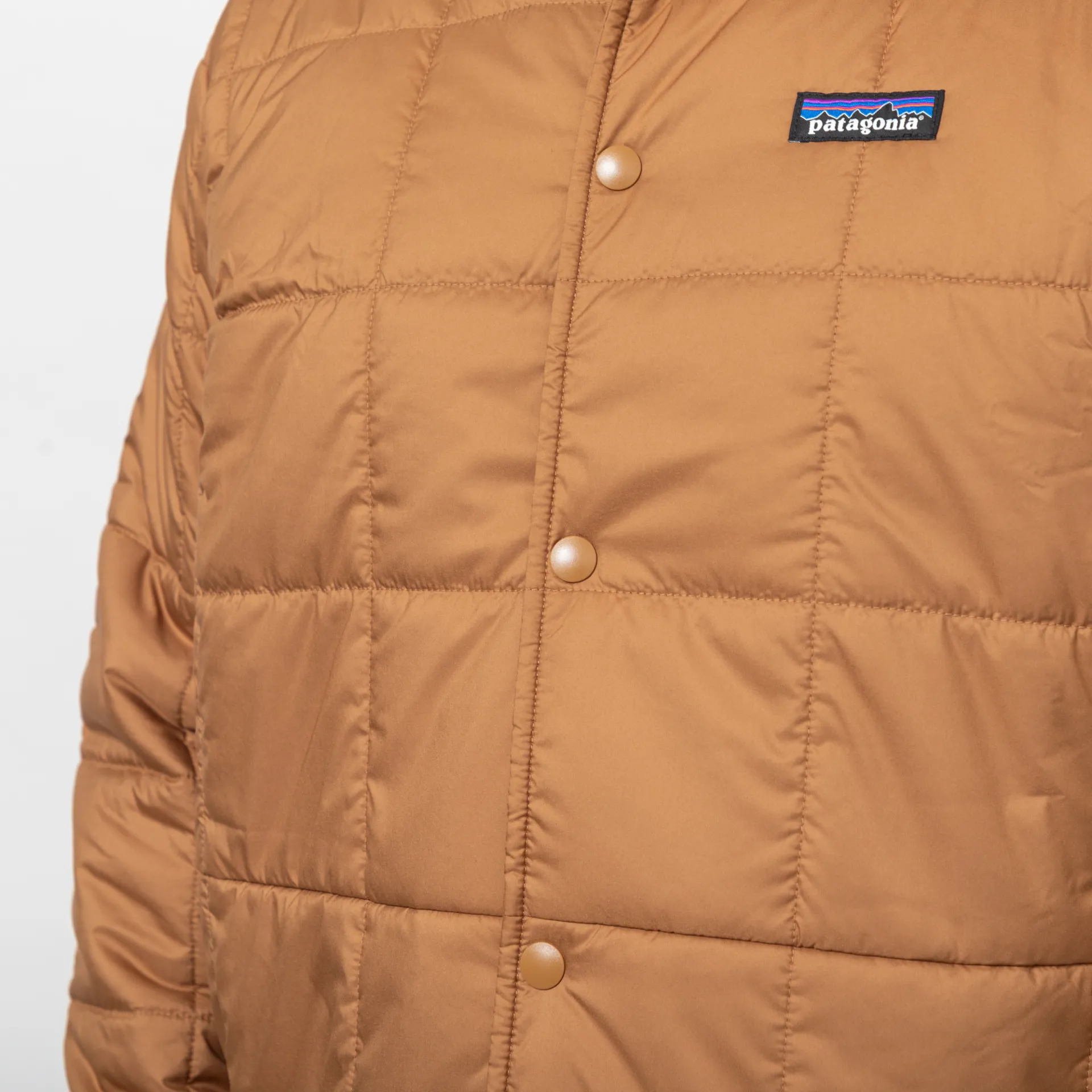 An insulated shirt jacket from Patagonia, constructed with a stretchy 100% polyester body and a new 100% recycled polyester taffeta lining, treated with a durable water repellent coating for protection against light rainfall. The jacket is filled with 60g Thermogreen insulation, consisting of 100% recycled polyester, and features a full snap-button placket, leading to a classic collar. With elasticated cuffs, two hand pockets and a single internal pocket for security. Finished off nicely with the signature Patagonia patch at the chest.