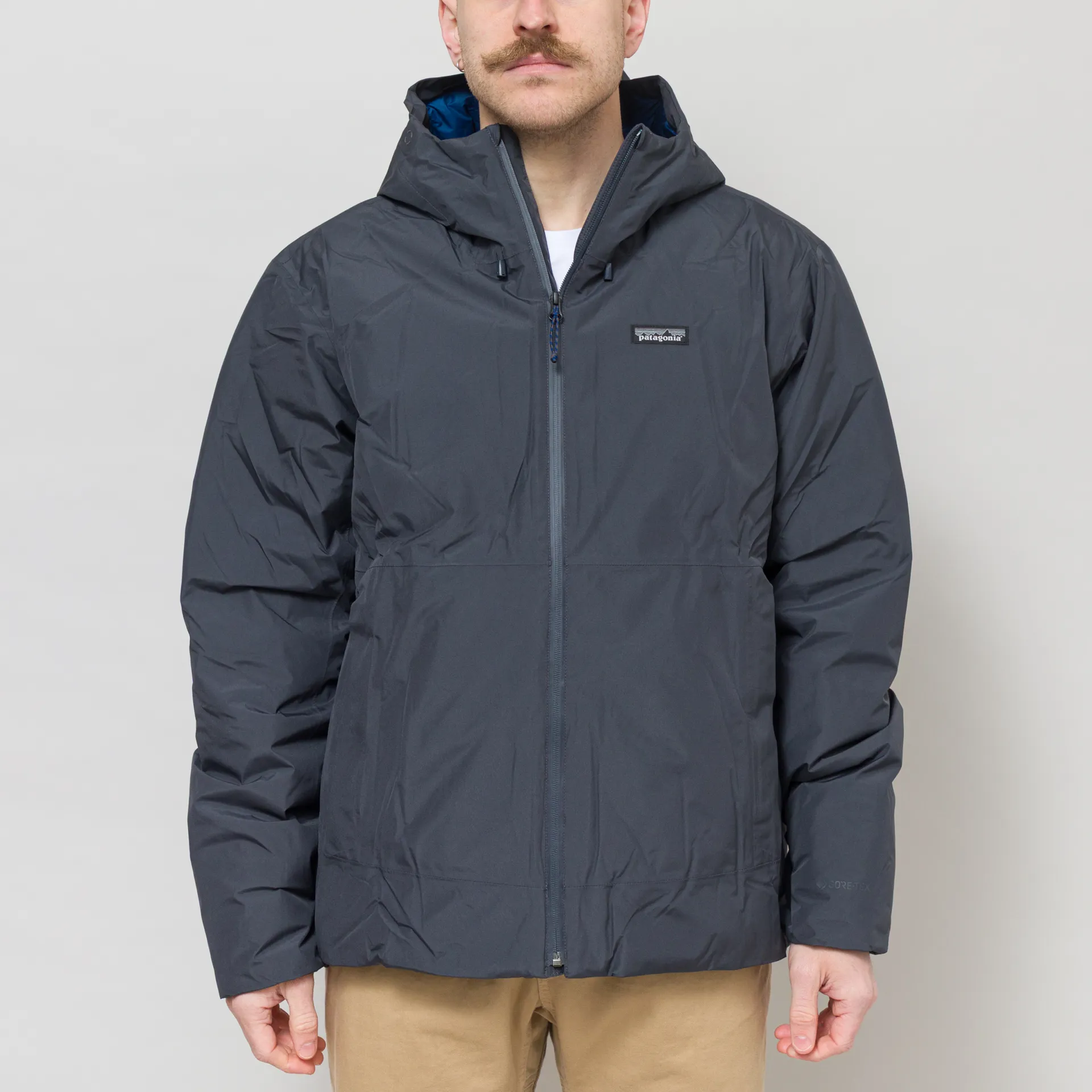 It features a zip-through front, with an interior storm flap and brushed tricot-lined collar for added chin comfort. It has an insulated, fixed hood with hidden adjustment cords that cinch down, storm cuffs that can be adjusted and worn over or under gloves and drawcords at the hem to adjust the fit. To keep your essentials safe, it has two welt, zipped handwarmer pockets and a single internal chest pocket, then finished with the classic Patagonia patch to the chest.