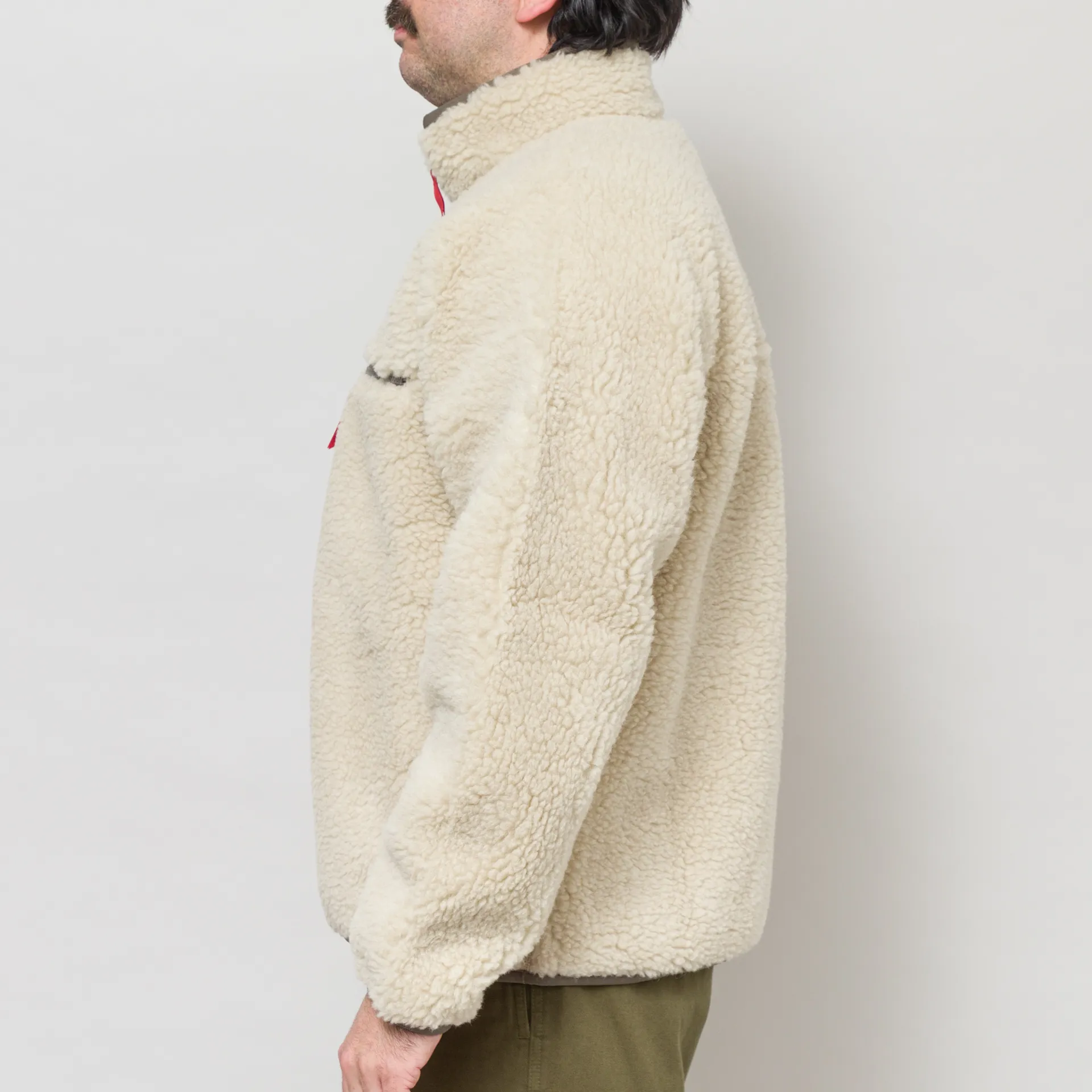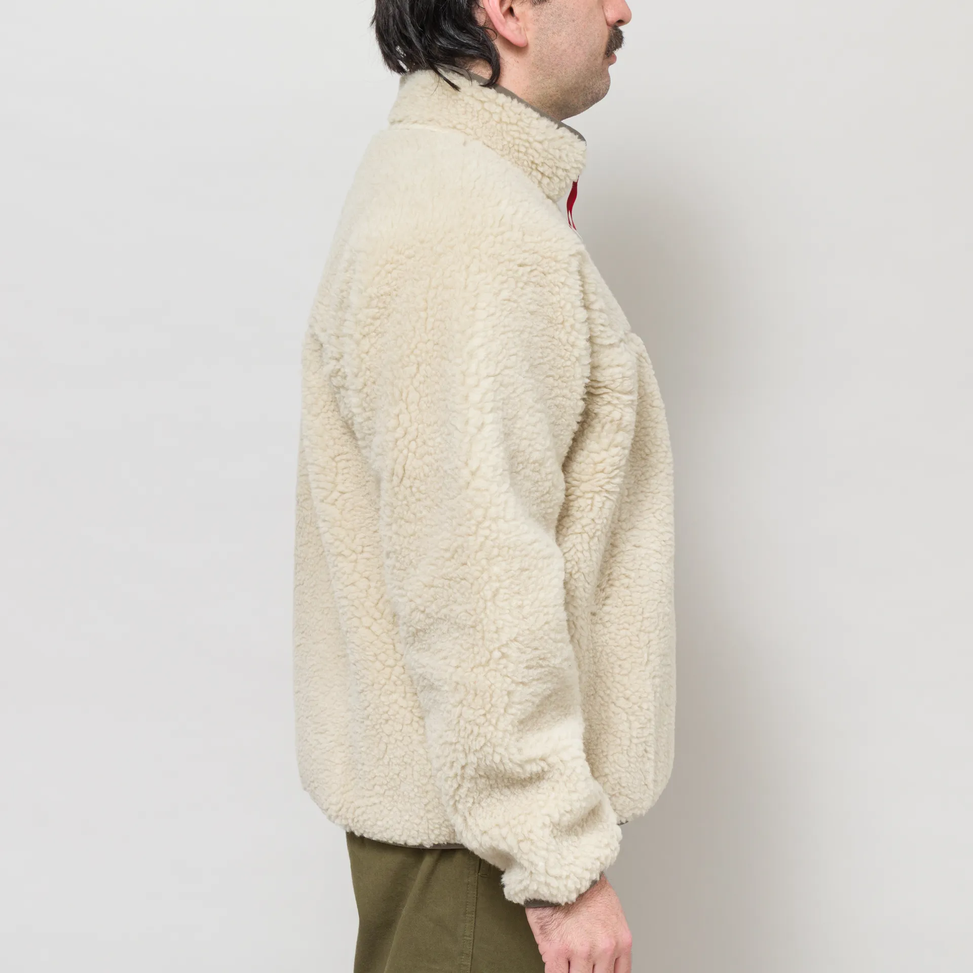 A warm, high-pile fleece from Patagonia, constructed with recycled synthetic materials and recycled natural fibres. It's cut in a regular fit for everyday wear and features a full zip-through front with an internal wind flap, a stand collar, binding throughout and is lined with mesh for comfort. It has Y-joint sleeves to allow for full range of movement, with two zipped handwarmer pockets and a single zipped chest pocket. The design is complete with the classic Patagonia patch to the chest.