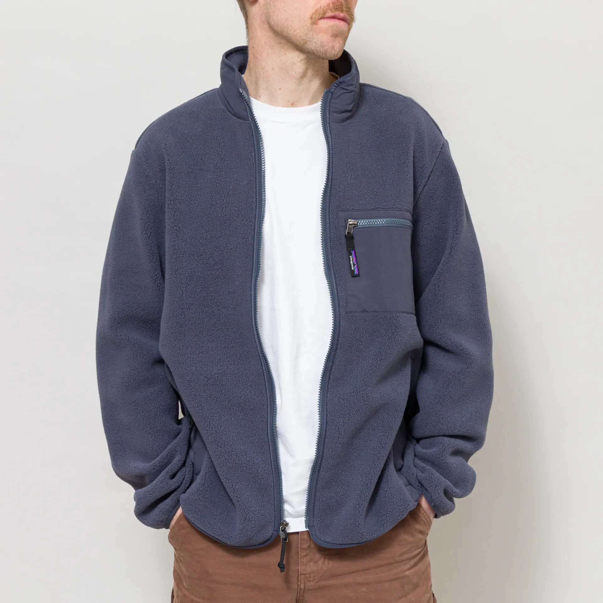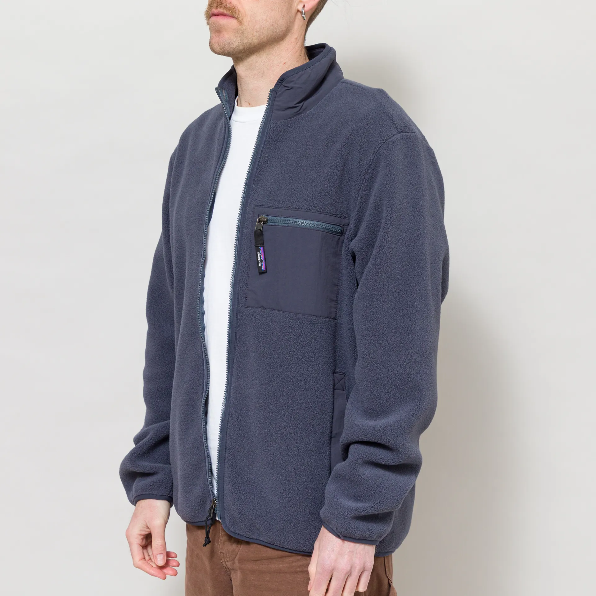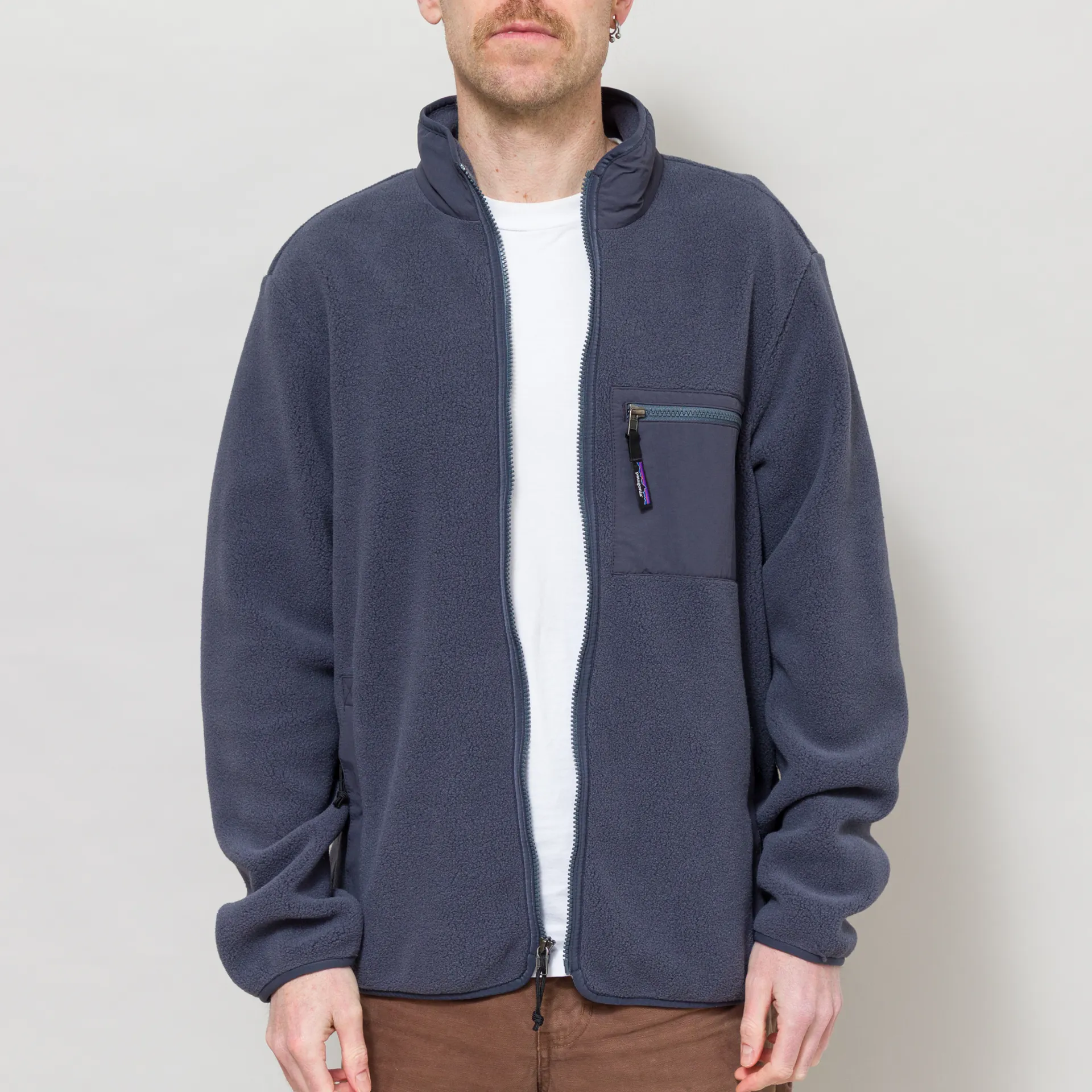 An updated version of Patagonia's Synchilla Jacket, made from a super soft and warm 100% recycled polyester fleece with an anti-piling finish, and overlays to the zippered chest and handwarmer pockets, and the collar, made from recycled nylon.