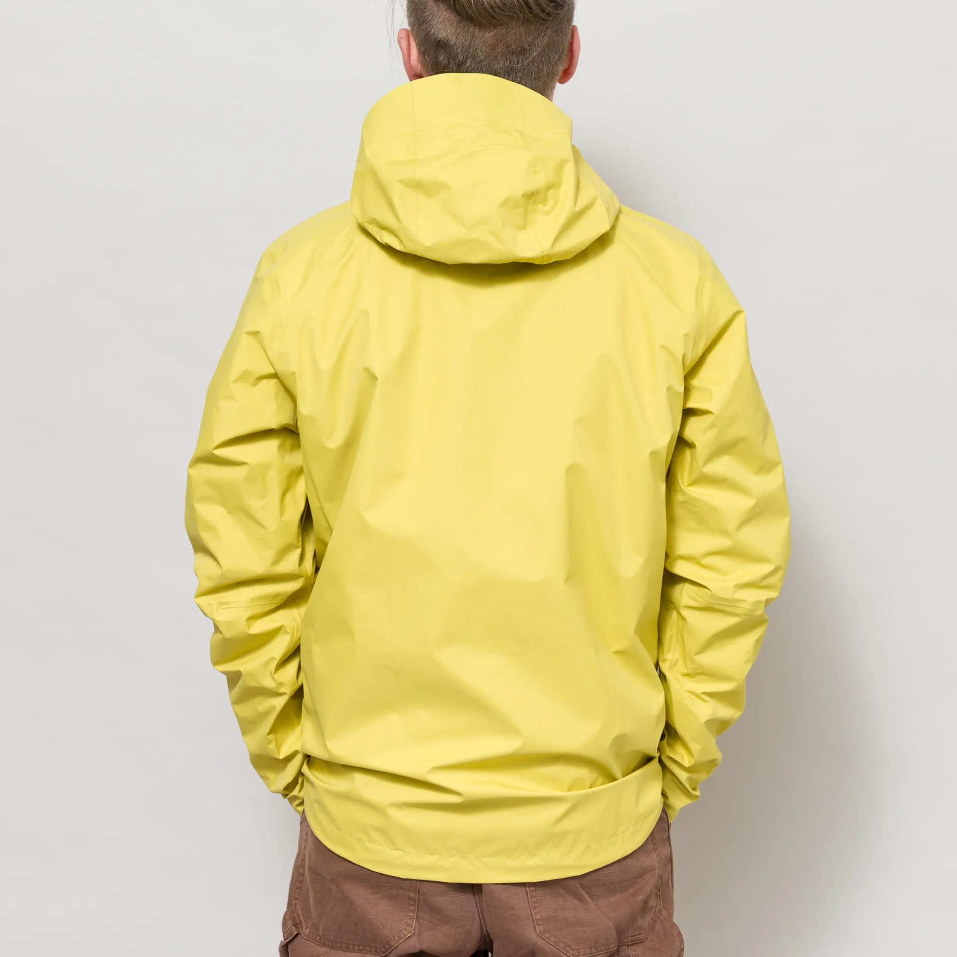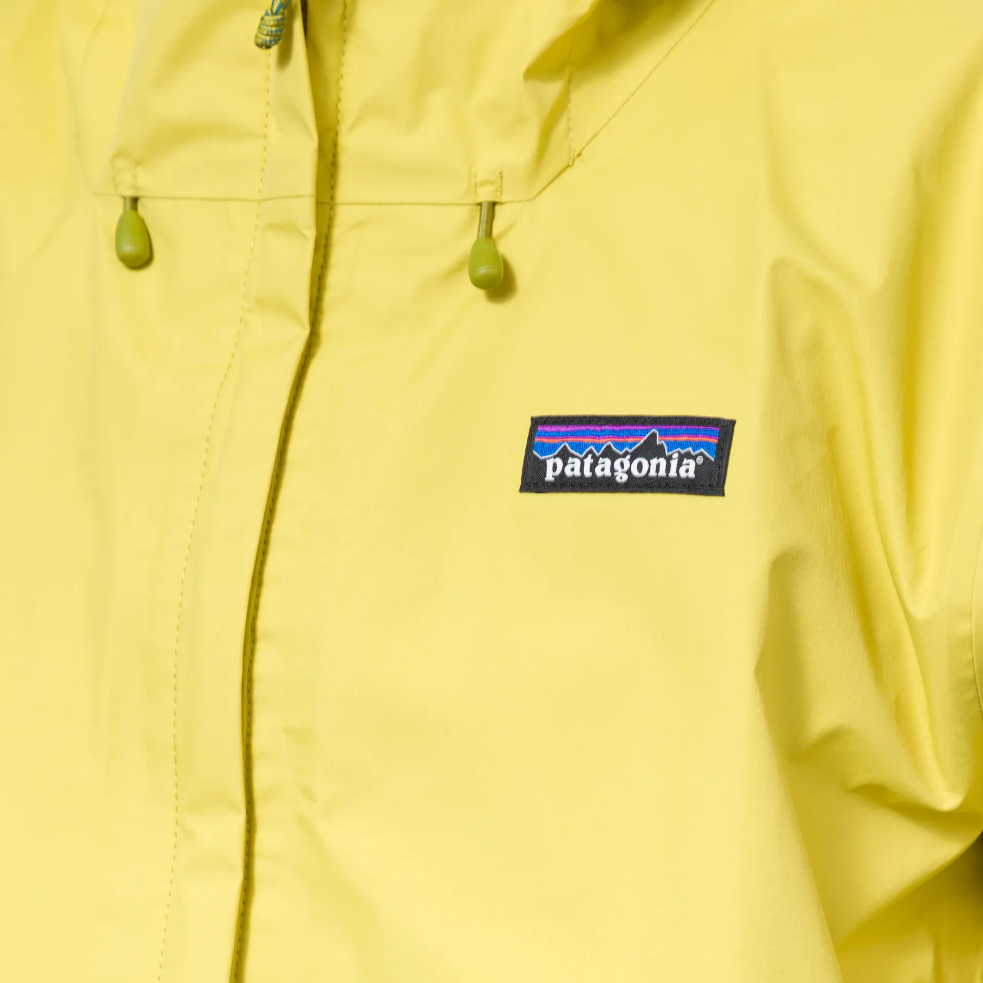 A waterproof jacket from Patagonia made from three layers of H2No® Performance Standard recycled nylon ripstop with a DWR finish and a woven chest logo.