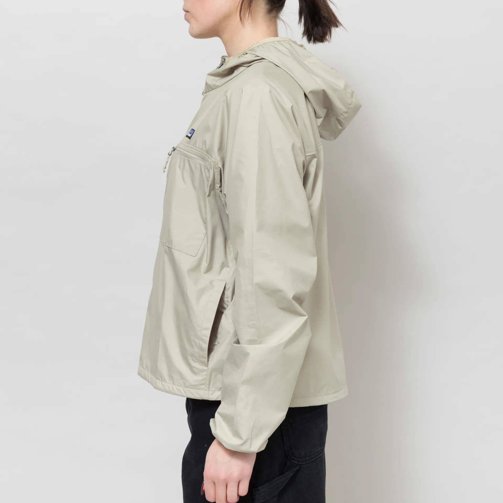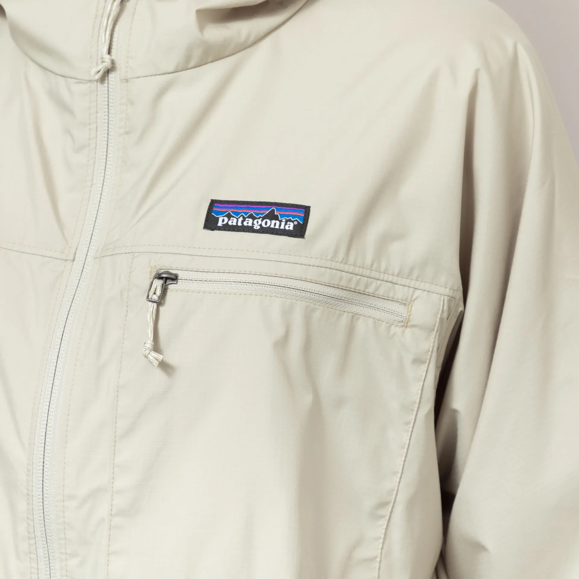 A weather-resistant jacket from Patagonia, constructed from featherweight recycled polyester ripstop with a durable water-resistant coating for protection against light rainfall.