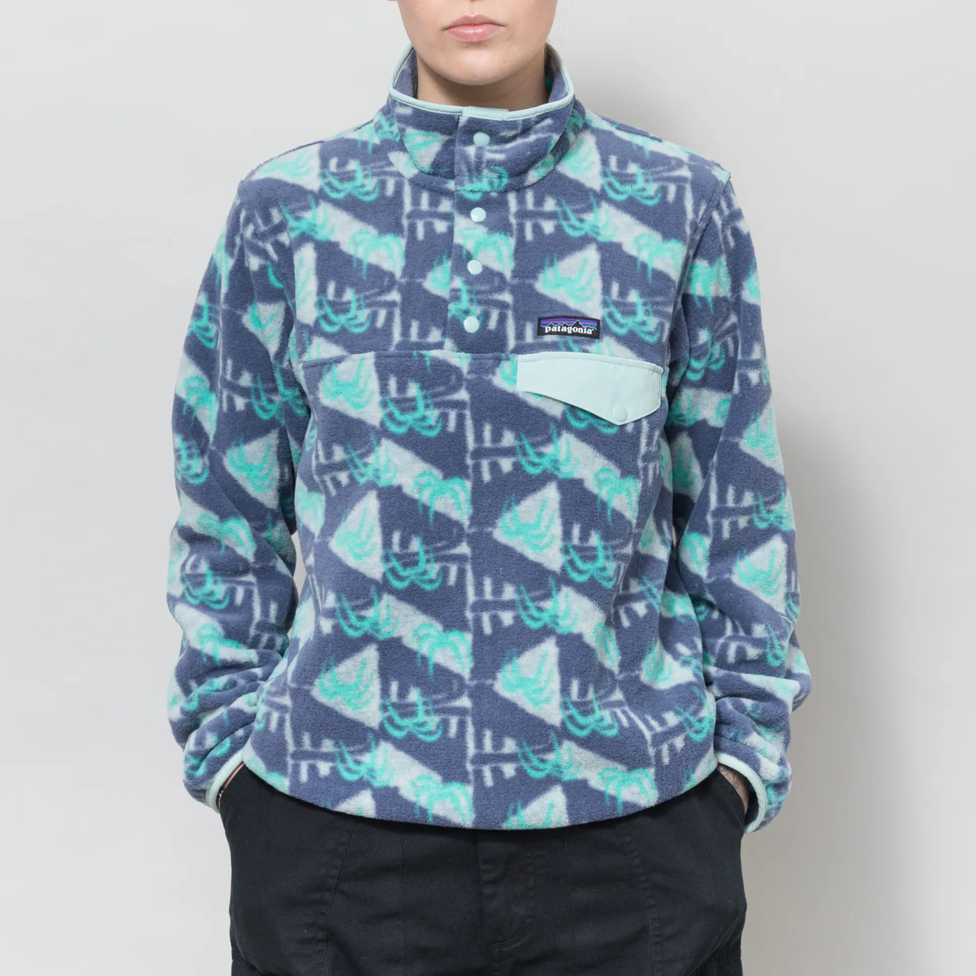 Patagonia Womens Lightweight Synchilla Snap-T Fleece Pullover Jaguar Geo Blue Sage