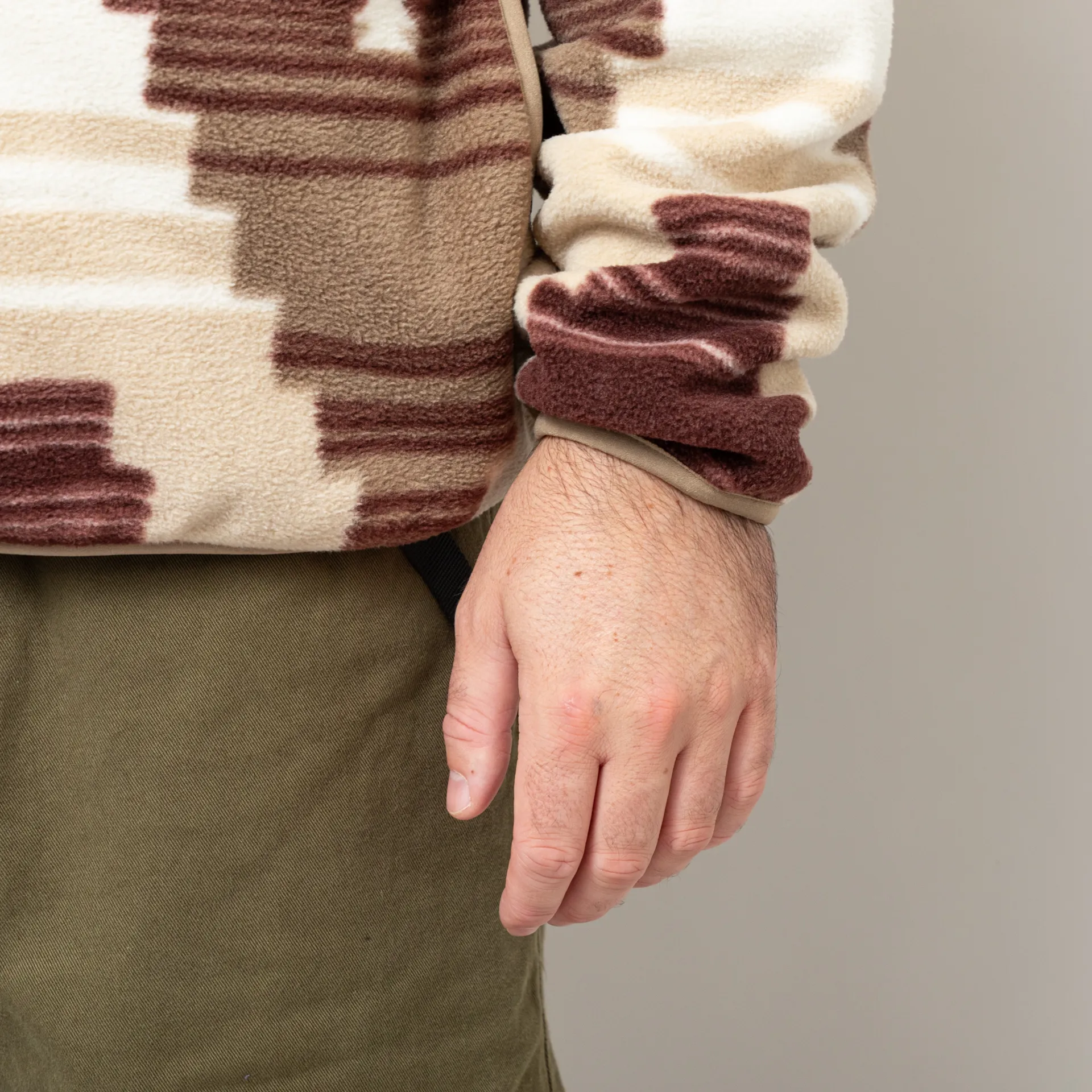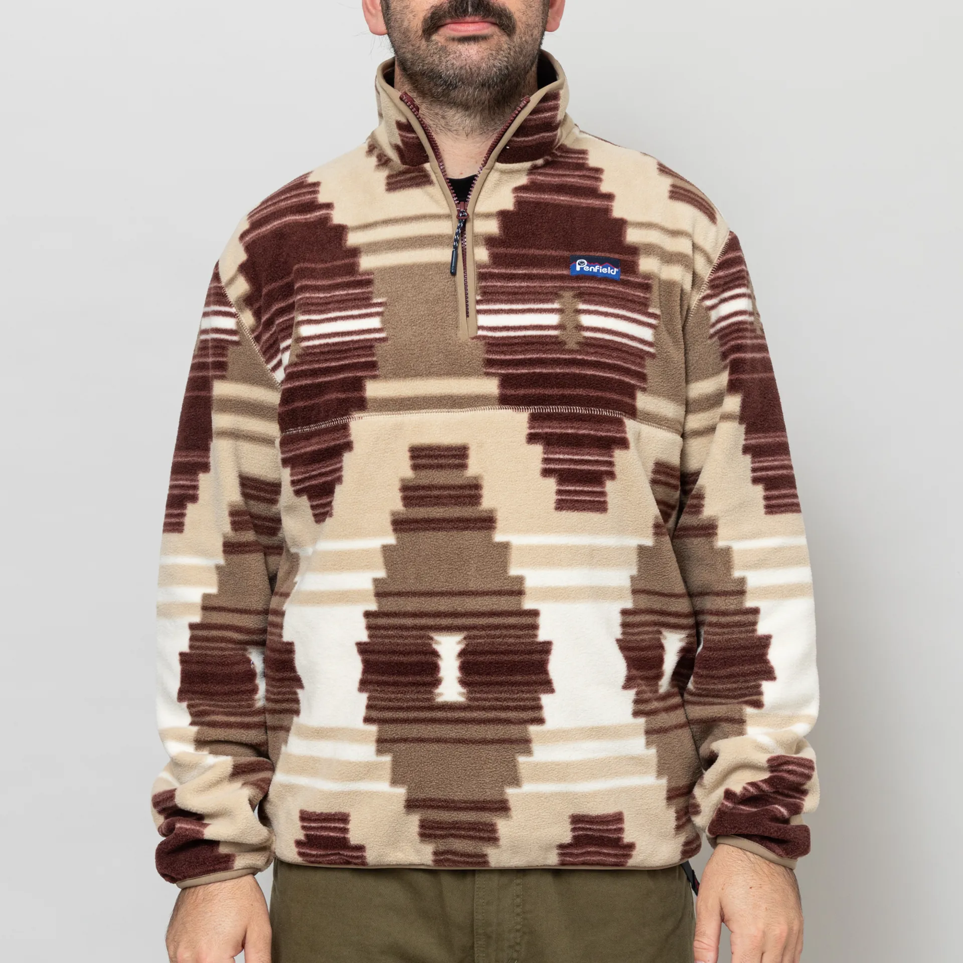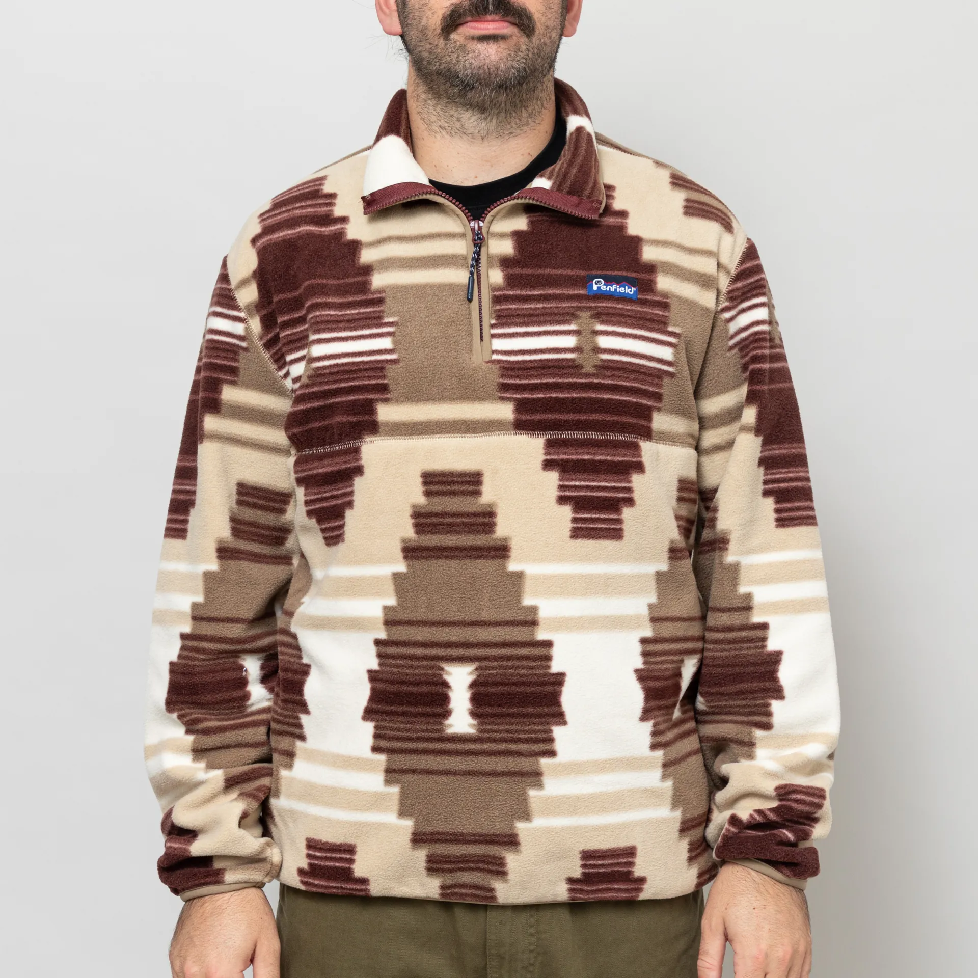 A quarter zip fleece from Penfield, constructed from 300gsm recycled polar fleece with a durable water-resistant coating for protection against light rainfall. The fabric is also hydrophobic, meaning it'll dry quickly and insulate even when wet. It's cut in a regular fit for everyday comfort an features a classic stand collar, an elasticated hem and cuffs, with two hand pockets. The design is complete with the signature Penfield badge at the chest and an all-over print, paying tribute to the textile craft of Penfield's Forefounders.