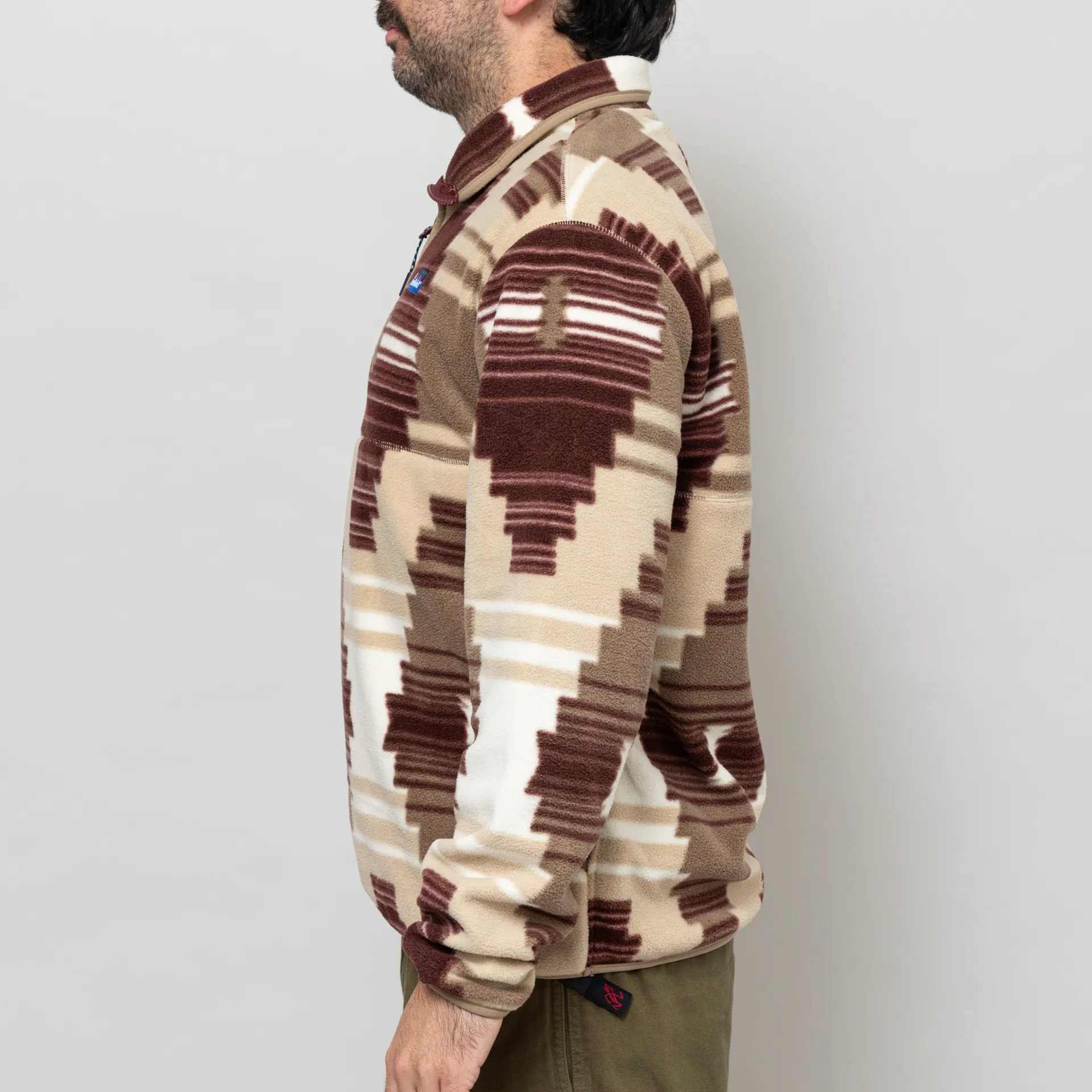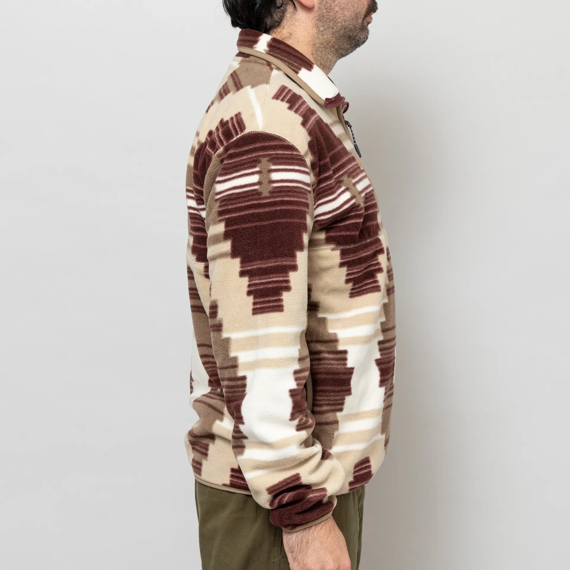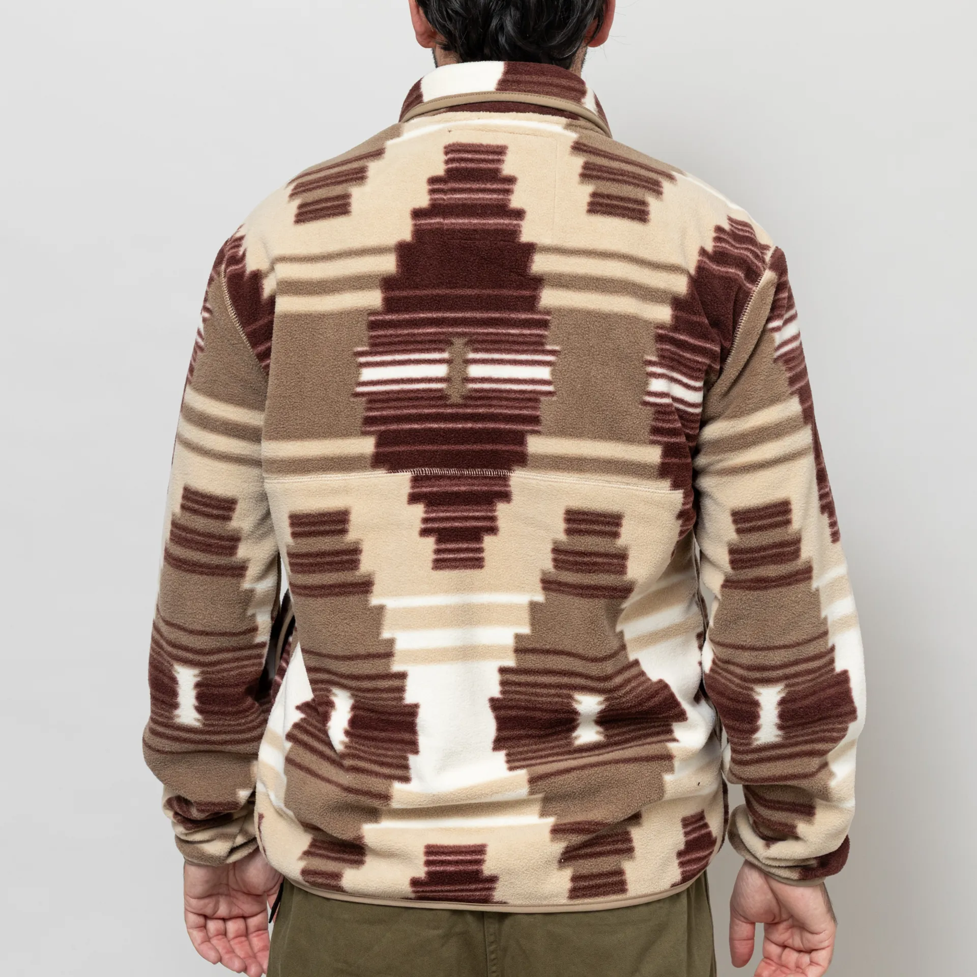 A quarter zip fleece from Penfield, constructed from 300gsm recycled polar fleece with a durable water-resistant coating for protection against light rainfall. The fabric is also hydrophobic, meaning it'll dry quickly and insulate even when wet. It's cut in a regular fit for everyday comfort an features a classic stand collar, an elasticated hem and cuffs, with two hand pockets. The design is complete with the signature Penfield badge at the chest and an all-over print, paying tribute to the textile craft of Penfield's Forefounders.