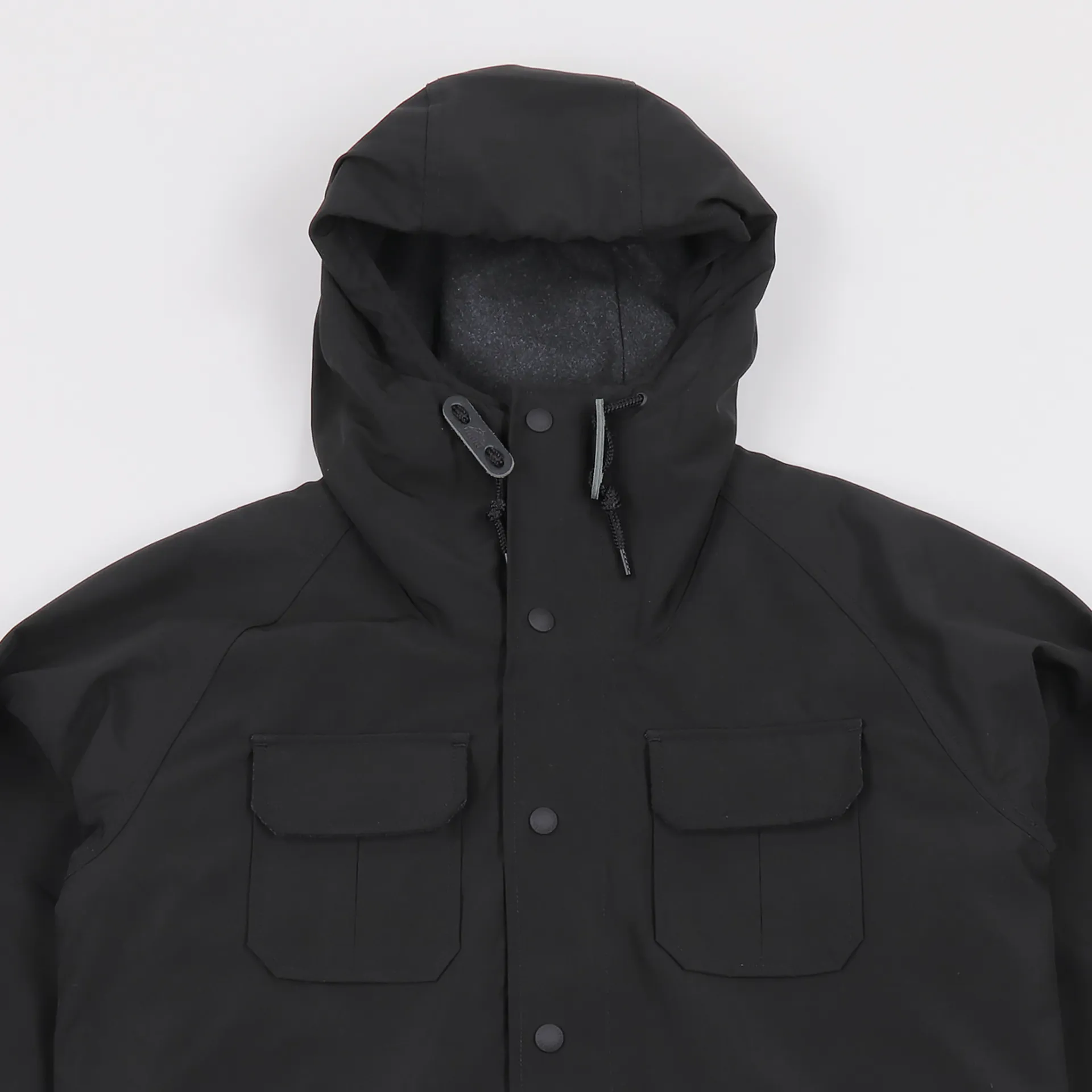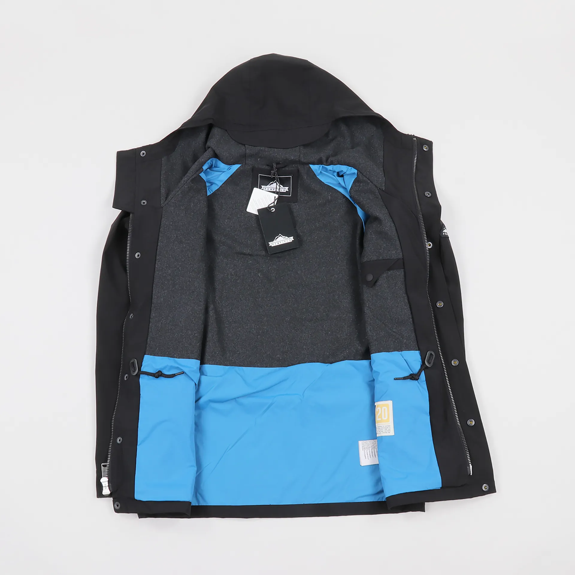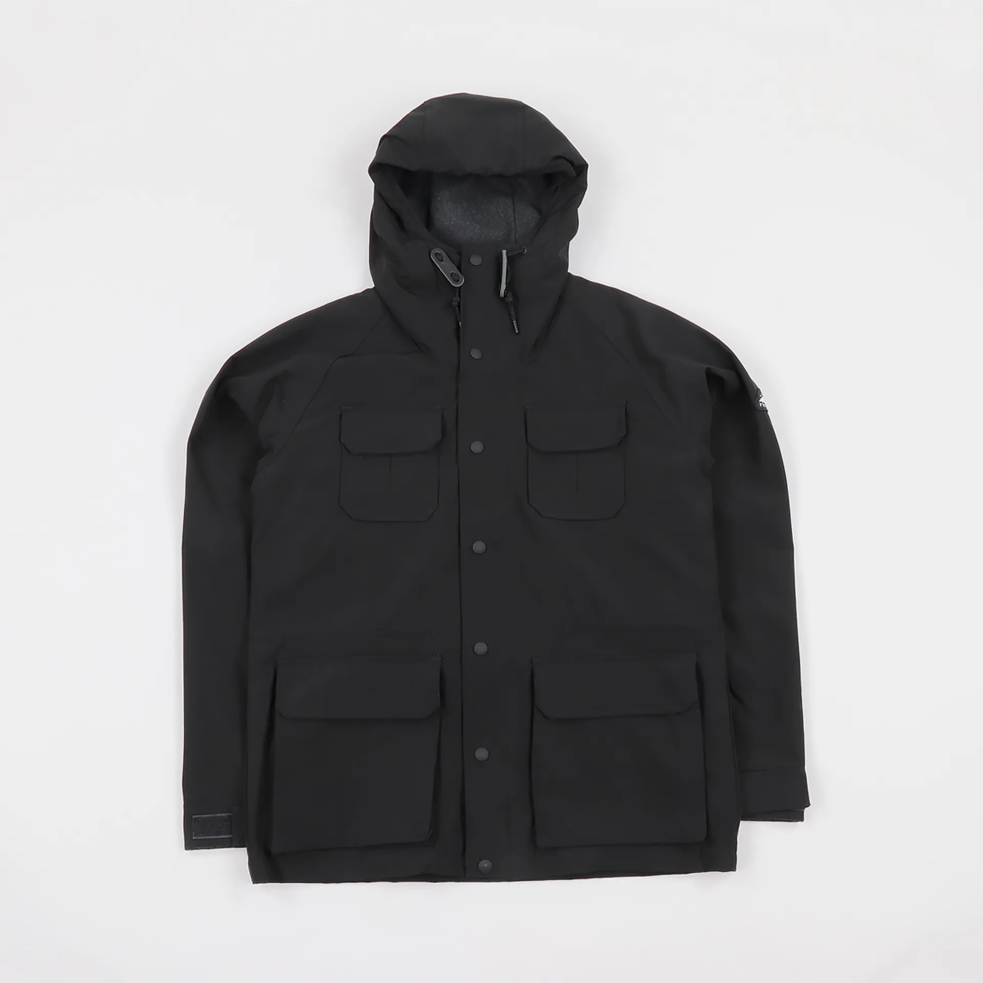 For the jacket's design it has two handwarmer pockets which double-up as part of the four pocket velcro design. In addition it has an internal security pocket for your more valuable items. A two-way zip-up front meets a button-up storm flap to keep you safe from leaks and for a more personal fit it has a drawstring toggle hood and waist clinch, as well as velcro cuffs. A great looking outer layer for the cold rainy months.