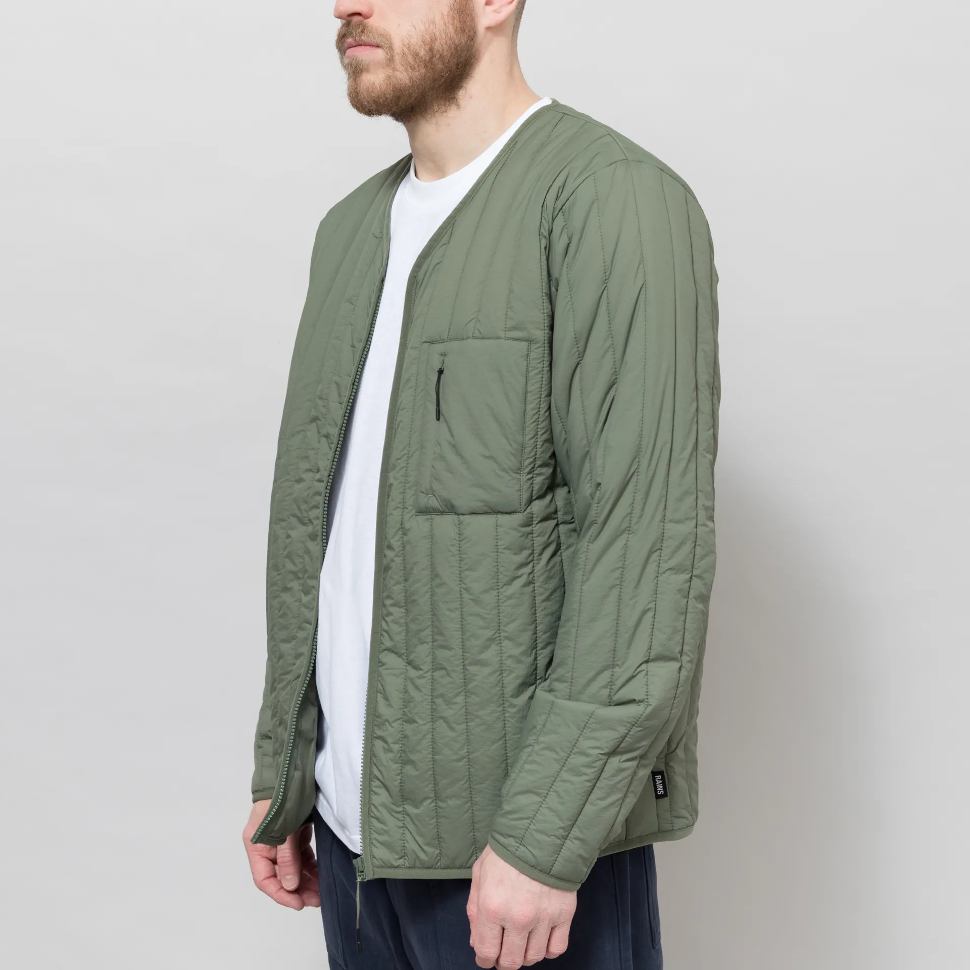 A lightweight liner jacket from Rains, constructed from water-repellent and breathable nylon. It's cut in a regular fit for everyday comfort and features a zip-through front, leading to a V-neckline, with a snap-button at the cuffs to adjust the fit. Finished off with two classic hand pockets, a single zip pocket at the chest and a woven flag label at the side seam.