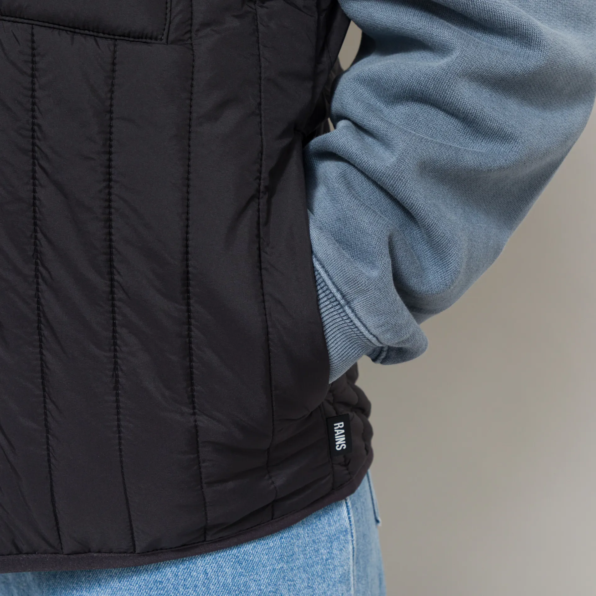 A lightweight liner vest from Rains womenswear collection, cut in a relaxed fit for easy layering and constructed from water-repellent and breathable nylon