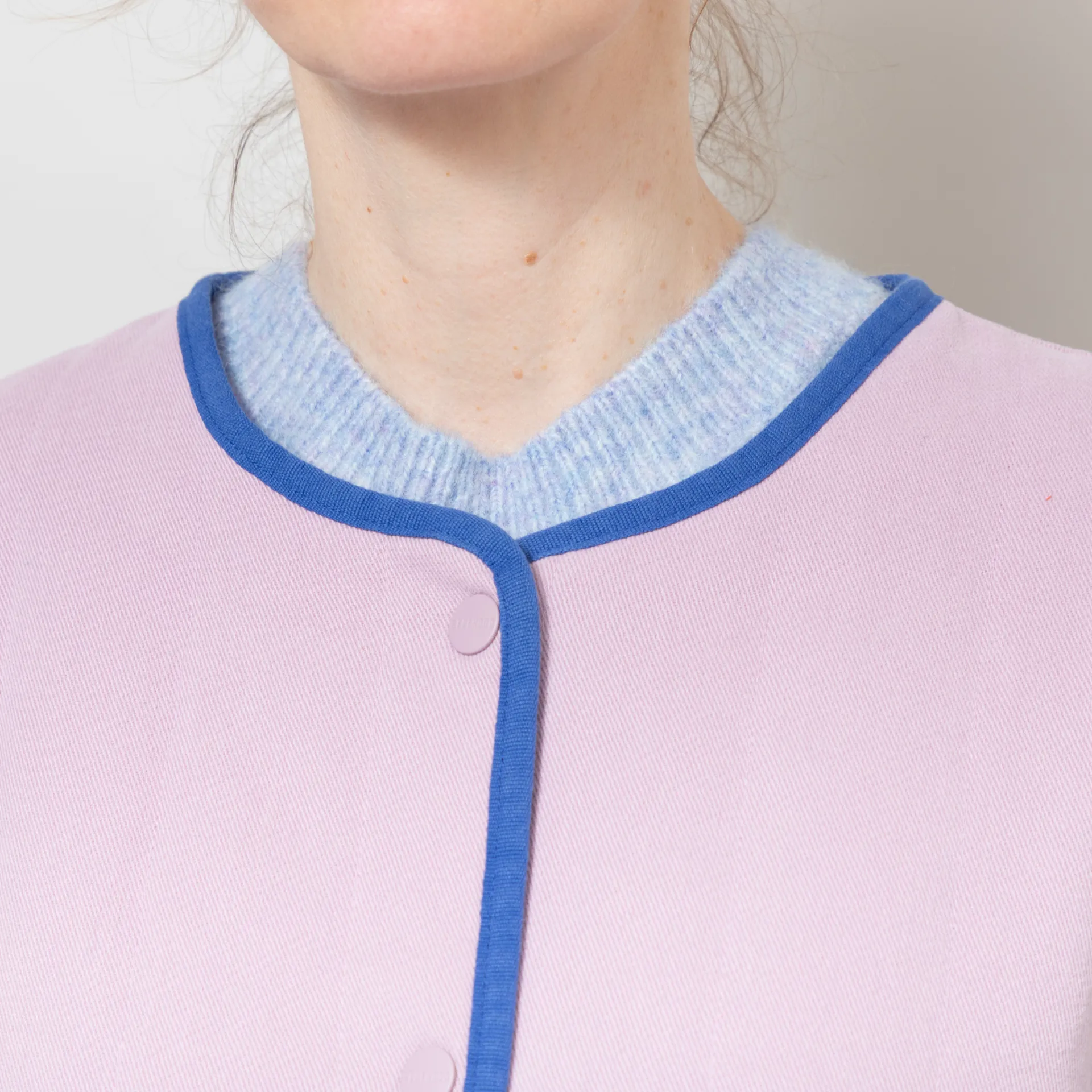 • Collarless neckline
