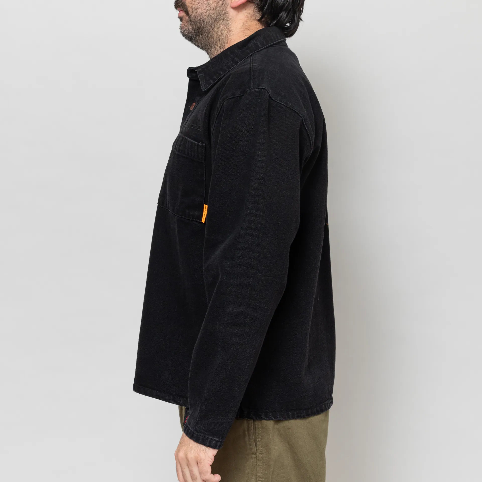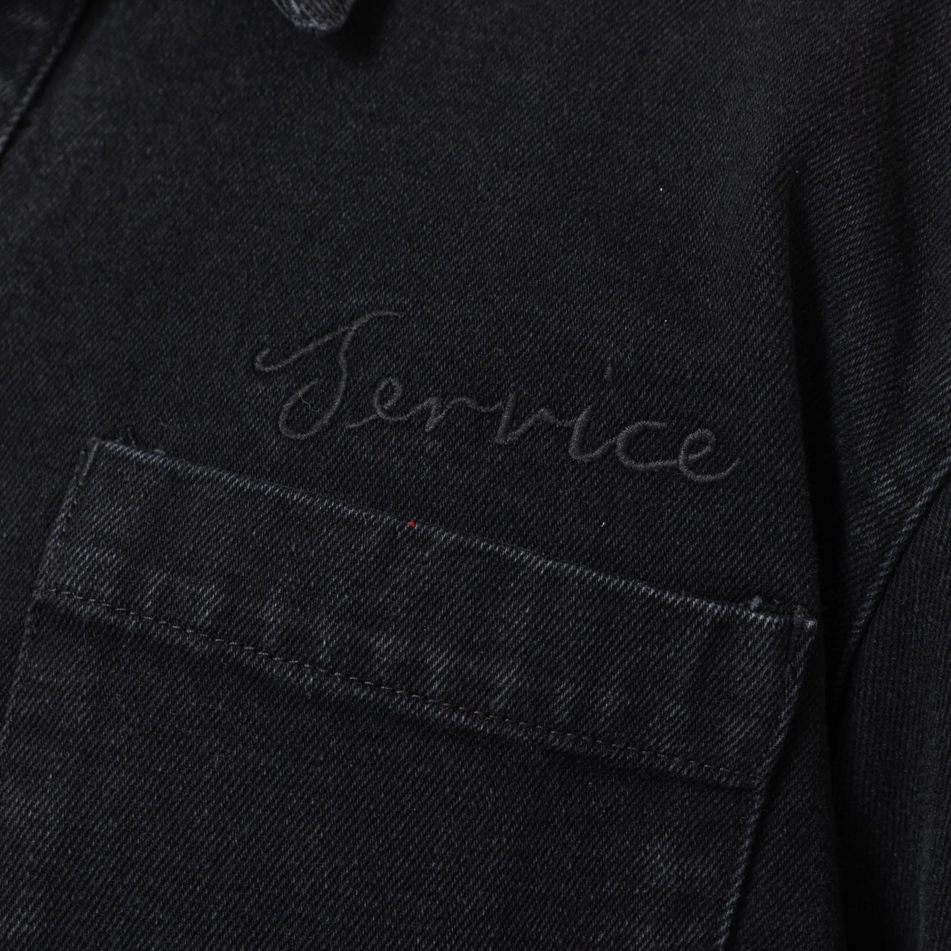 A pullover shirt from Service Works, constructed from GOTS-certified, 12oz cotton denim and is cut in a regular fit for everyday comfort.