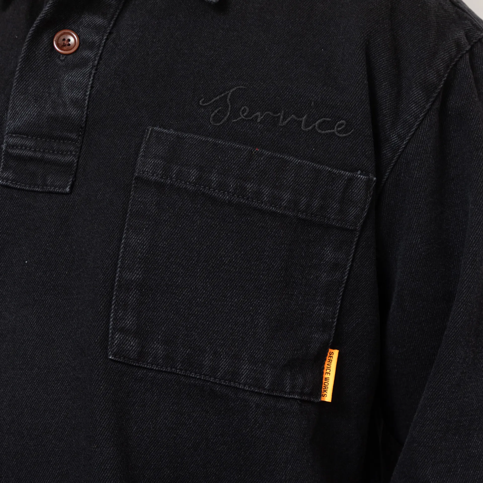 A pullover shirt from Service Works, constructed from GOTS-certified, 12oz cotton denim and is cut in a regular fit for everyday comfort. It features a three-button placket, leading up to a classic collar, with a straight hem, single chest pocket and a tonal embroidered logo. Finished with a simple flag label at the pocket seam.