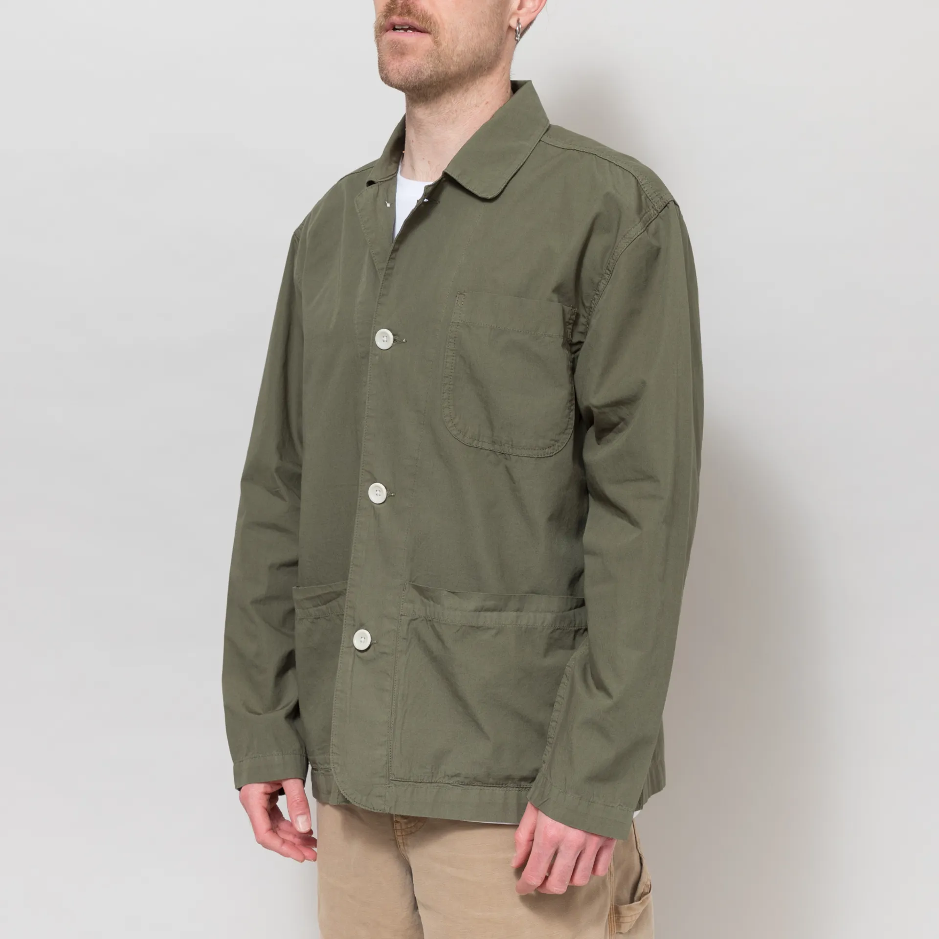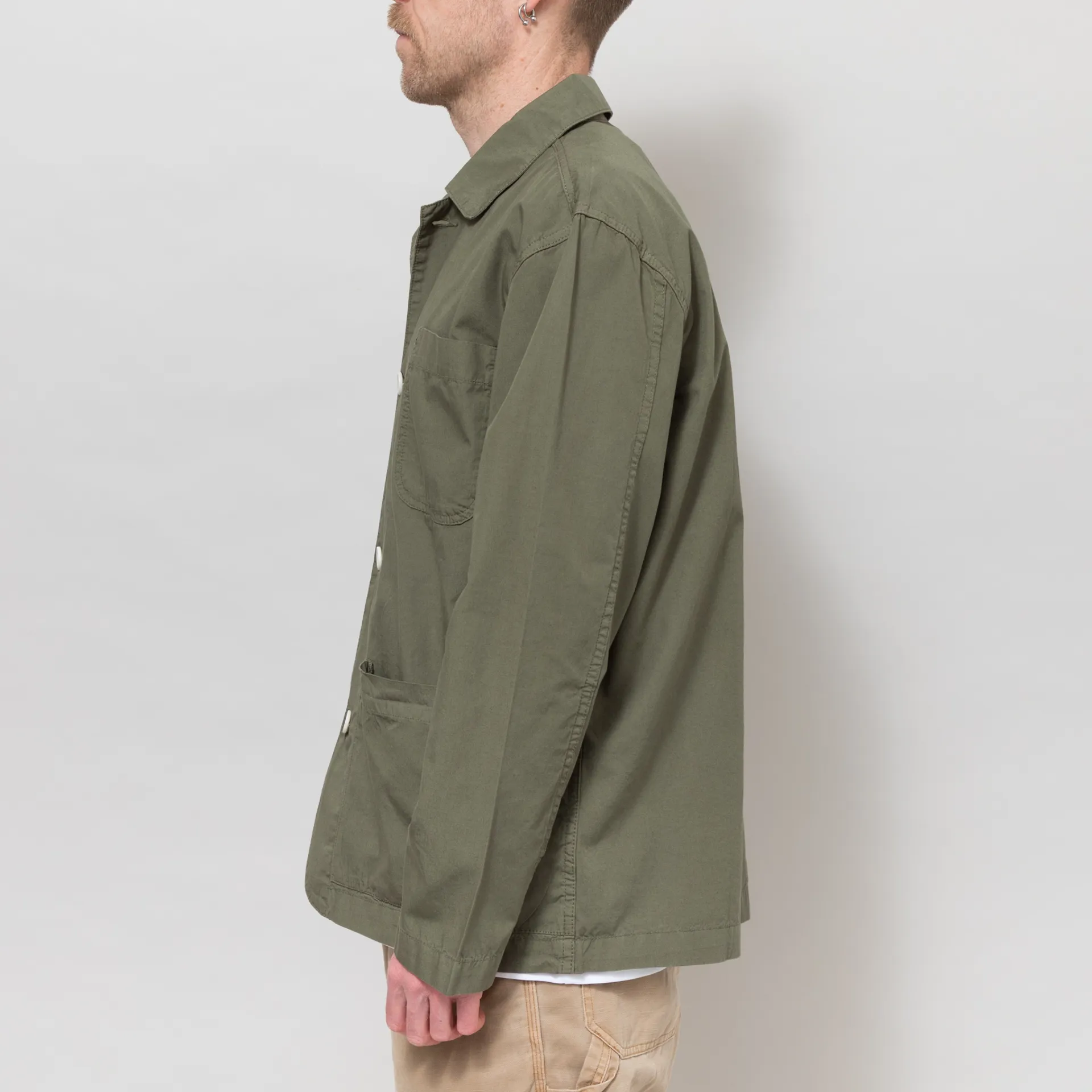 A lightweight overshirt from Service Works, cut in a regular fit for everyday wear and constructed from 195GSM GOTS-certified organic cotton twill, garment-dyed for a unique colour.