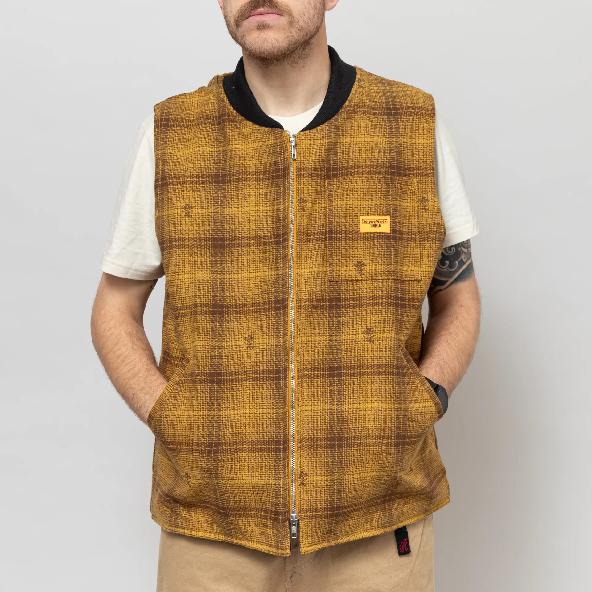 Service Works Thistle Plaid Padded Work Vest Ochre
