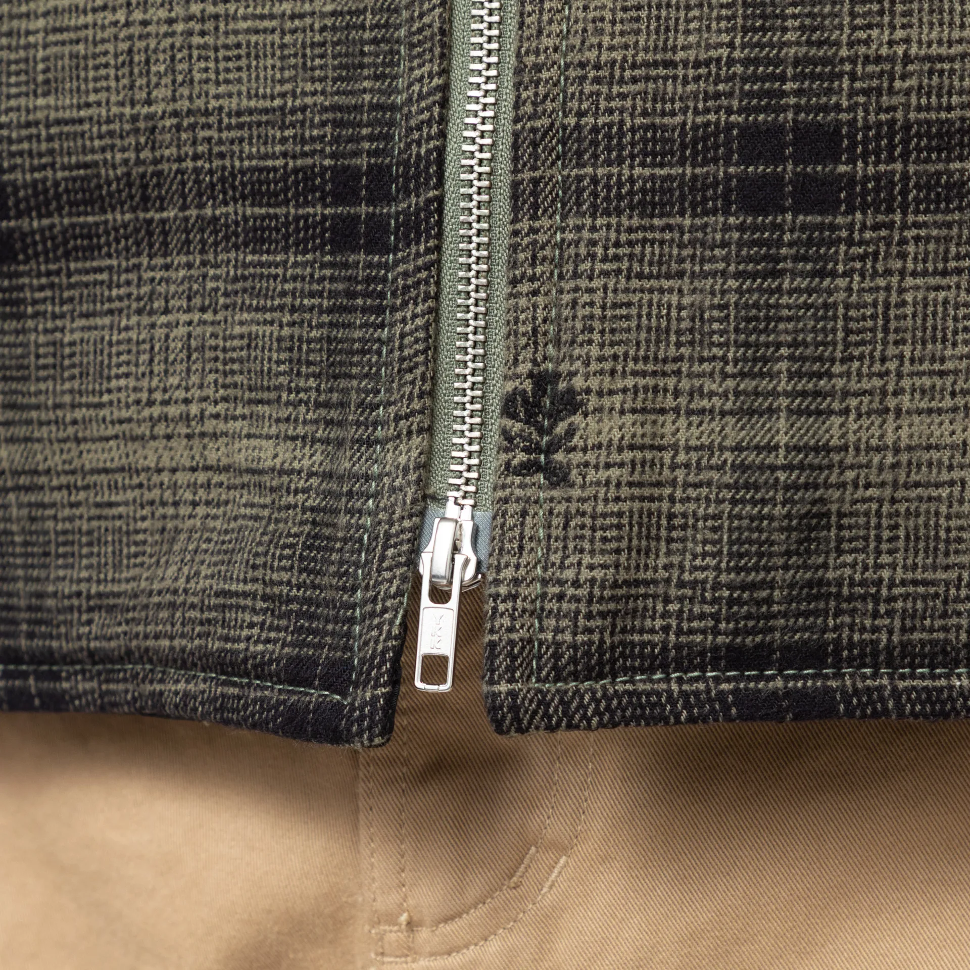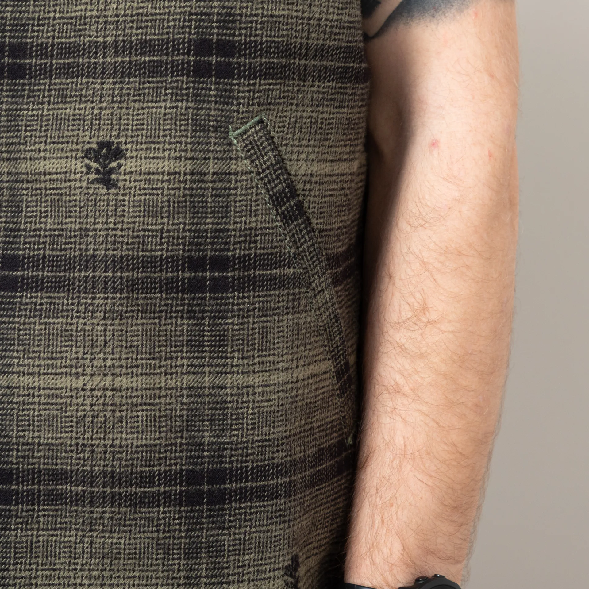 A padded work vest from Service Works, constructed from GOTS-certified organic cotton flannel with an all-over yarn-dyed plaid design and a warm quilted lining. It features a two-way zip through front, leading up to a classic ribbed collar, with a straight hem at the front and a drop tail hem at the back. Finished off with two hand pockets, and a single patch pocket at the chest with the signature Service Works patch.