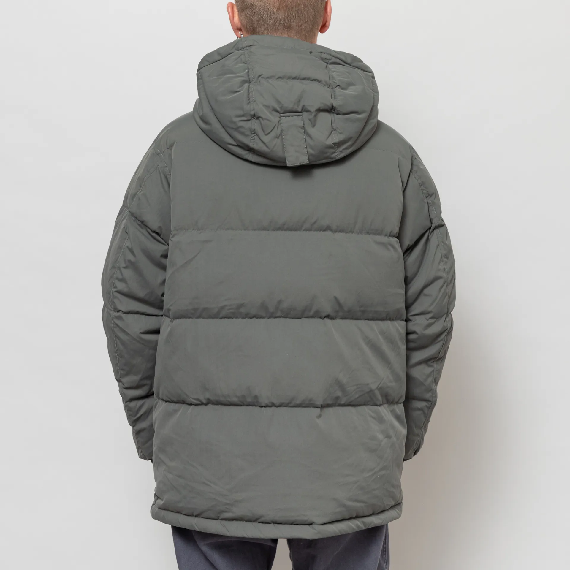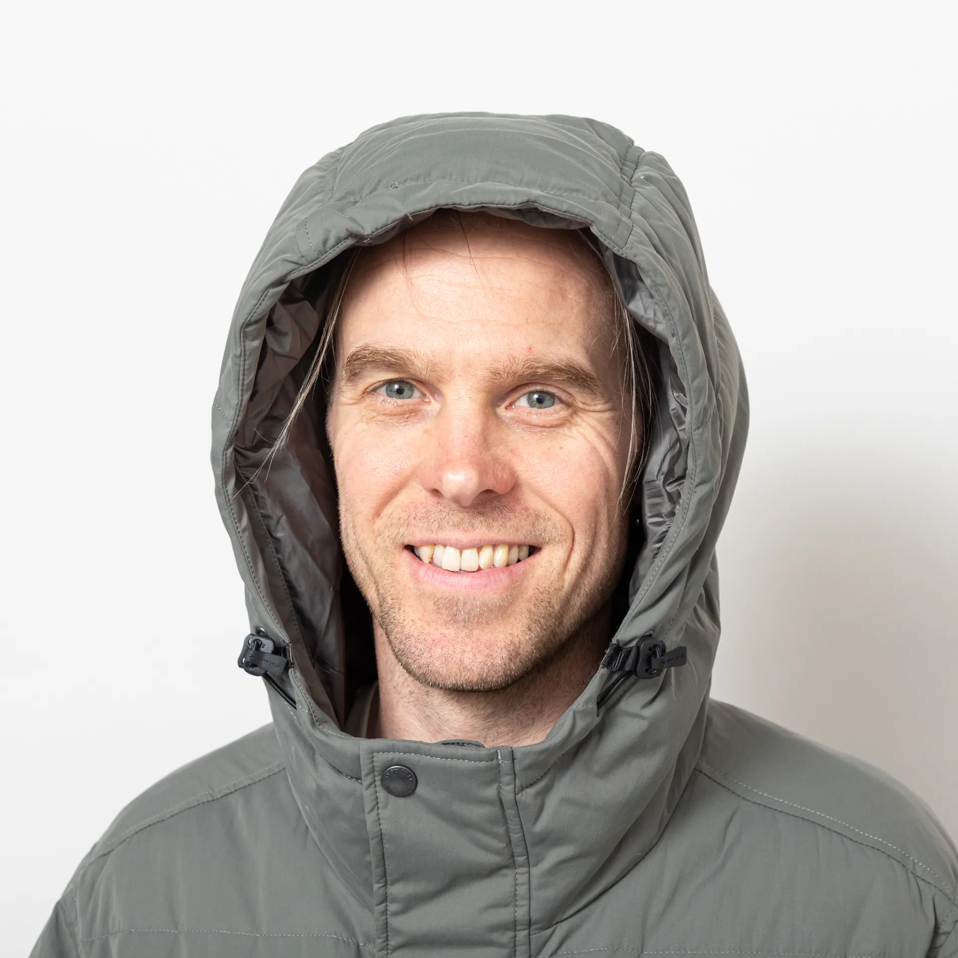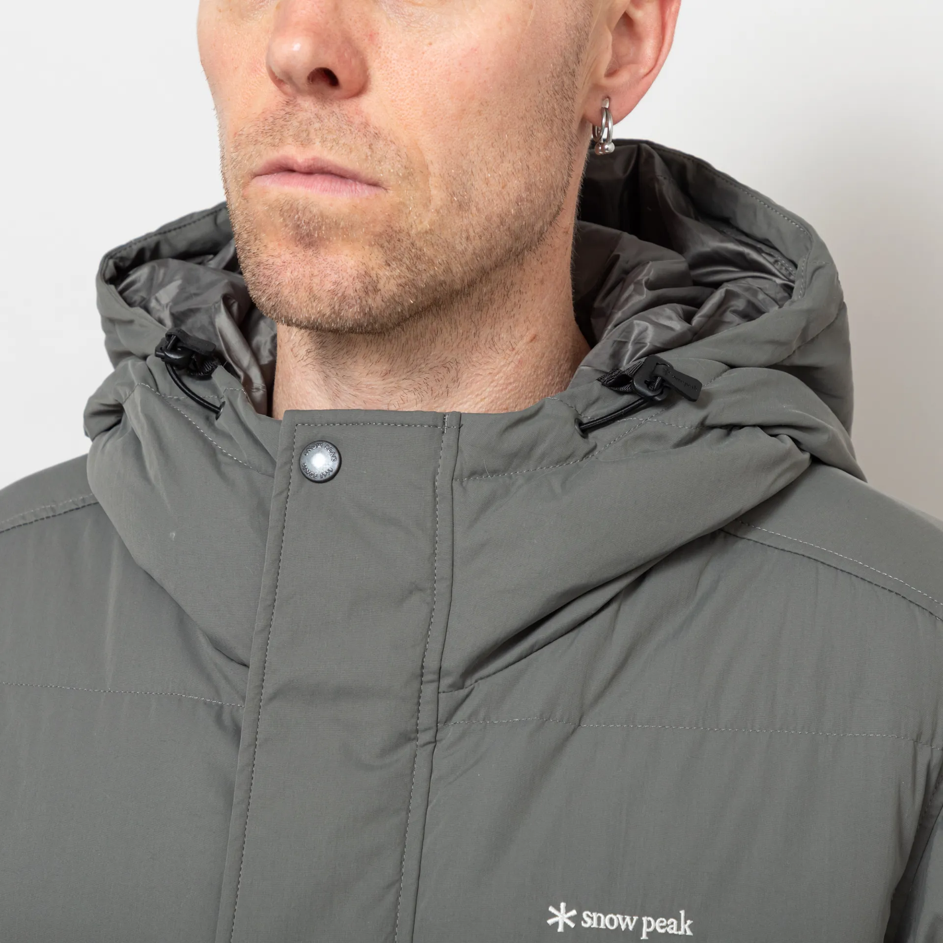 A down jacket from Snow Peak, cut in a regular fit for everyday comfort and constructed from durable nylon with a water-resistant finish for protection against light rain fall. It's filled with 700 fill power down (80% down, 20% feathers) to keep you warm. Featuring a zip-through front, protected by the snap-button placket and leading up to a large adjustable hood. With elasticated cuffs to keep the draught out and two large patch pockets, both with two-way entry. The design is complete with the classic Snow Peak logo at the chest.