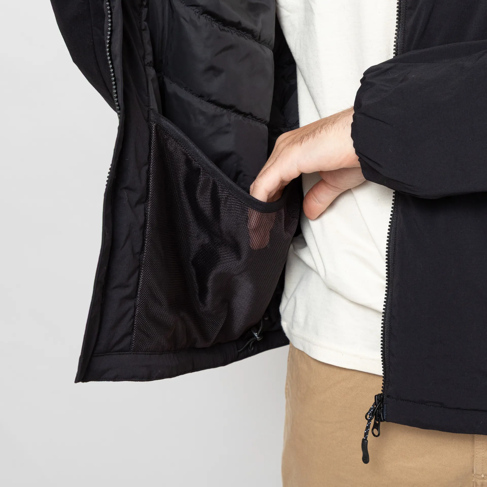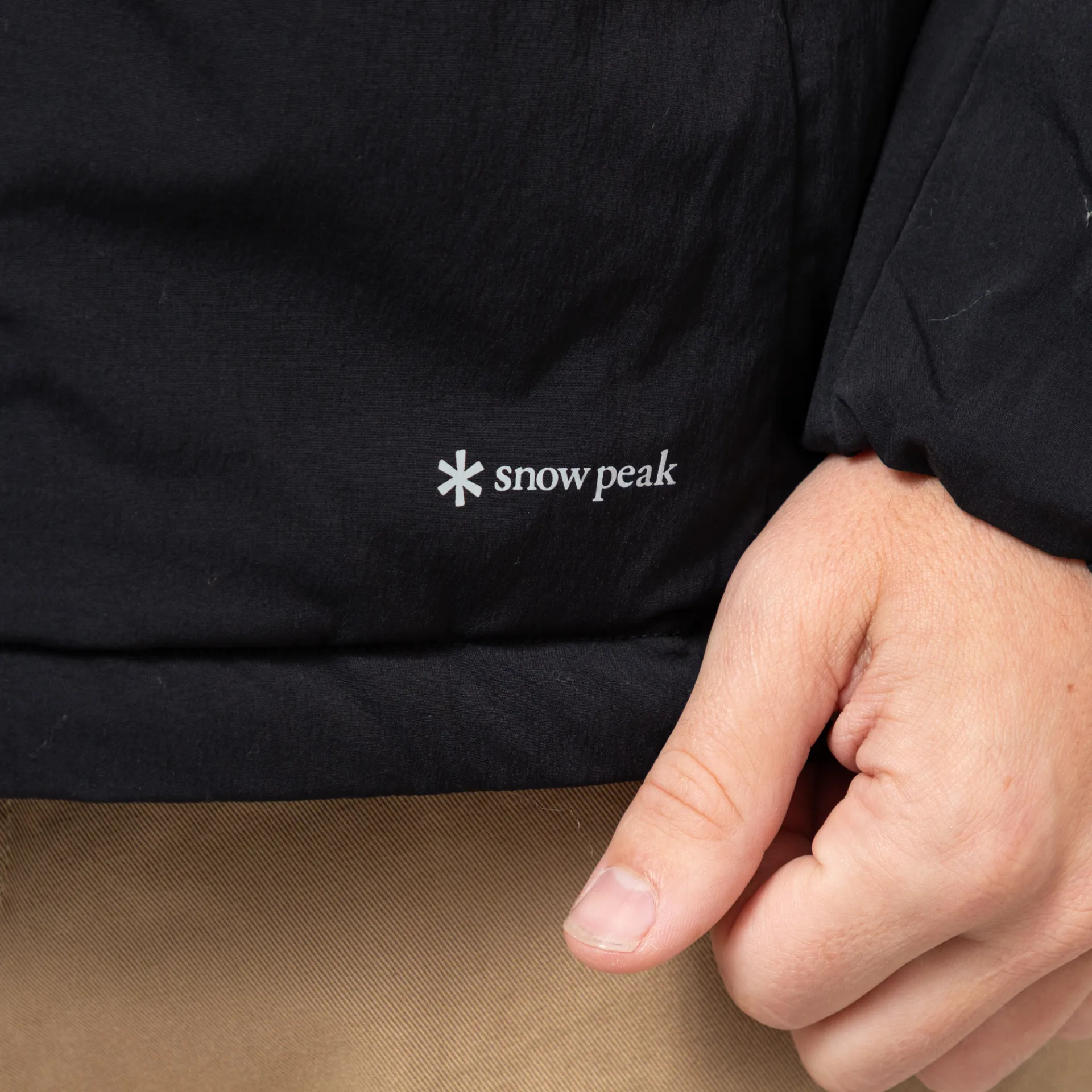 It's got two zip closure hand pockets, elasticated cuffs and hem, a reflective Snow Peak logo and an internal mesh pocket.