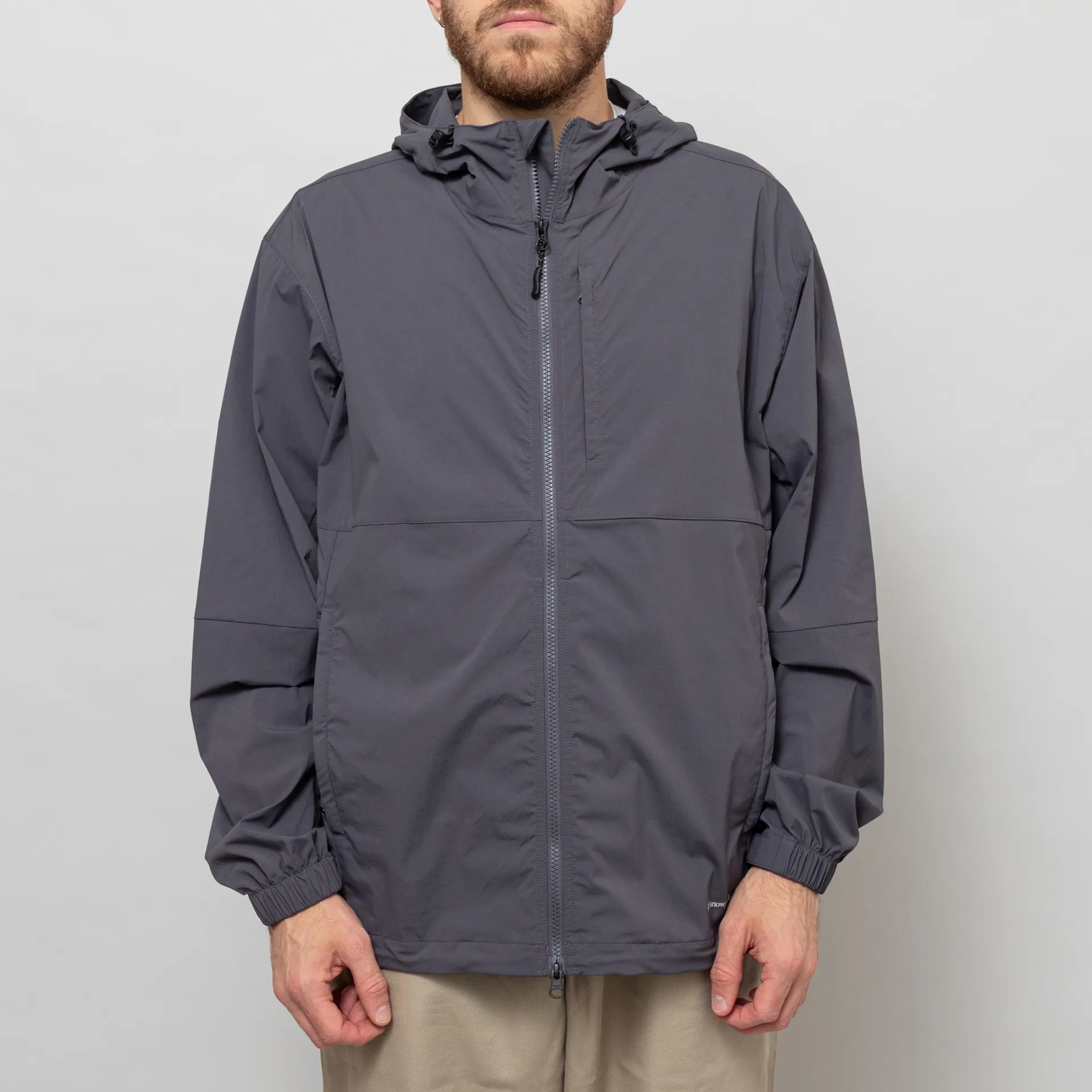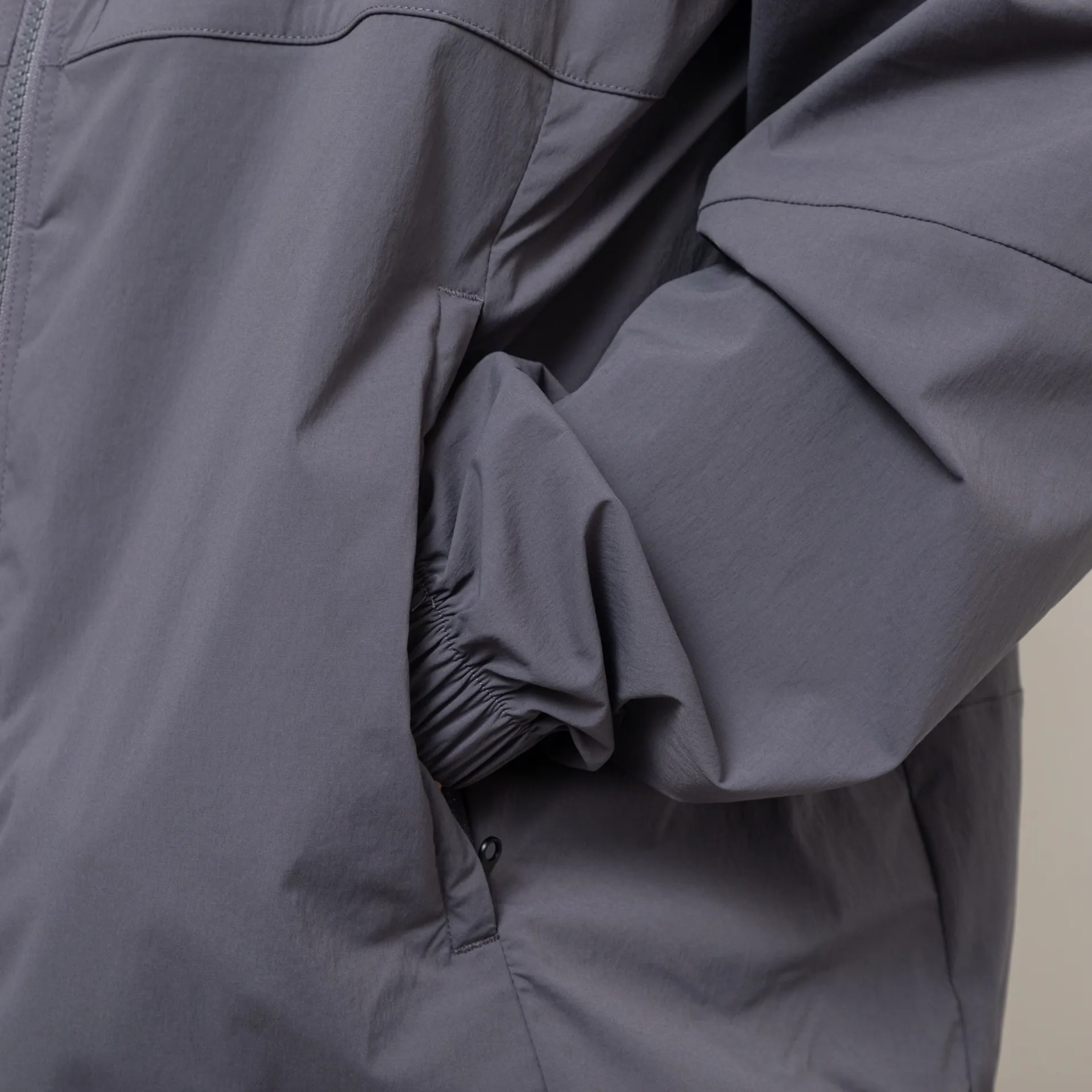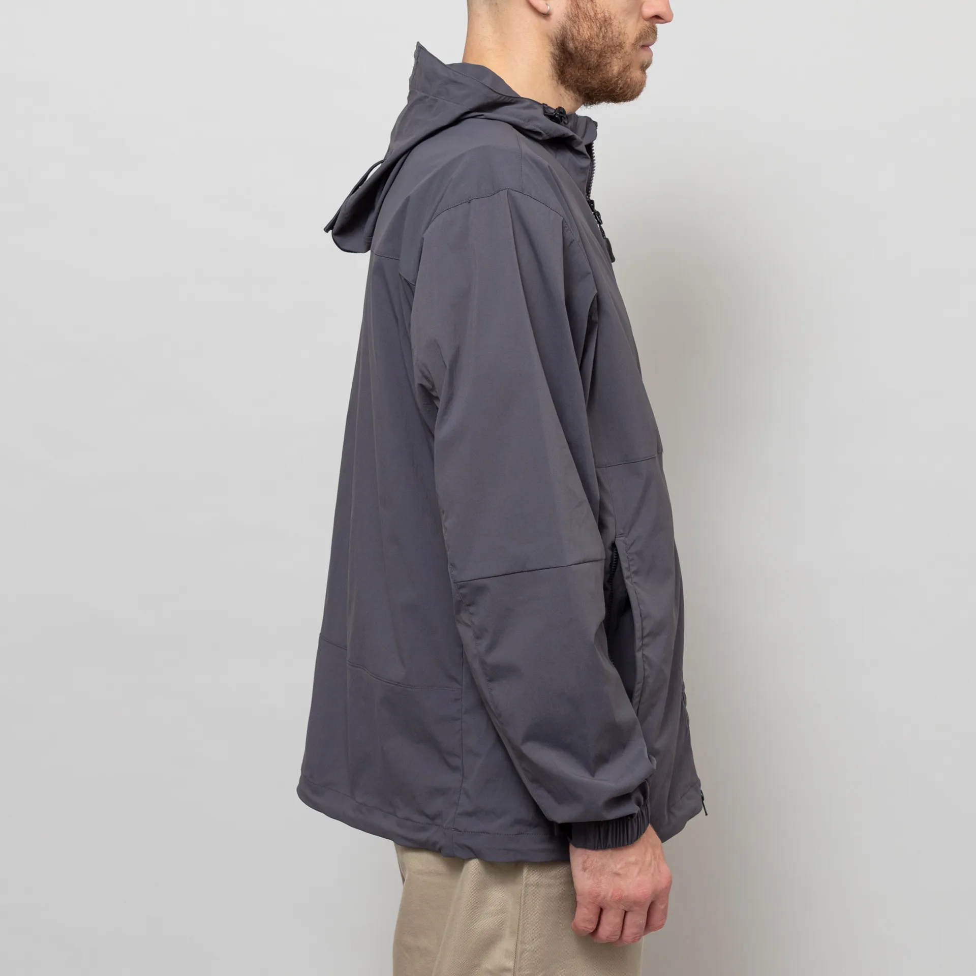 A zip-up utility parka from Snow Peak, which is made from 95% nylon and 5% spandex and features a water-repellent finish, a two-way zip and reflective branding.