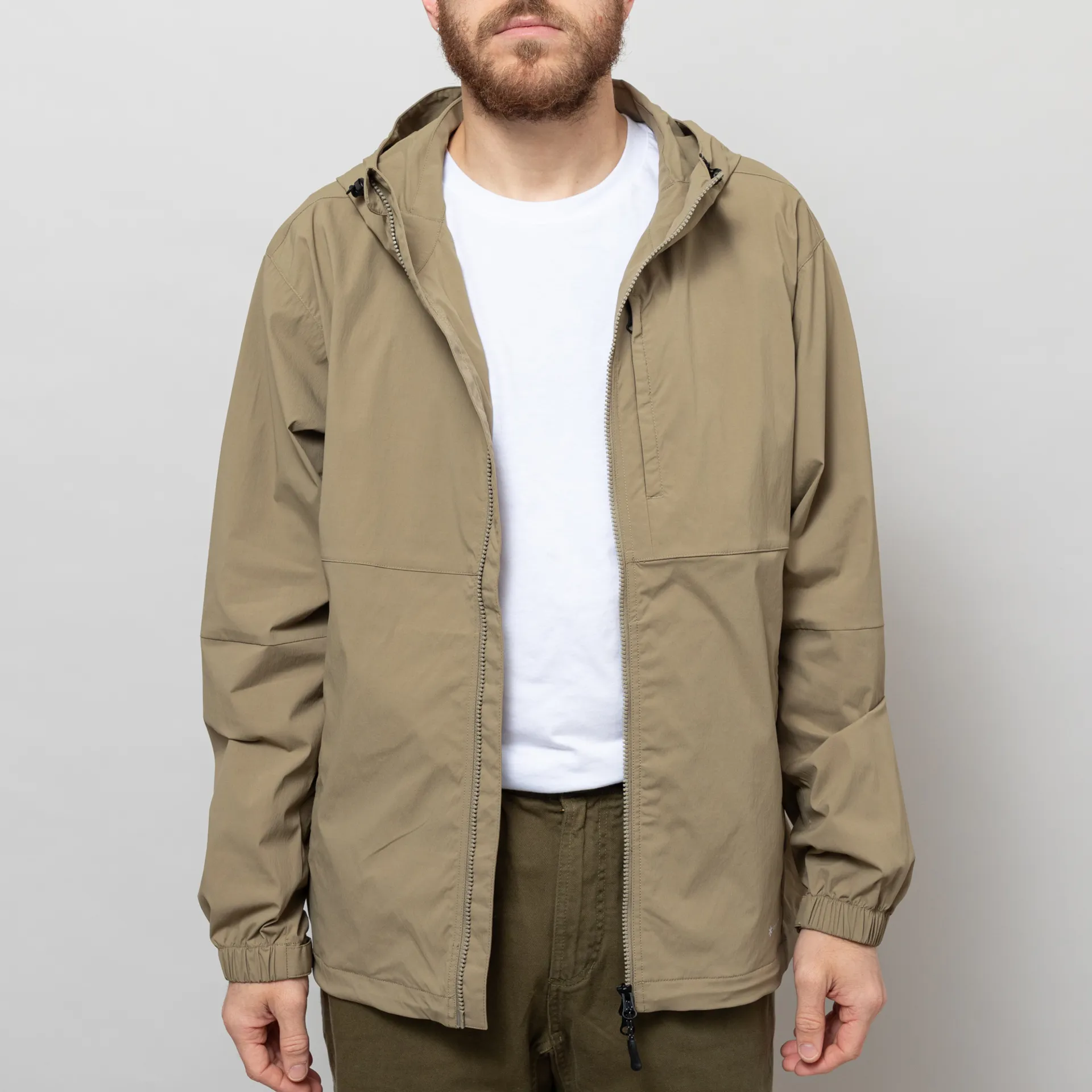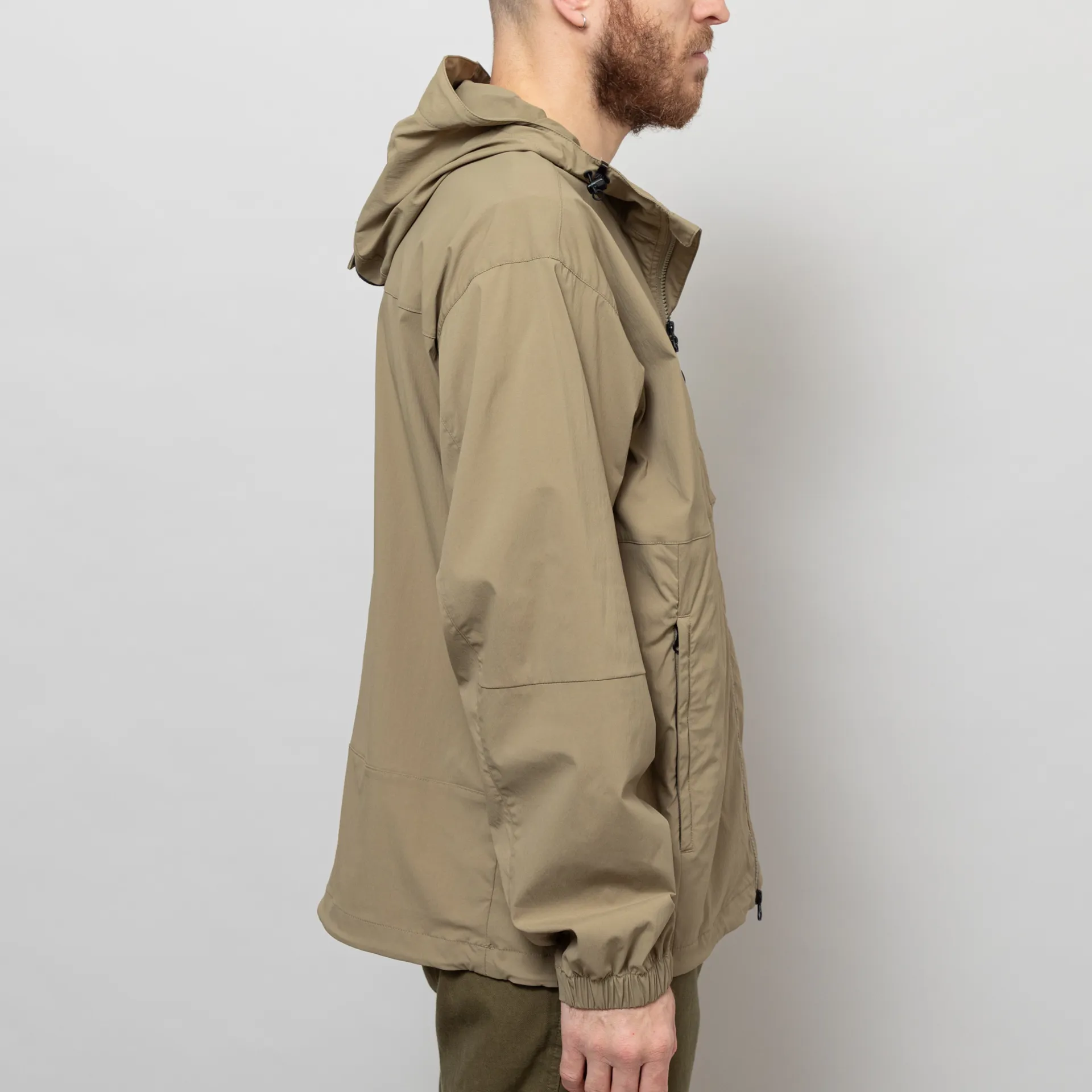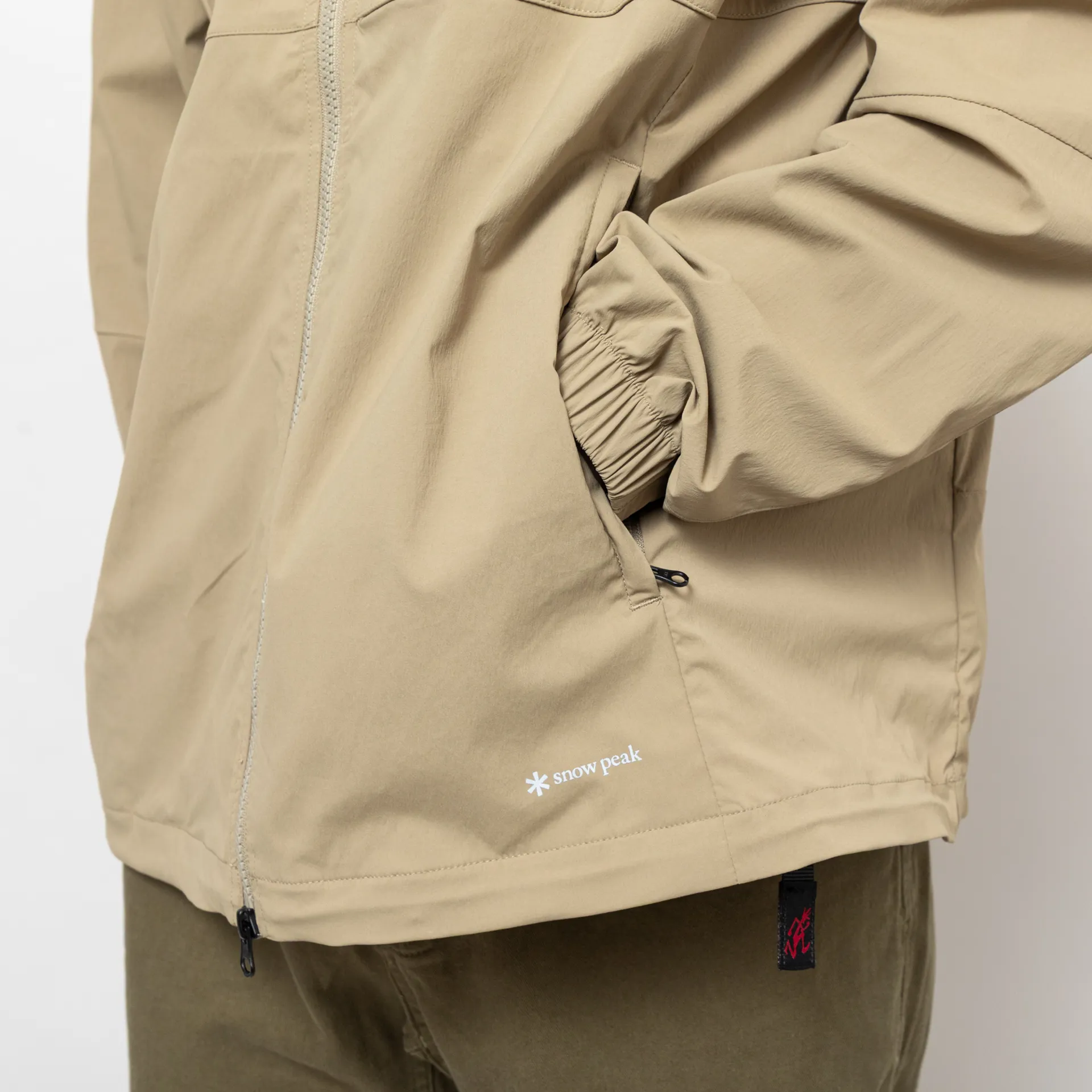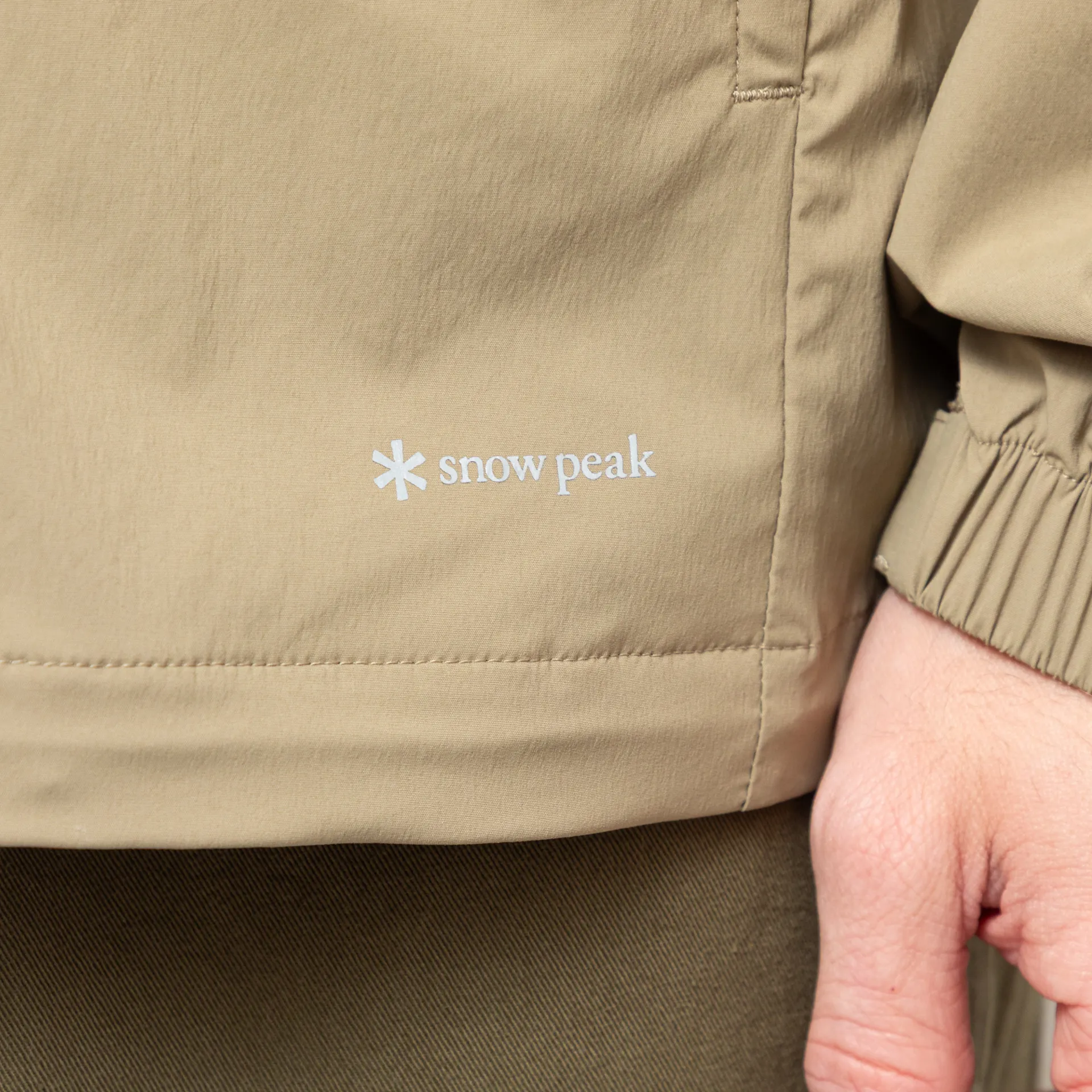 A zip-up utility parka from Snow Peak, which is made from 95% nylon and 5% spandex and features a water-repellent finish, a two-way zip and reflective branding.