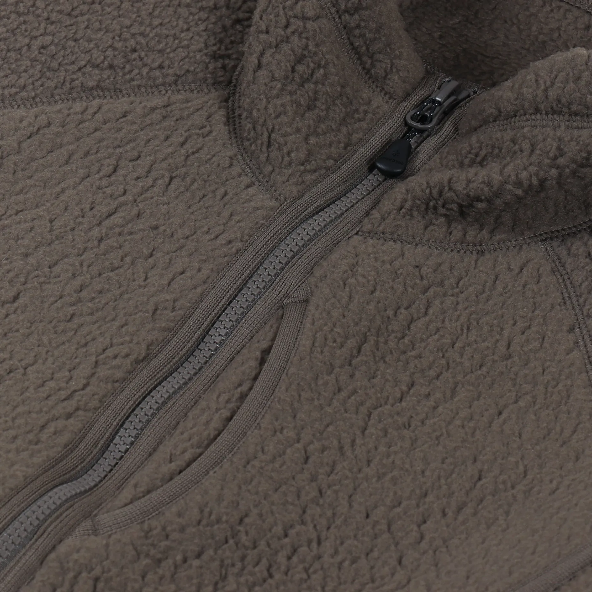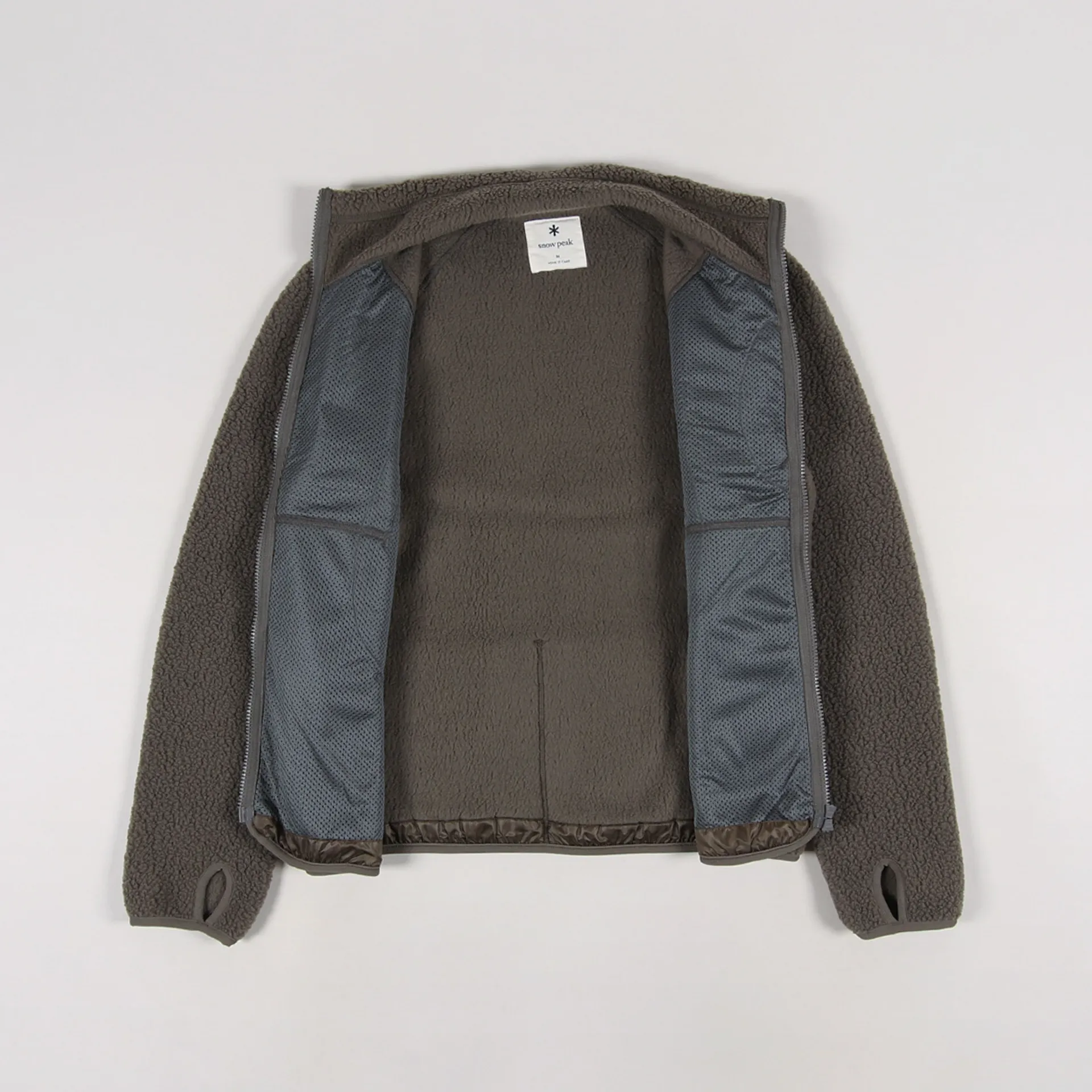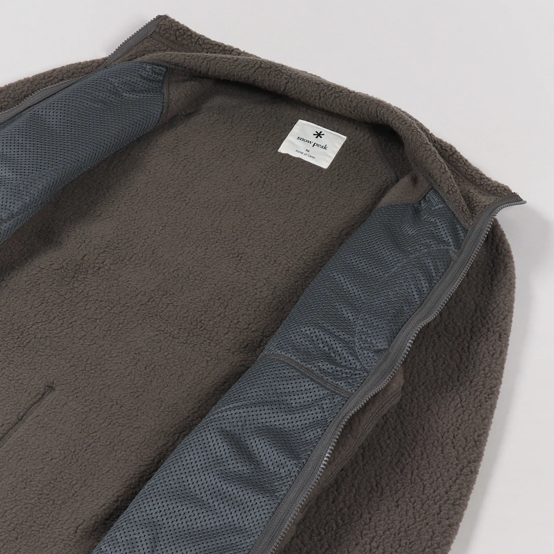 A technical fleece from Snow Peak, made from a warm, lightweight and soft Polartec fabric with a boa sherpa shell and a brushed fleece lining. It has an elasticated trim, full-zip front and a five pocket design.
