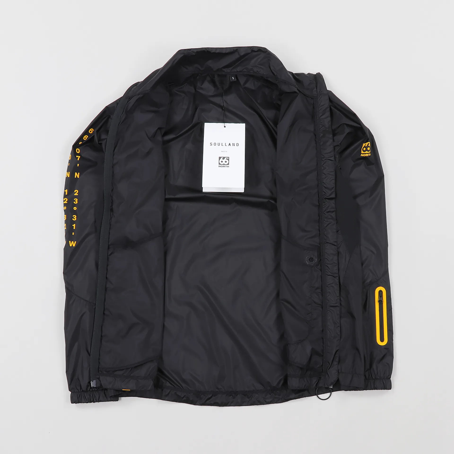 A lightweight jacket from Soulland and 66°North which features printed collaborative branding. Made from 100% nylon with breathable mesh gussets and elasticated cuffs.