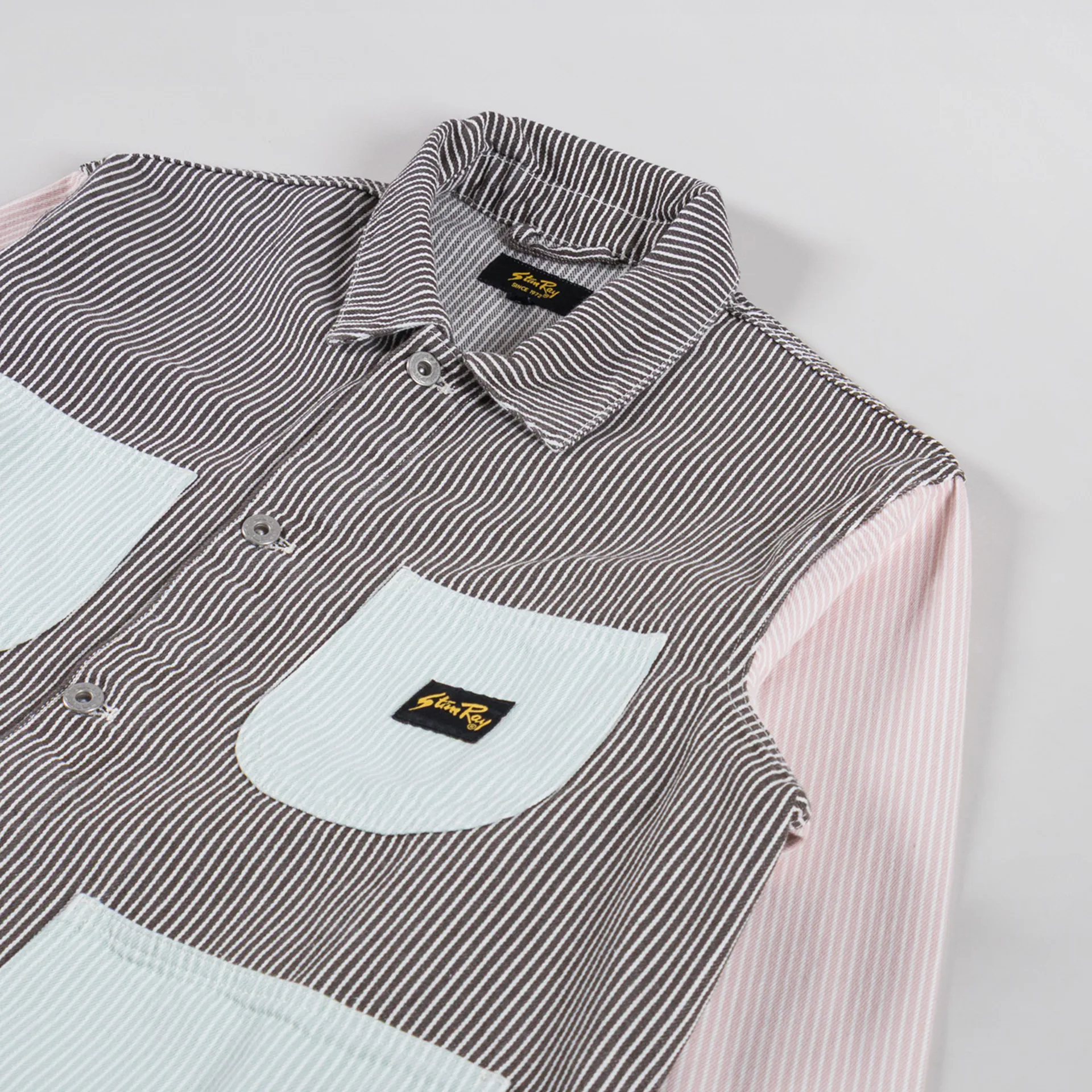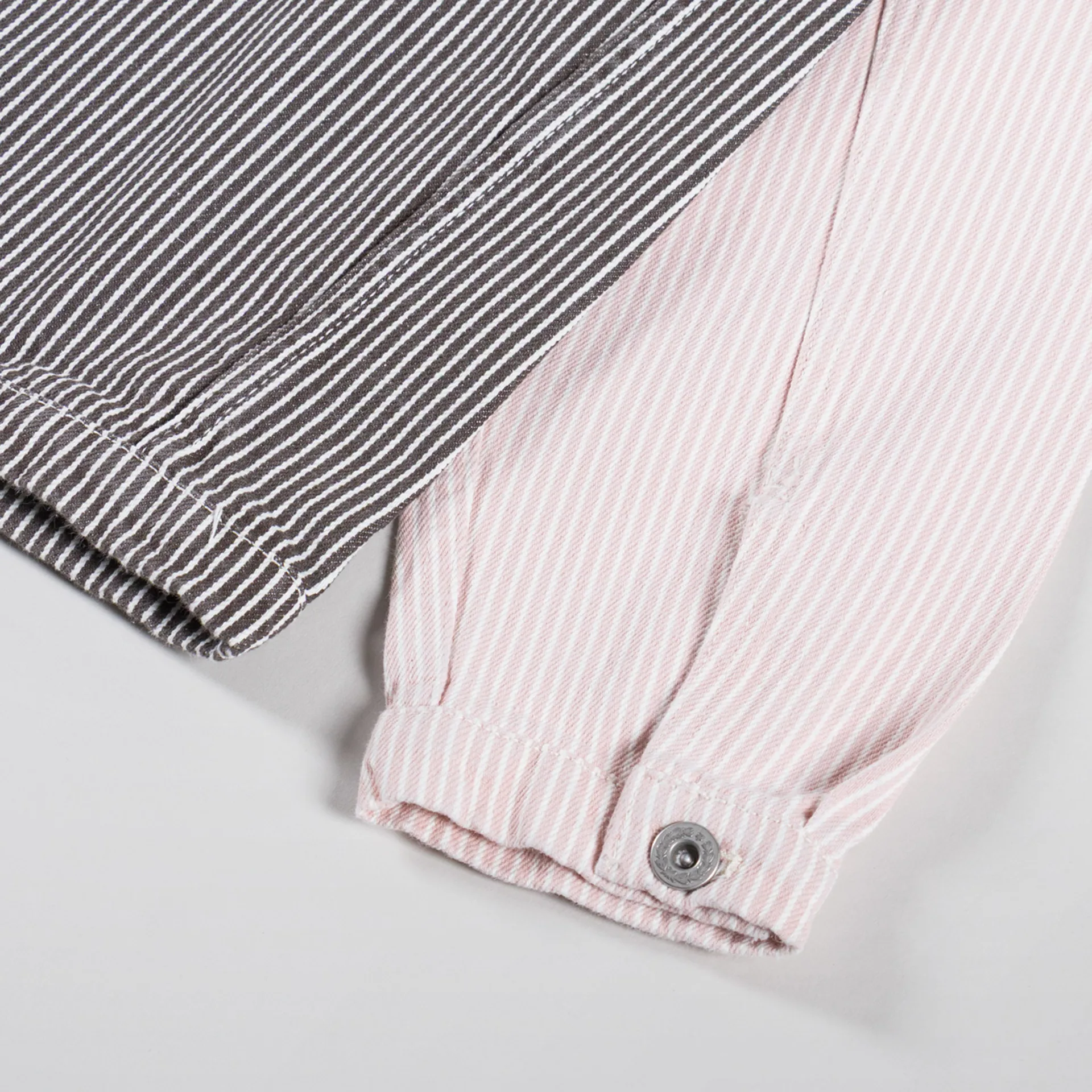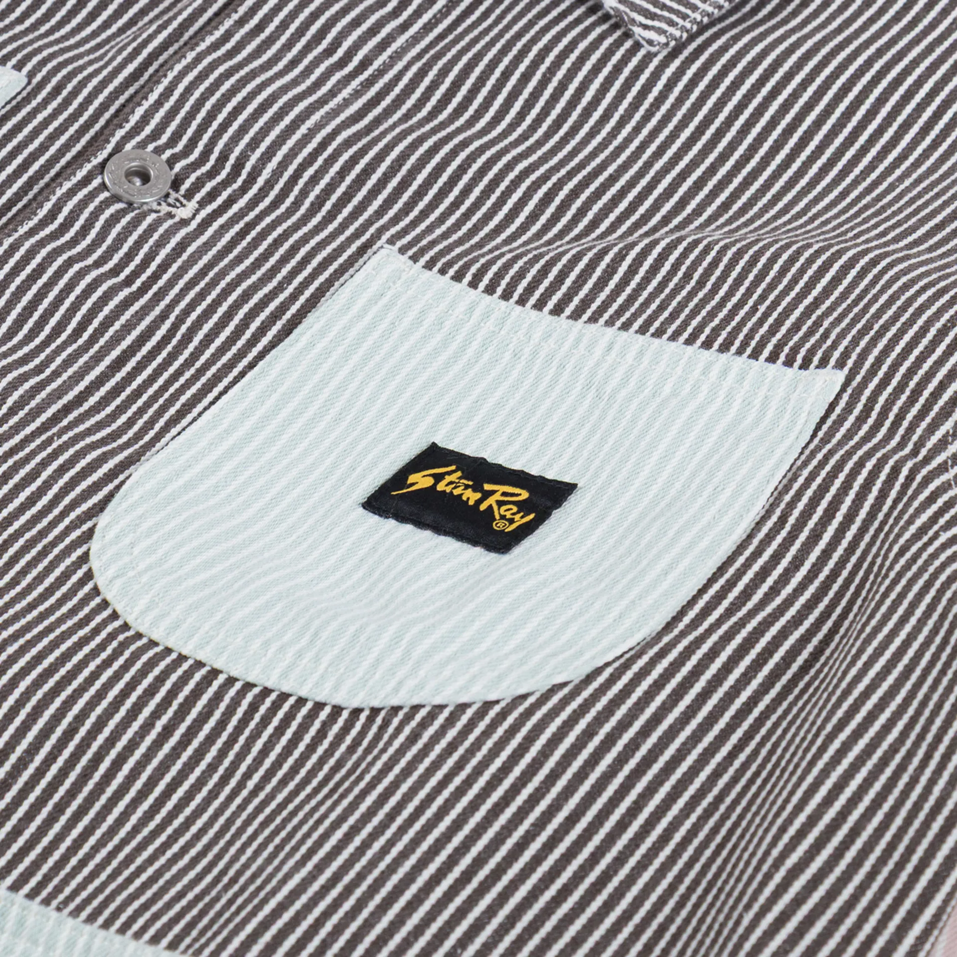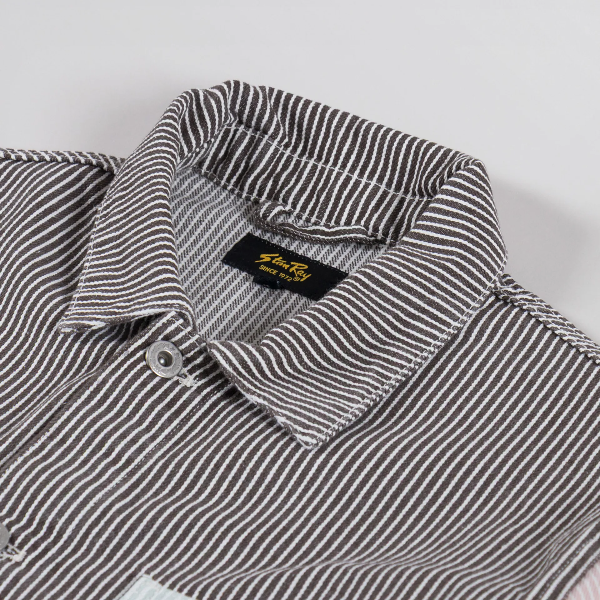 The Coverall Jacket from Stan Ray is cut in a relaxed fit for a casual silhouette, constructed from 100% cotton hickory, an unlined fabric known for it's durability and striped appearance. It features a full button-through front, leading up to a classic collar, with a straight hem, buttoned cuffs and finished with four chore jacket-style pockets to the front and the signature Stan Ray woven logo patch.