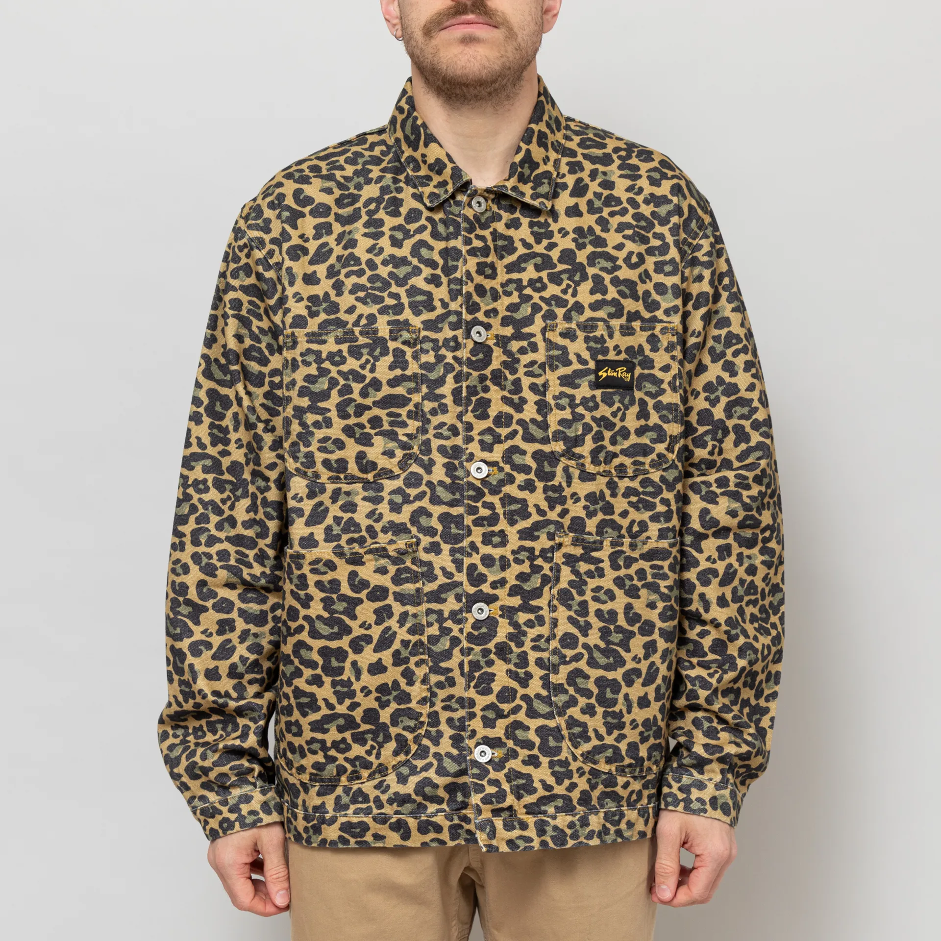 A coverall jacket from Stan Ray, cut in a loose fit for easy layering and constructed from heavyweight cotton with an all-over leopard camo print.
