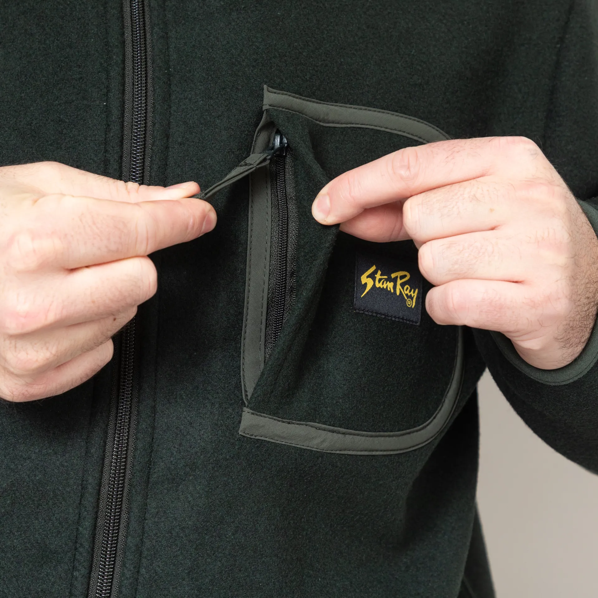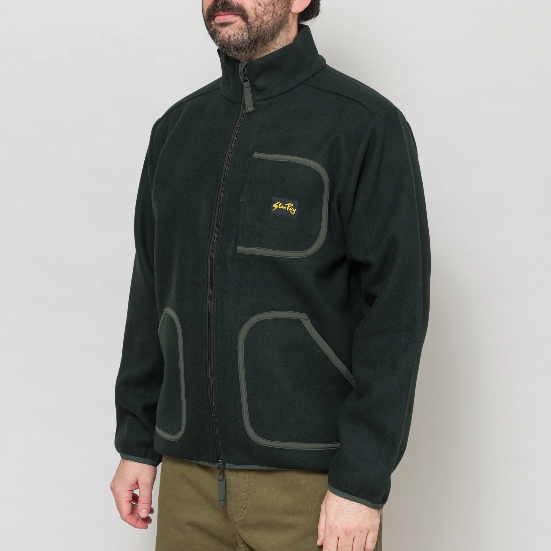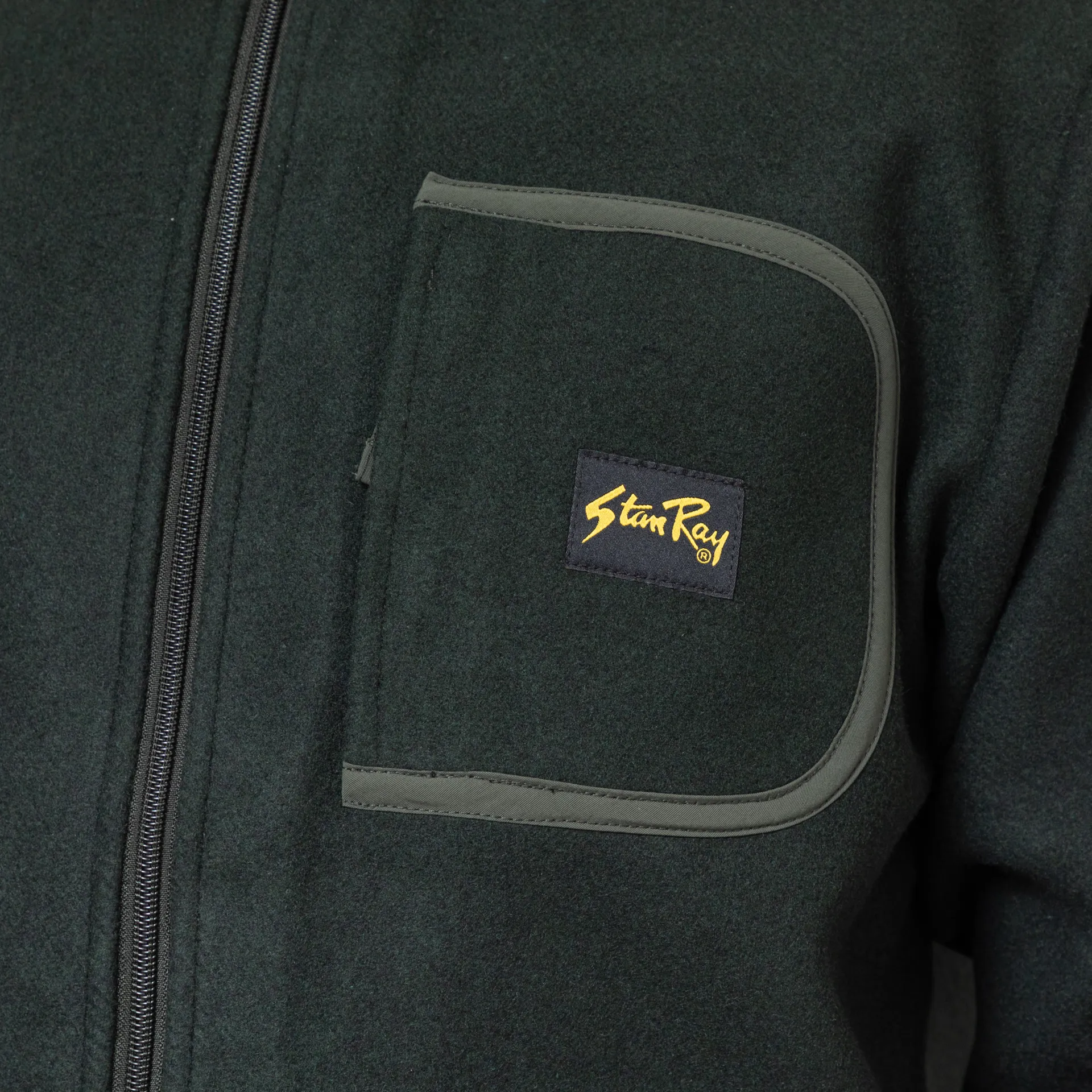 A fleece jacket from Stan Ray, constructed from a soft blend of wool and polyester, cut in a regular fit for everyday comfort. It features a full zip-through front, leading to a classic stand collar with tonal binding throughout, two hand pockets and a single zip pocket to the chest. Finished off with the signature Stan Ray patch.