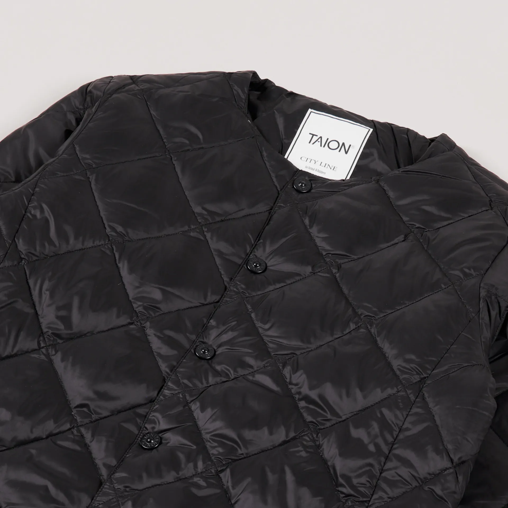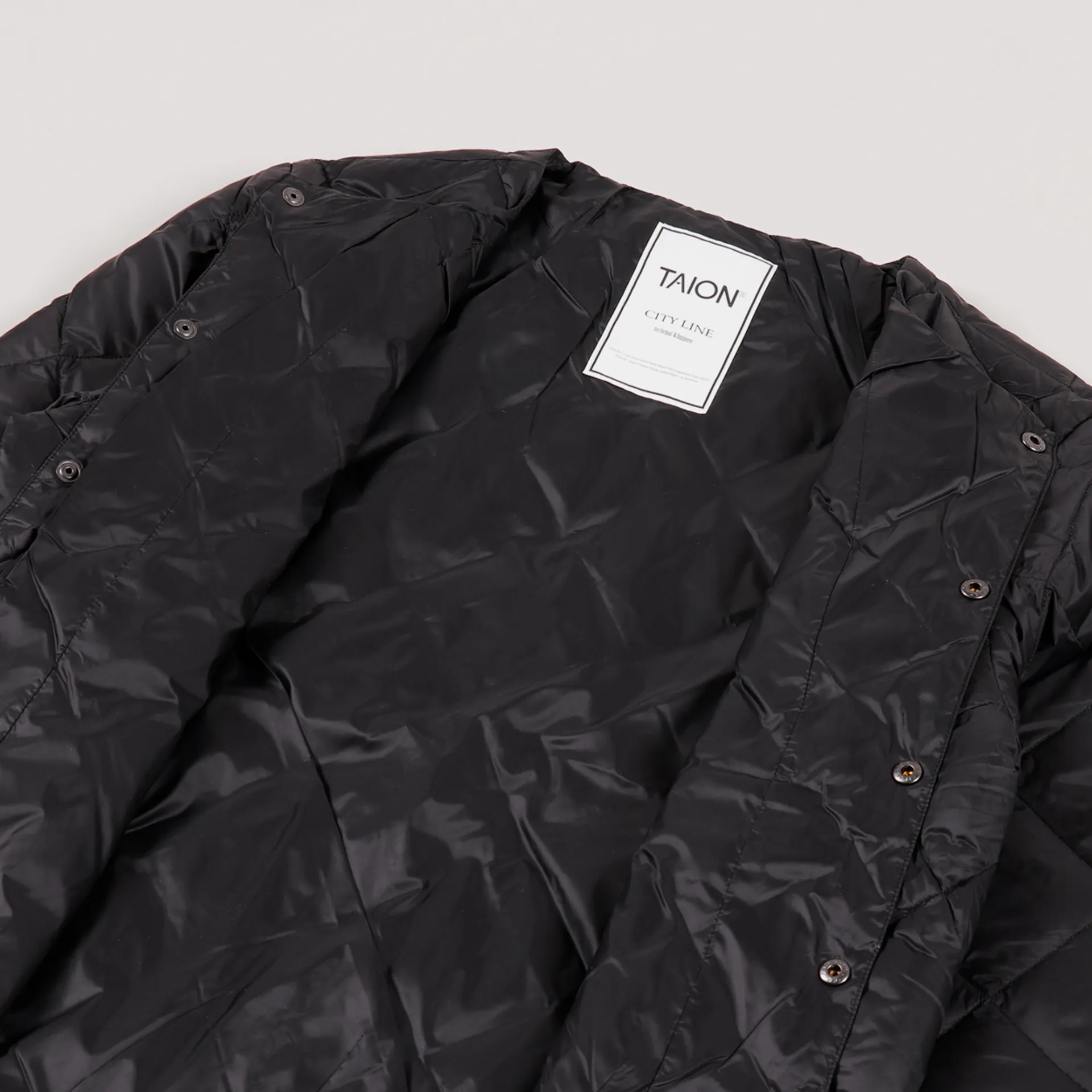 An insulated jacket from Japanese outerwear company Taion's City collection, made from a high-density nylon shell which is water-repellent, and lined with a smooth and comfortable polyester taffeta.